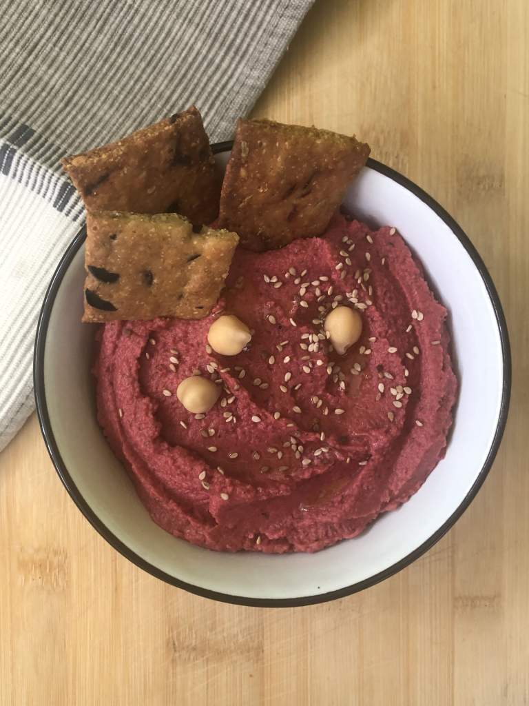 Hoy te traigo otra versión, utilizando otro ingrediente de temporada: la remolacha. Y créeme, es ideal. Un hummus con un color rosado que no va a dejar indiferente a nadie y ese sabor dulzón que contrasta tan bien con el toque de ajo y zumo de limón.
