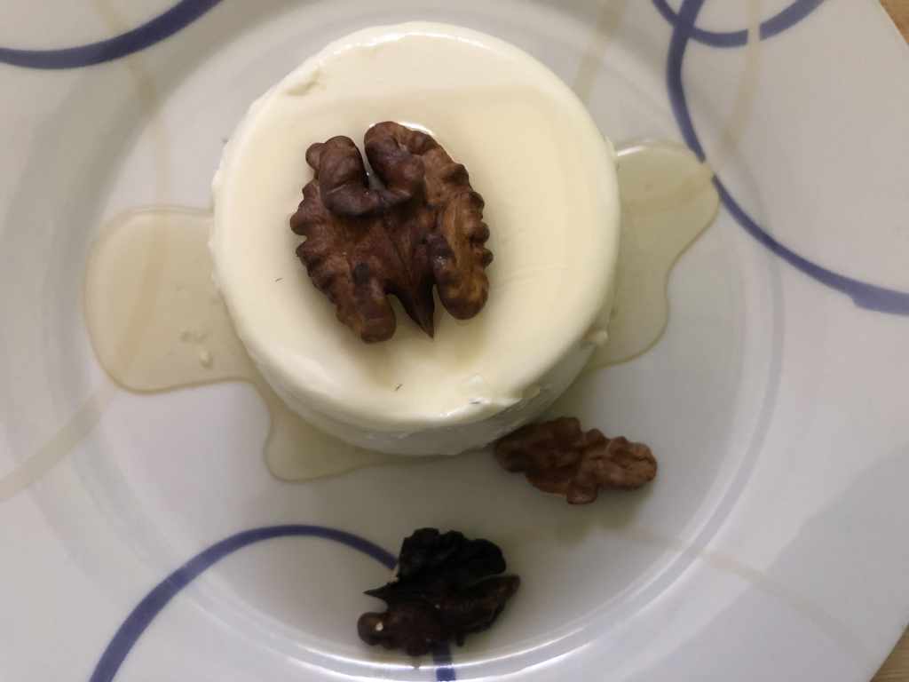 PANNA COTTA DE YOGUR CON MIEL Y NUECES