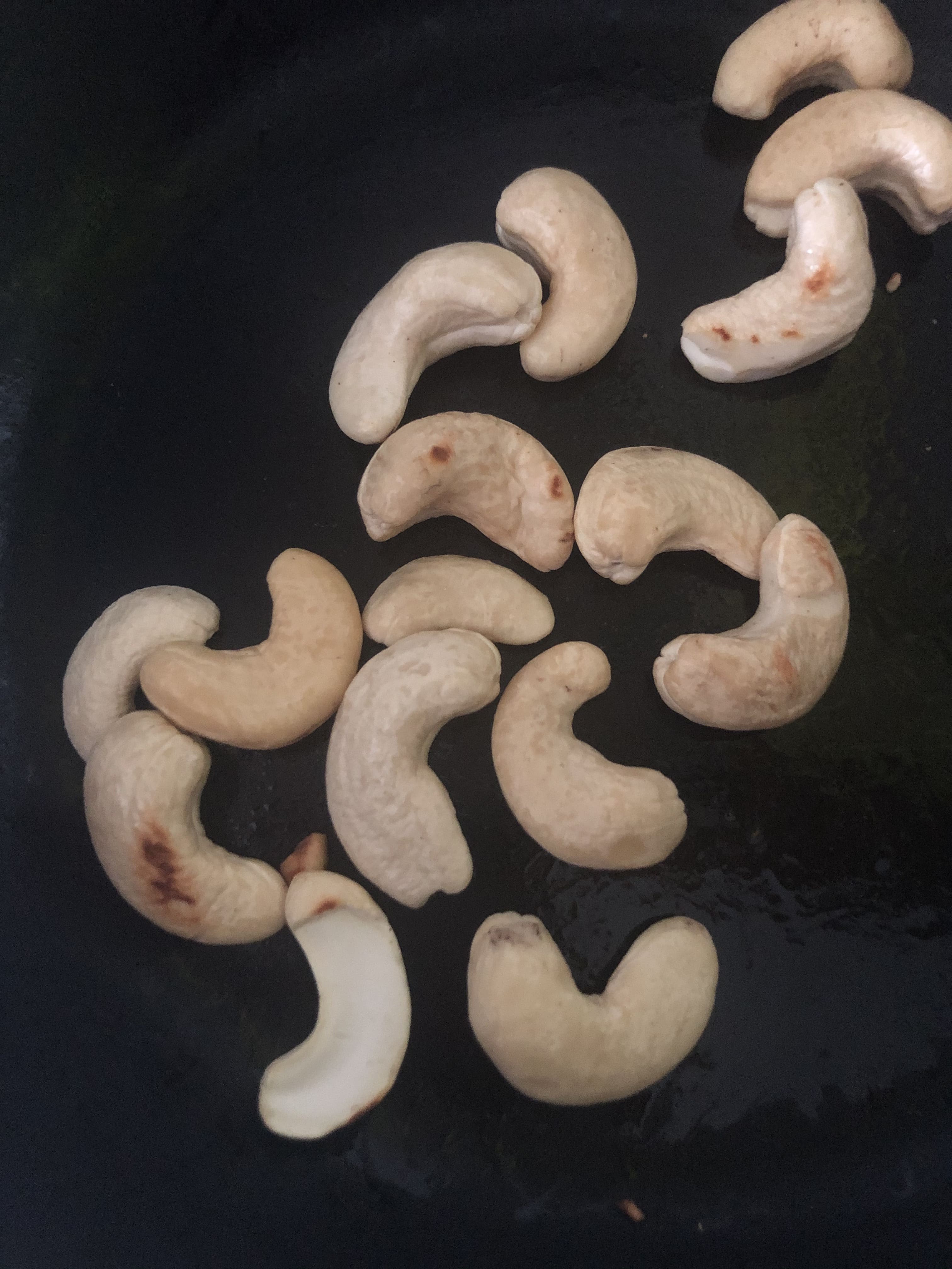 Tuesta los anacardos en una sartén a fuego mínimo. Agrega al resto de ingredientes y tritura de nuevo hasta conseguir la textura que desees. Reserva.