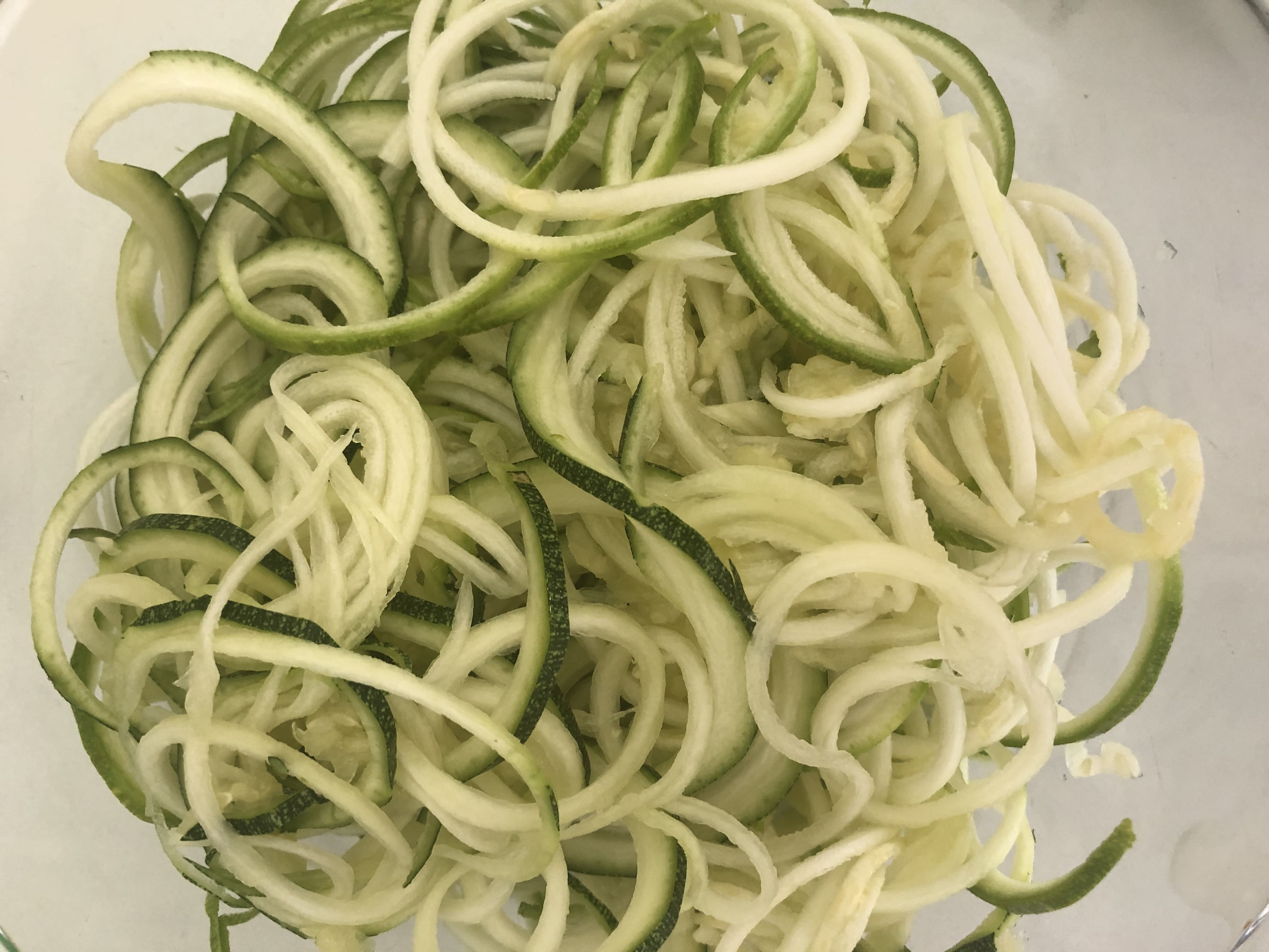 Por cierto, podéis hacer los espaguetis a mano, cortando el calabacín en láminas más o menos finas y después cortarlas en tiras. Pero, sinceramente, merece la pena comprar un espiralizador (aunque sea básico). Estoy segura de que vais a darle uso 😉