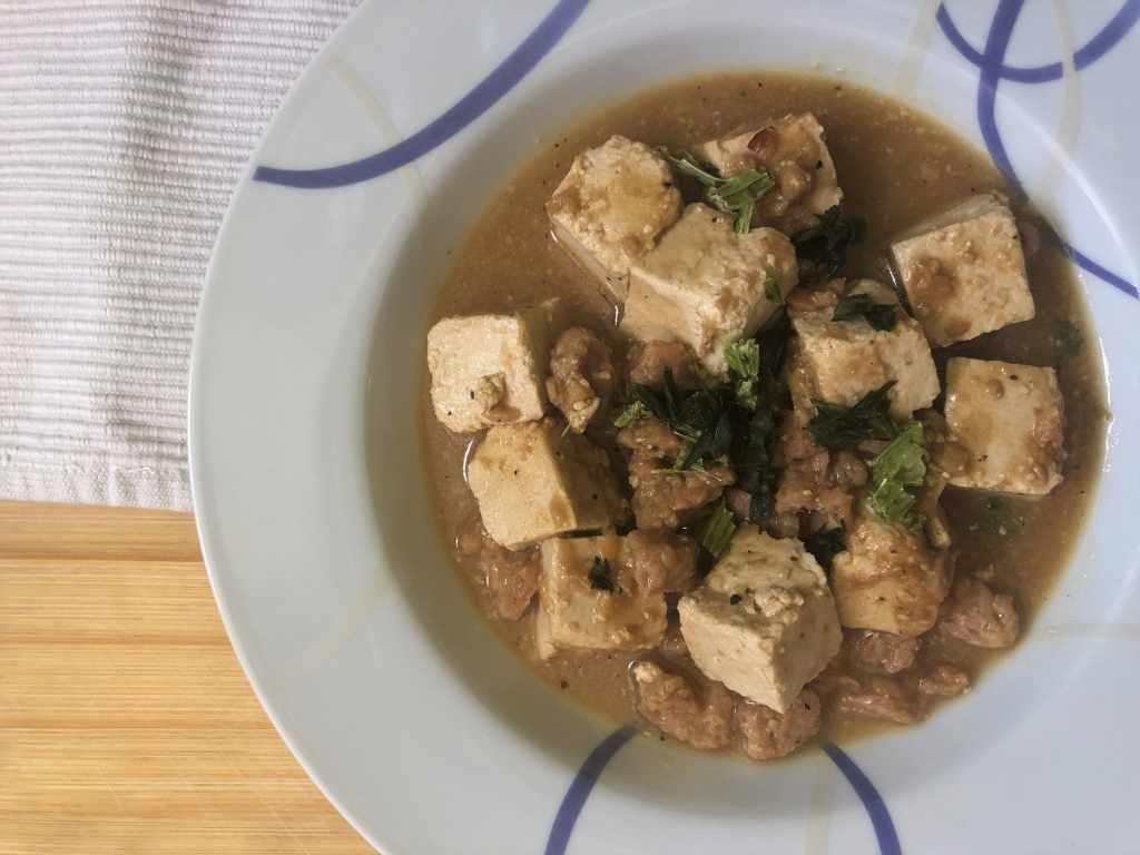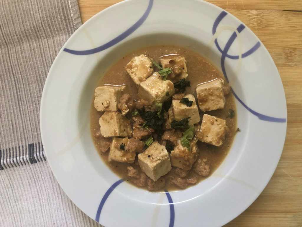 Pero no, decidí que iba a buscar algo diferente, algo que no hubiera probado antes y que además fuera una receta vegana. Entonces encontré el «Mapo tofu», un plato típico de la región de Sichuan que está elaborado con tofu, carne picada y un toque picante que me encanta. La receta original lleva pimienta de Sichuán, pero como aquí no dispongo de productos chinos, he adaptado la receta a lo que tengo por casa.