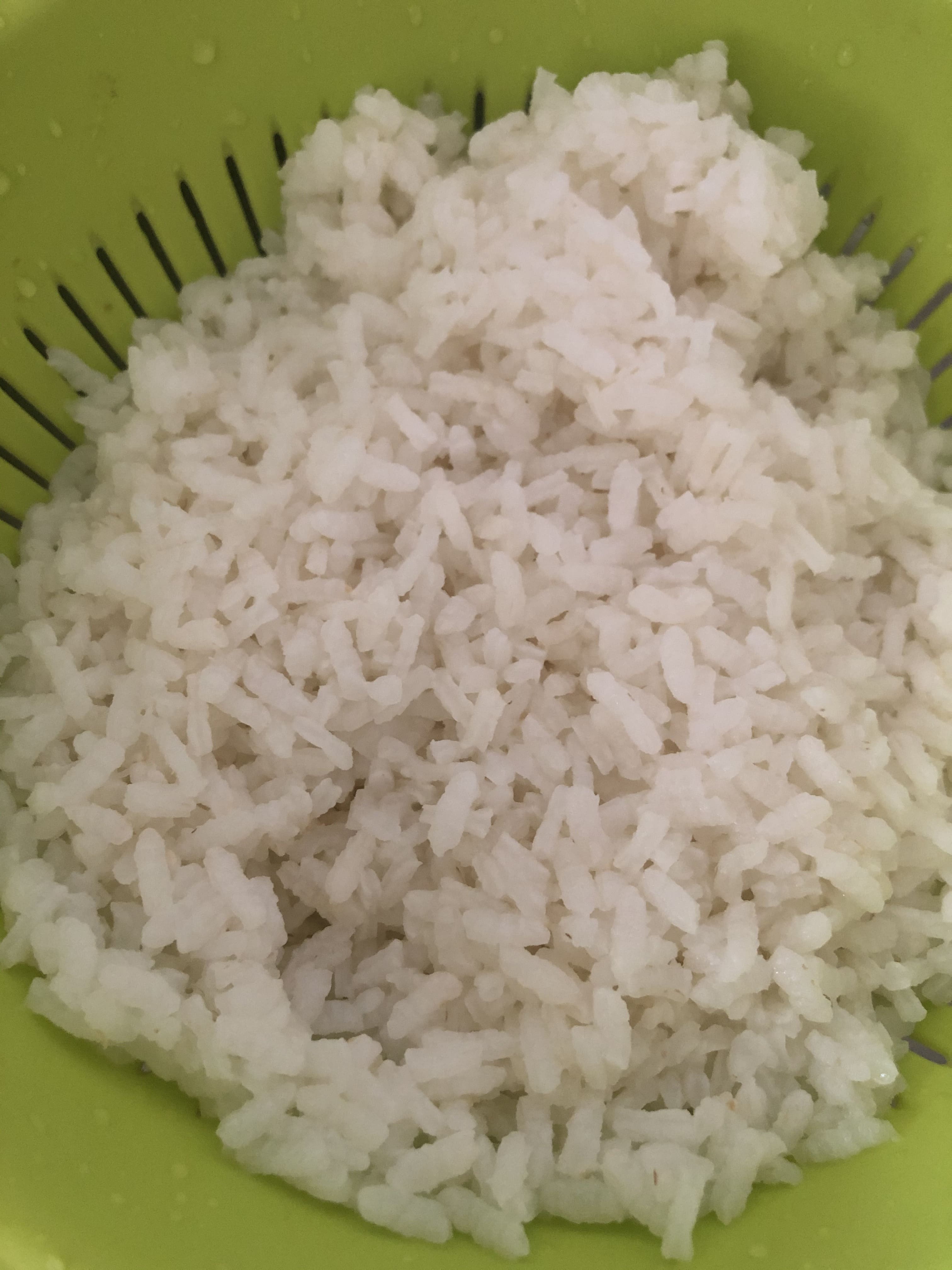 Llena un cazo con agua y lleva a ebullición. Cuando empiece a hervir añade el arroz y deja cocer durante unos 20 minutos, que quede bien cocido, pero no pasado. Escurrimos y aclaramos para que quede suelto.