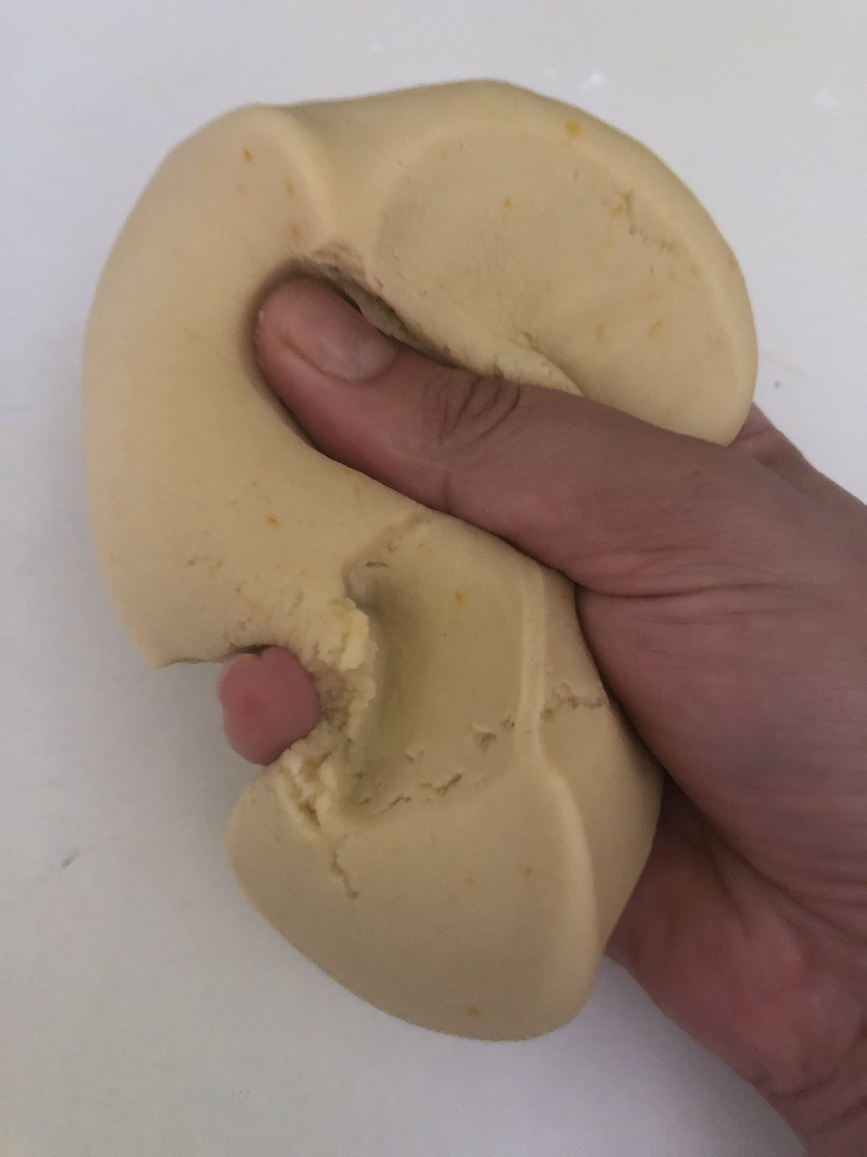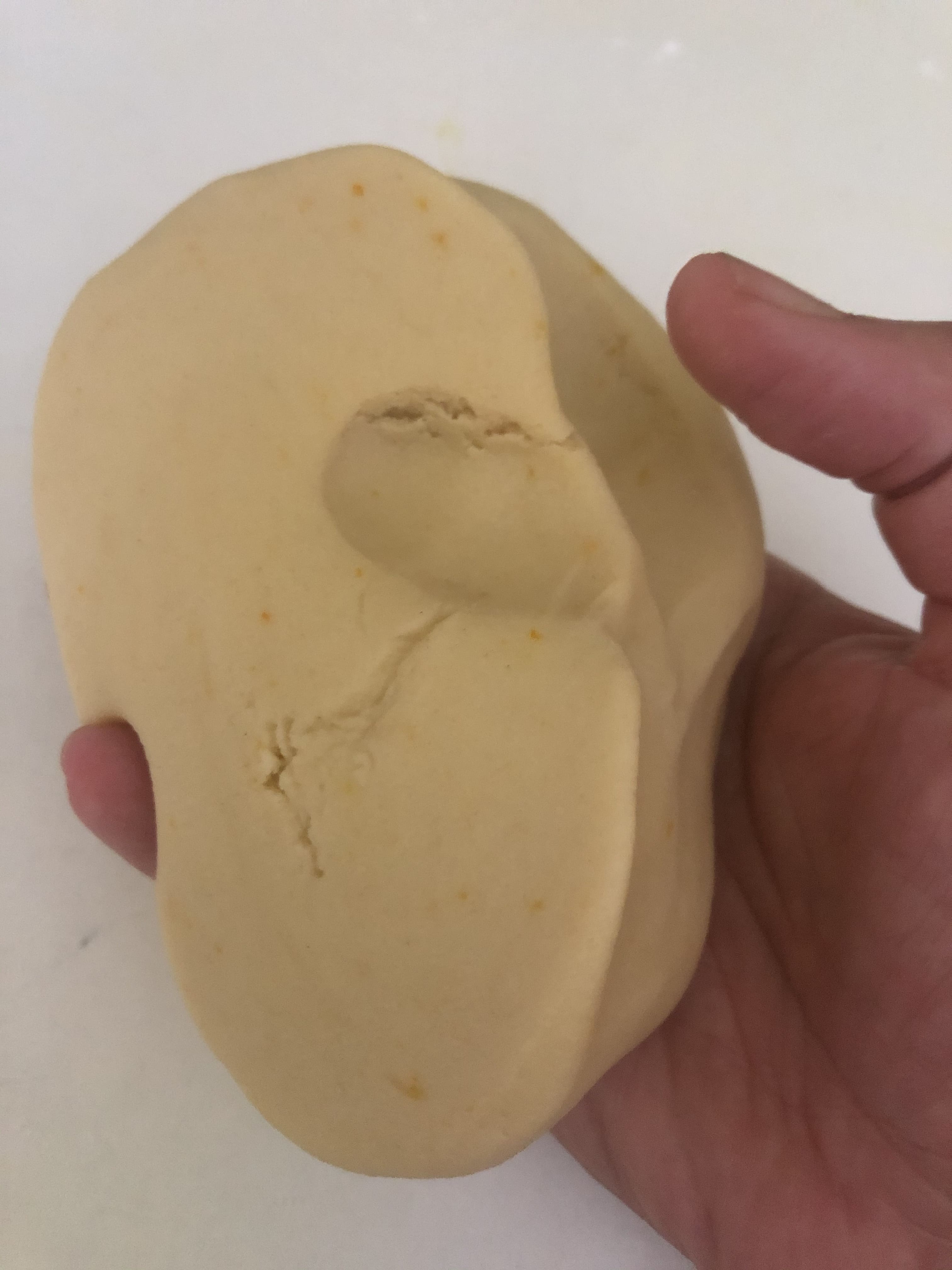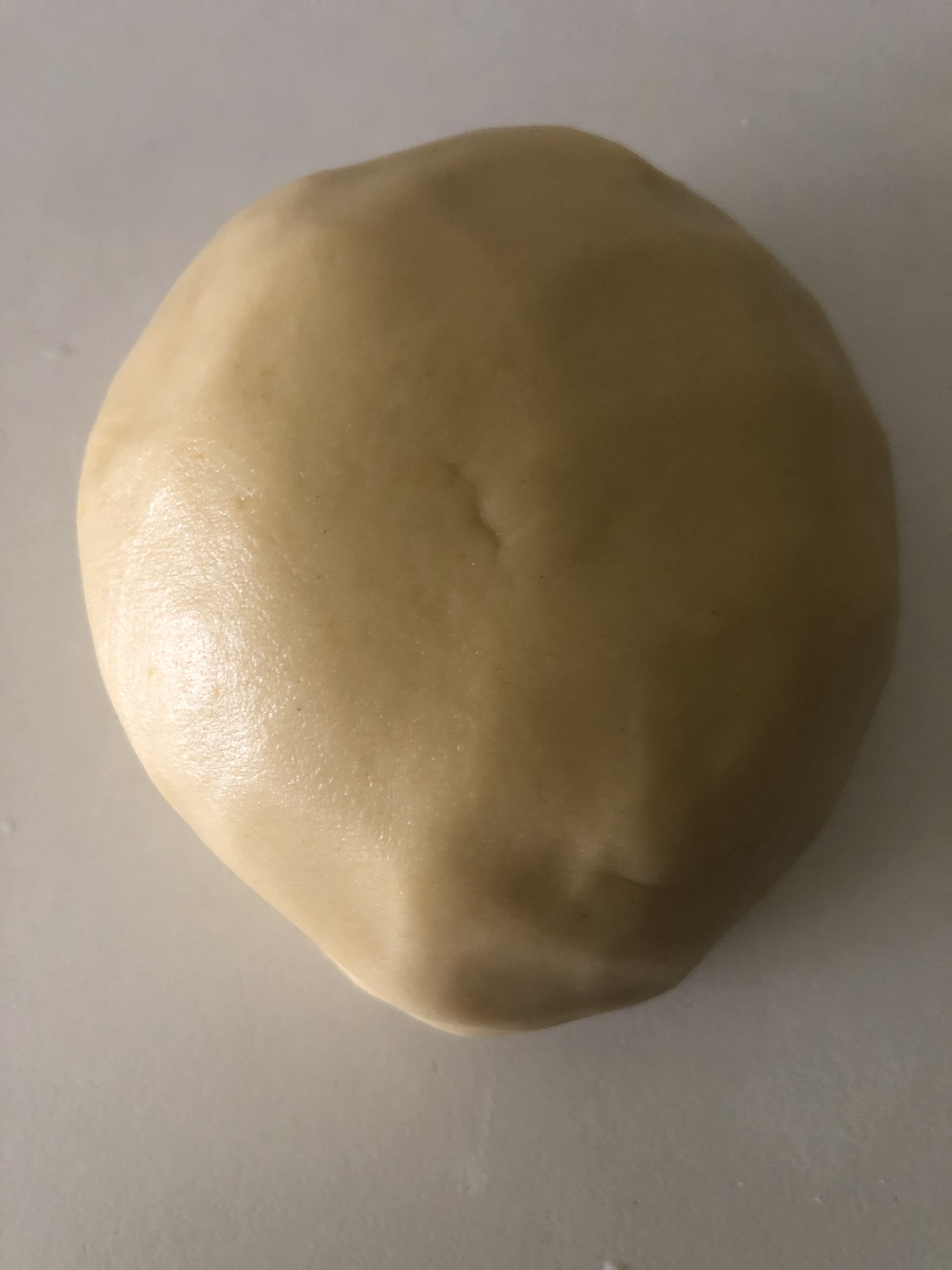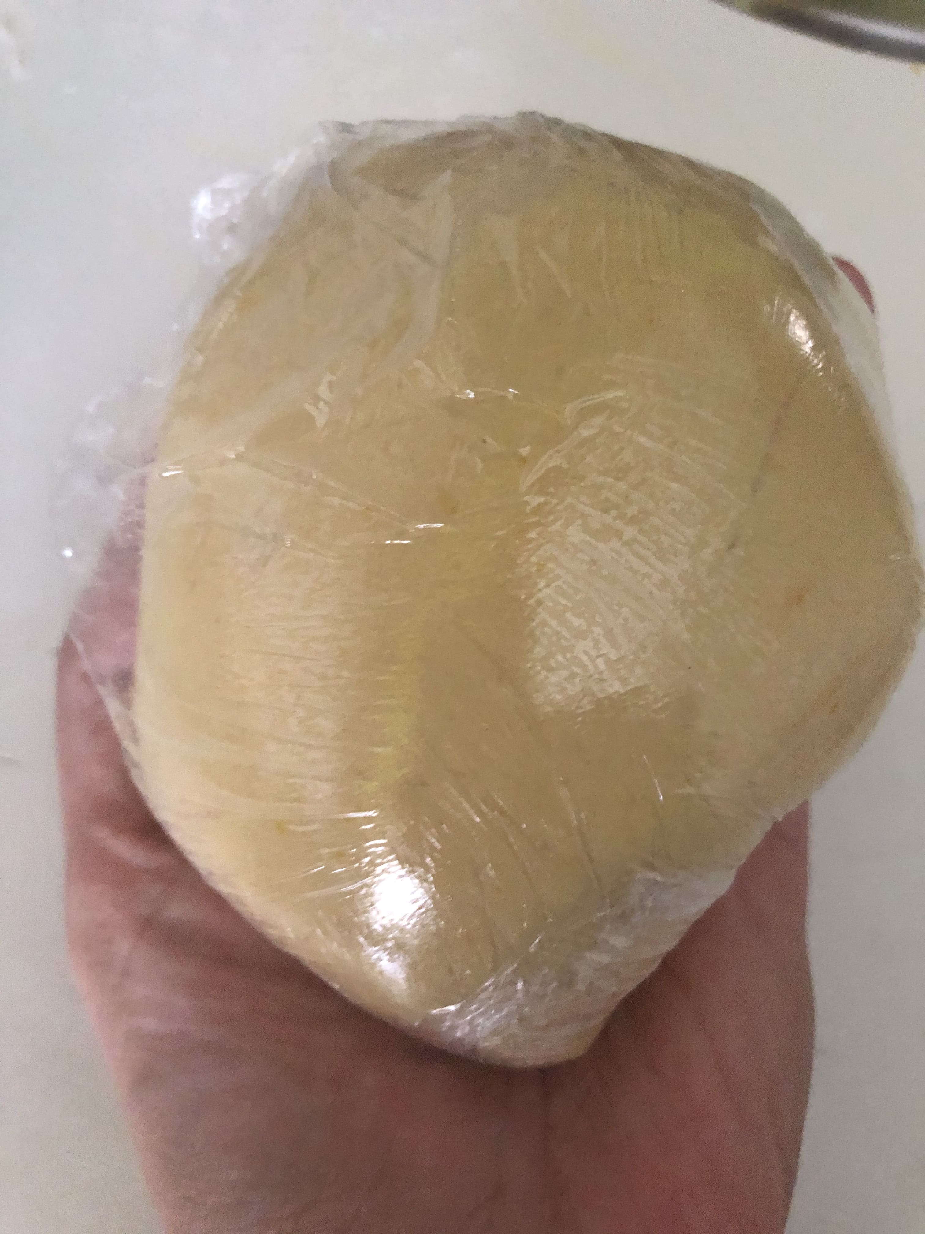 En mi caso quedó bastante suave, así que no tuve que añadir agua. Haz una bola, cubre con papel film y guarda en la nevera durante 30 minutos.