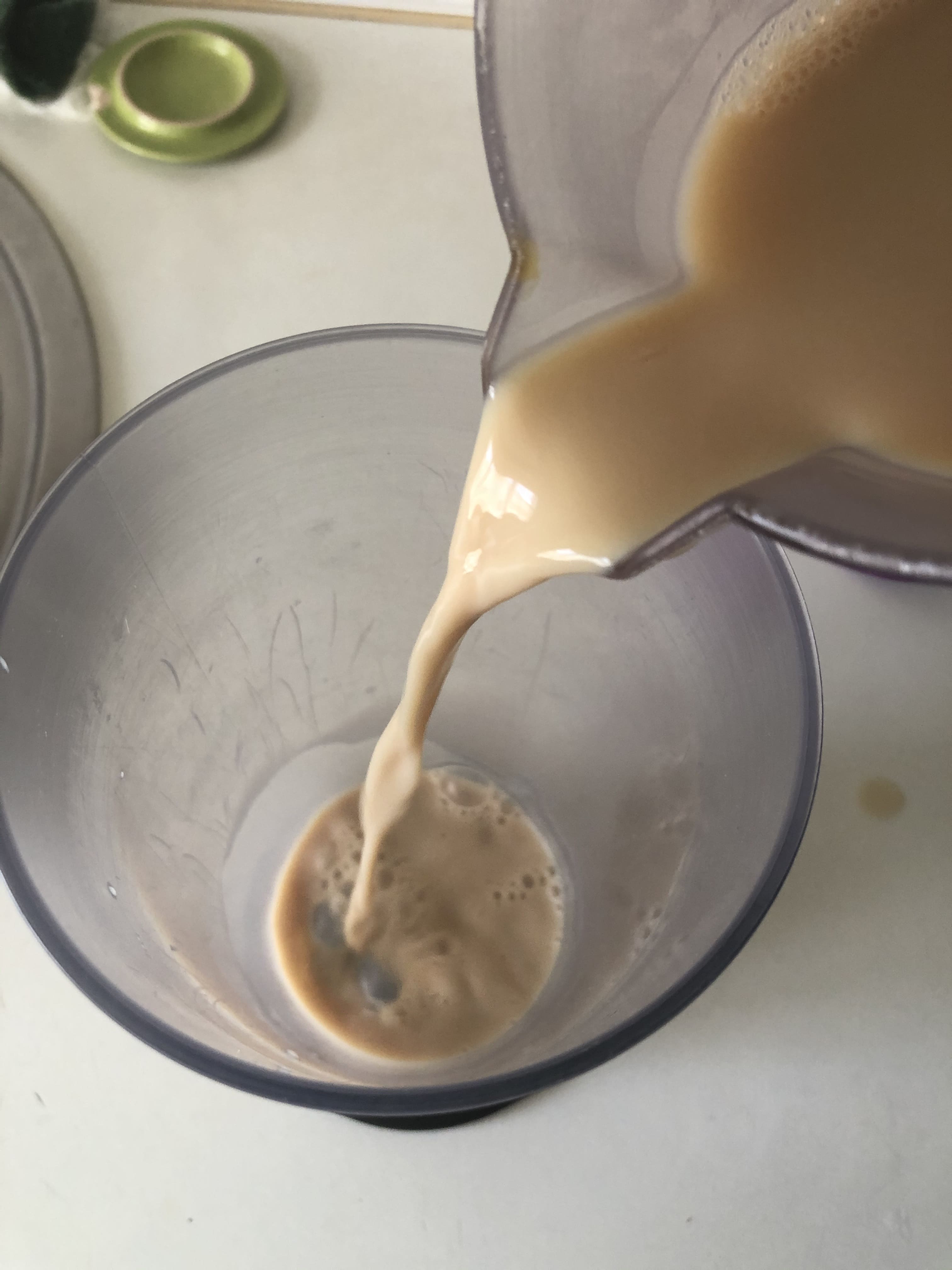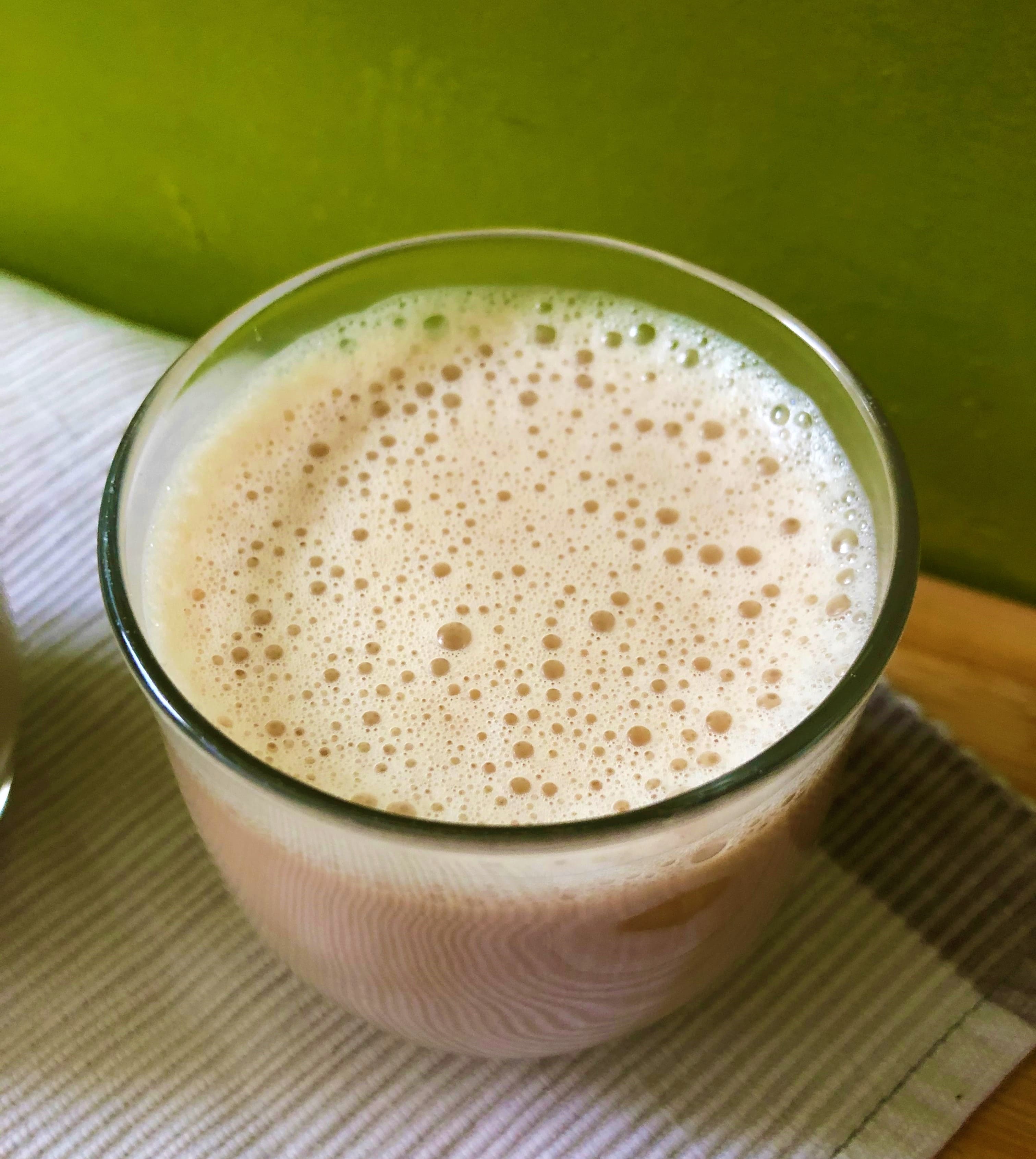 No creo que haya conseguido la textura y sabor de la receta original, pero después de intentarlo varias veces he de decirte algunas cosas que he aprendido por ensayo y error. La primera es que la leche es clave para lograr esa textura aterciopelada y cremosa, así que puedes echarle menos cantidad por el tema del azúcar, pero la textura no quedará igual. La segunda es que conseguí un té espumoso al utilizar más cantidad de leche (no sé si tuvo algo que ver o fue por las veces que lo pasé de un recipiente a otro, unas 10-15 jejeje). Conseguí una espuma que no se bajaba al minuto y además perduraba hasta terminar de beberlo.