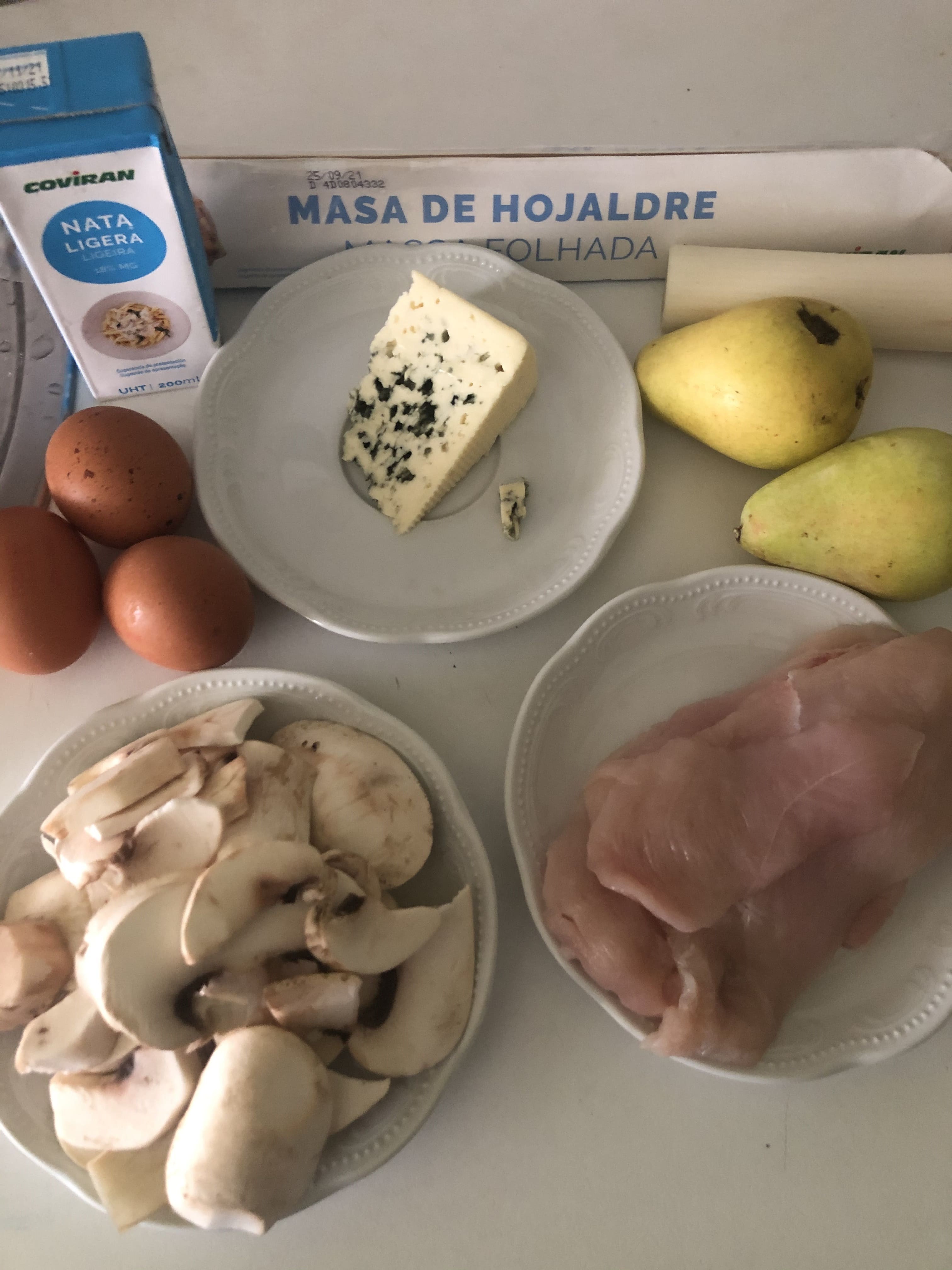 QUICHE DE POLLO, CHAMPIÑÓN Y PERA