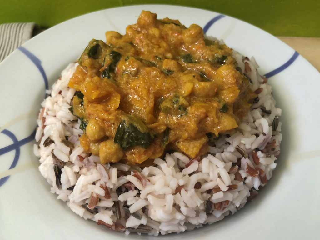 CURRY DE GARBANZOS, CALABAZA Y ESPINACAS