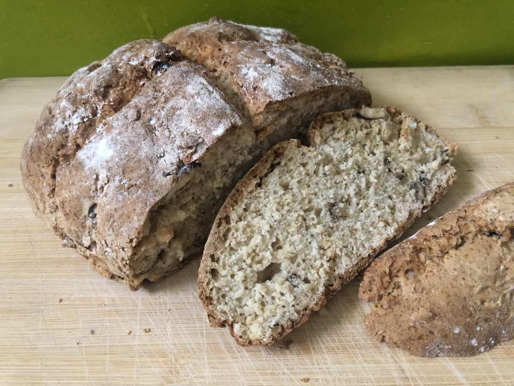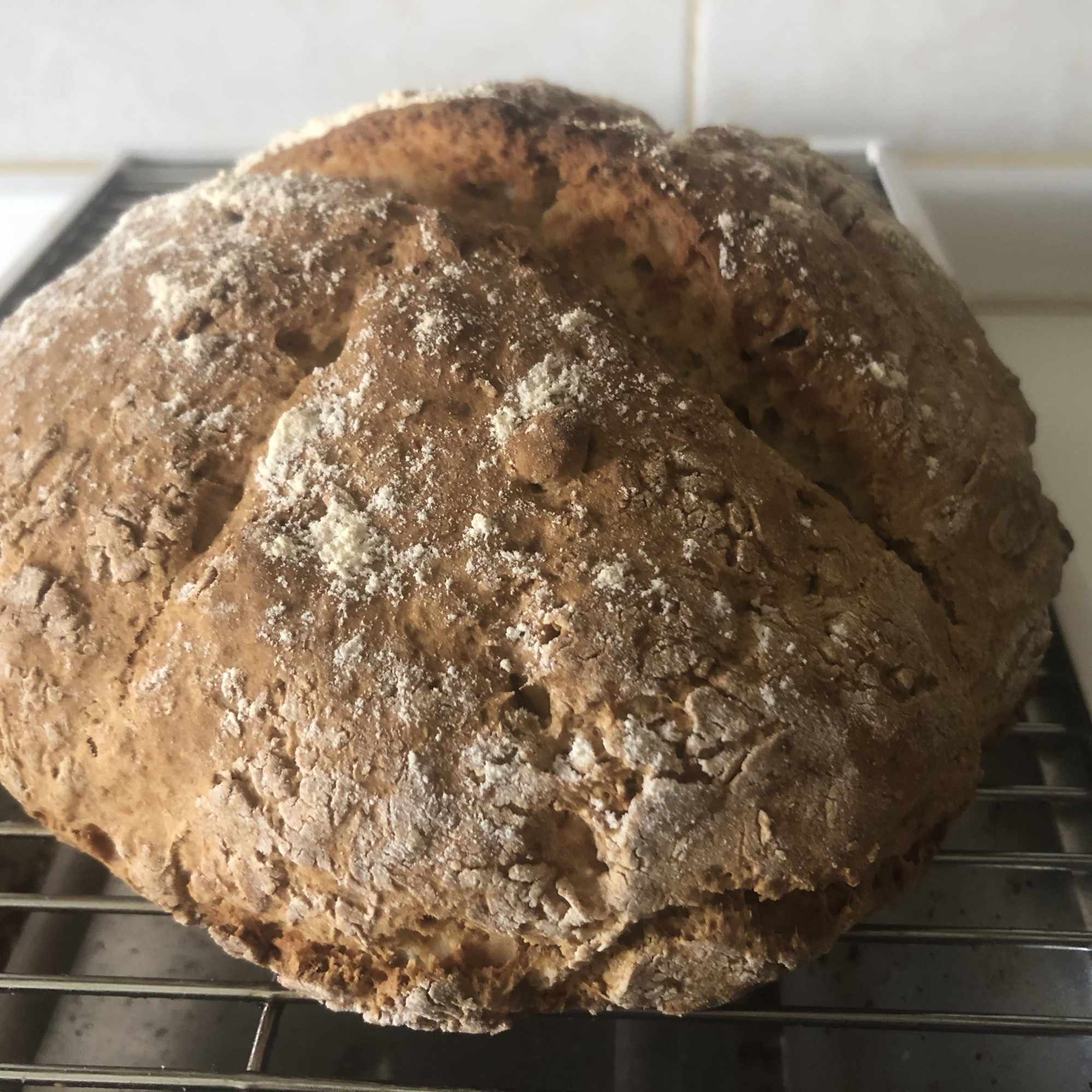 Se trata del “Pan de soda”, un pan muy facilito y muy rápido de hacer, ya que no se amasa. Esto se debe a que el bicarbonato comienza a hacer reacción en el momento en el que el bicarbonato entra en contacto con un ácido.