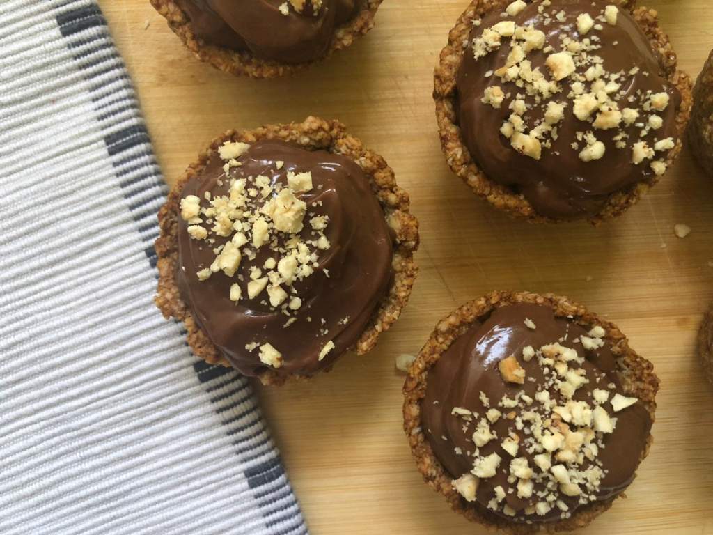 CESTITAS DE AVENA Y PLÁTANO CON CREMA DE CHOCOLATE