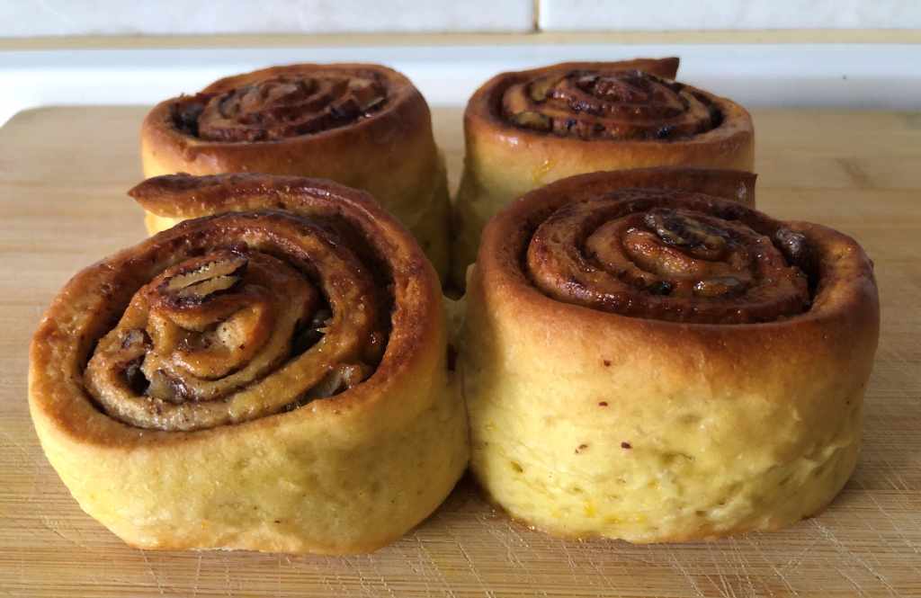 Esta semana el capitán fue @ignasiagell, cuyos panes son un placer para la vista (y seguro que también para el paladar). Es una cuenta que sigo desde hace tiempo y que me encanta, pero he de decir que me costó decidirme por una de sus recetas para versionar. Finalmente me decanté por los Chelsea Buns (los bollos de Chelsea), siguiendo la esencia de la receta, pero cambiando varios ingredientes y dándole prioridad a la naranja, que ahora está de temporada. ¿El resultado? Lo dejo a tu valoración 😉