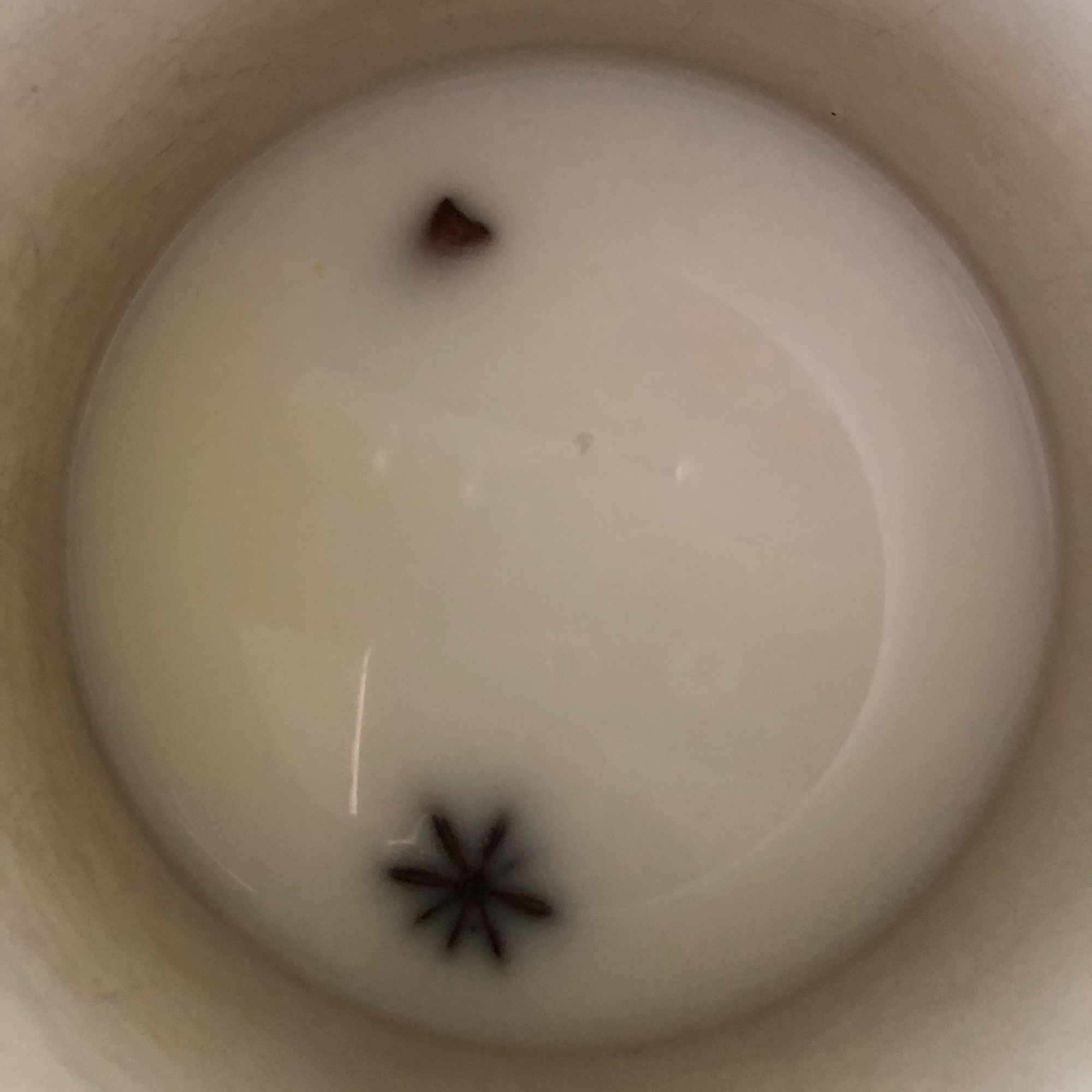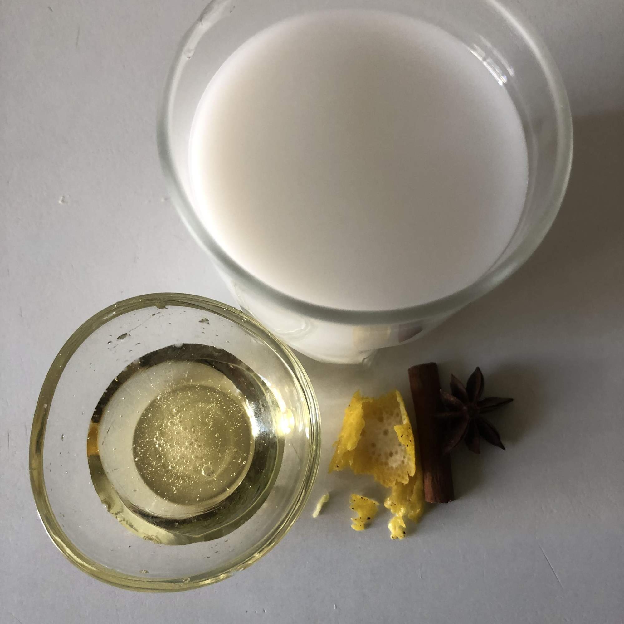 Mientras se cocina, separa un poco de la leche y disuelve la maicena. Pon el resto a calentar a fuego bajo en un cazo, junto con la canela, la cáscara de limón, el anís y el sirope. Cuando empiece a hervir retira del fuego, tapa e infusiona unos 15-20 minutos.