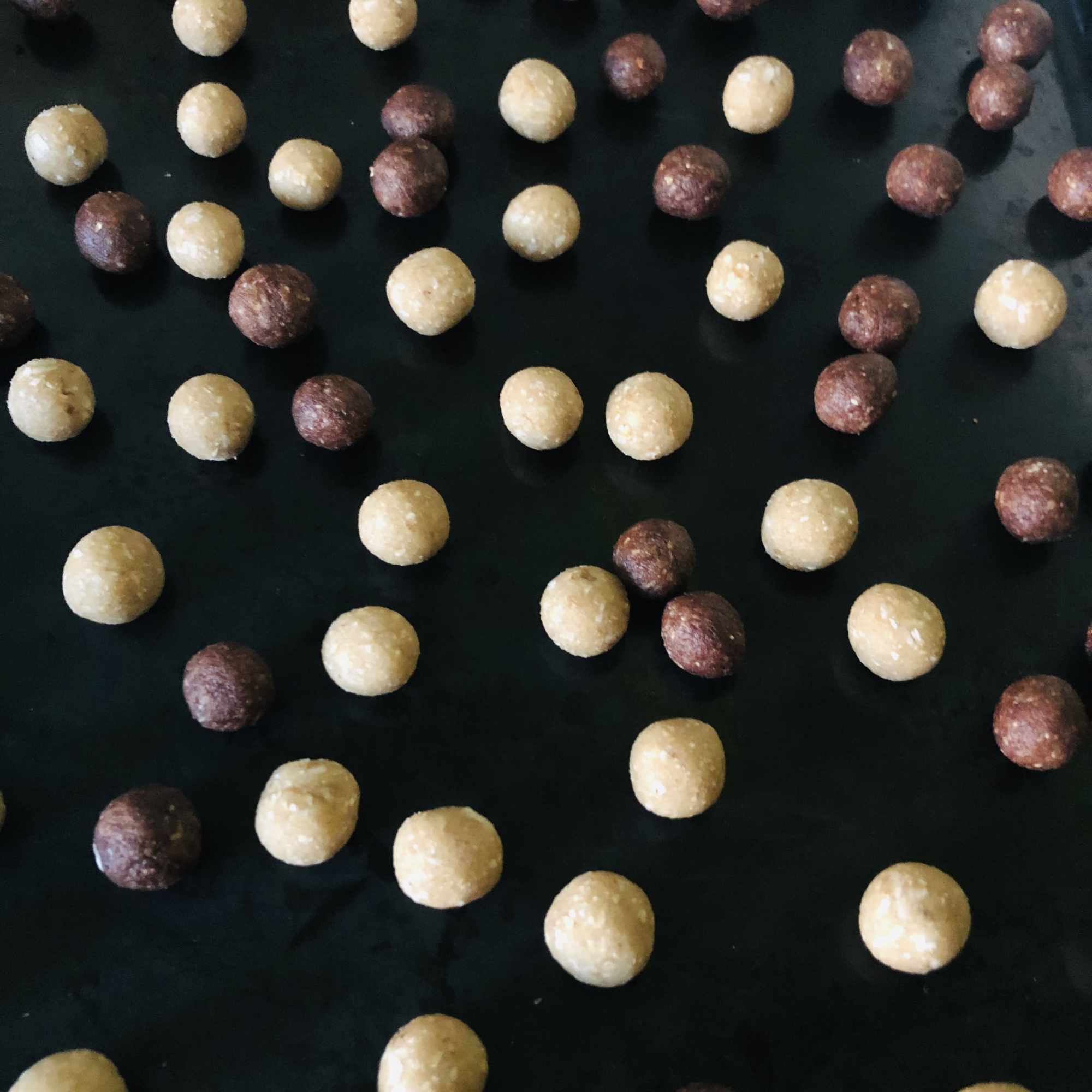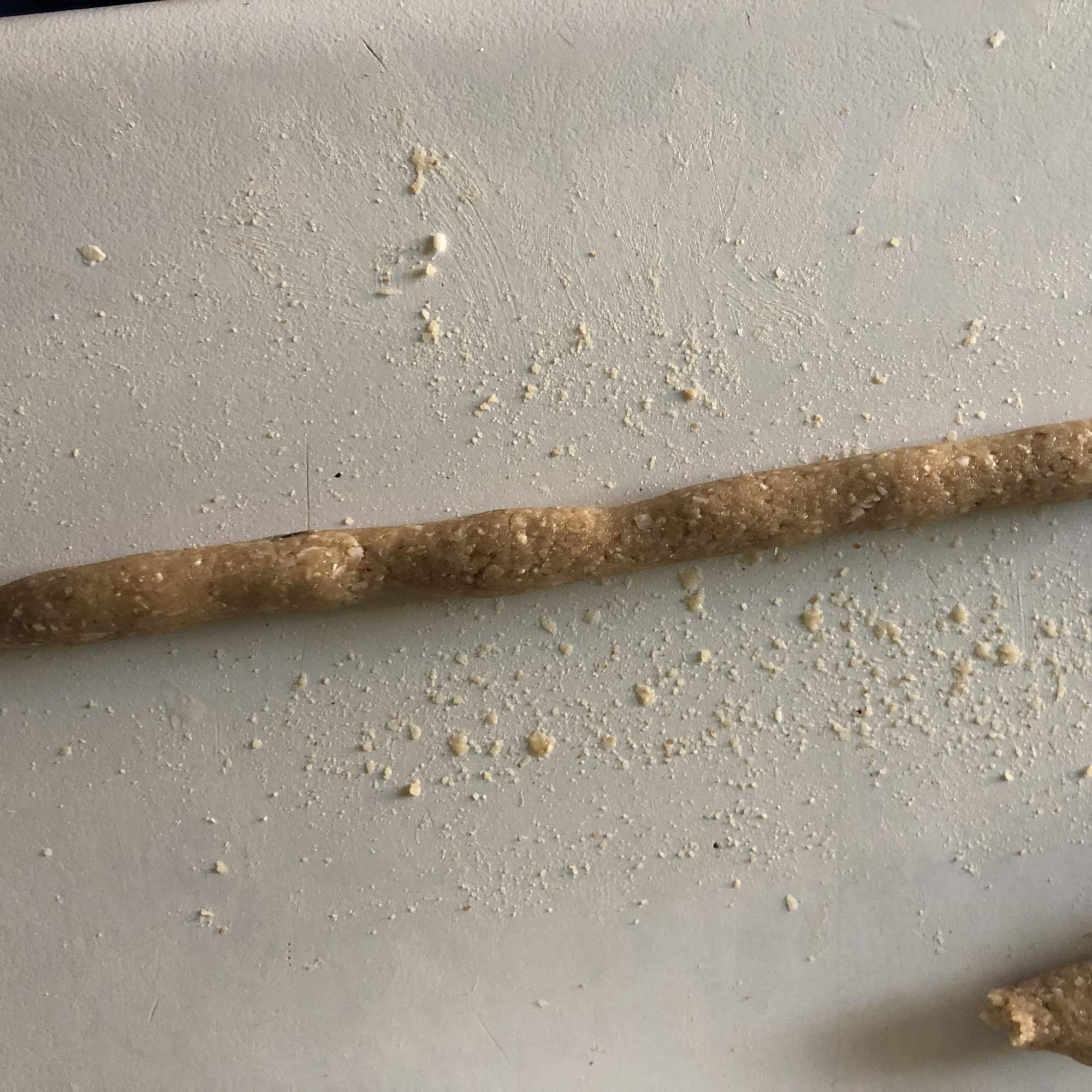 Haz un churro no muy grueso y corta en porciones de 1cm. Da forma de bolita y hornea unos 15-20 minutos. Deja enfriar por completo.