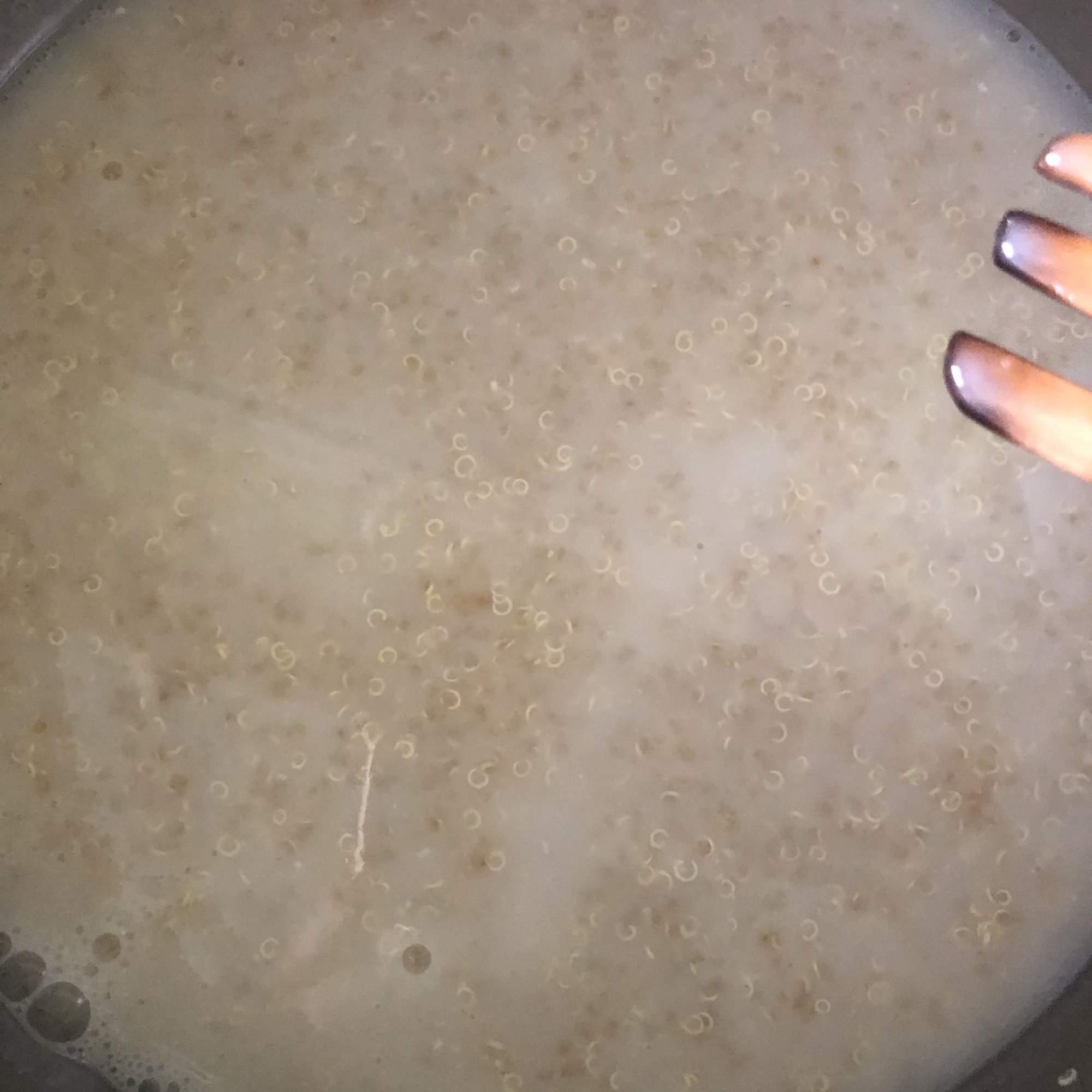 Pasado este tiempo, retira las especias, añade la quinoa a la leche y calienta de nuevo. Agrega la maicena disuelta y remueve hasta que espese (quedará como una crema ligera). Sirve en cuencos individuales.