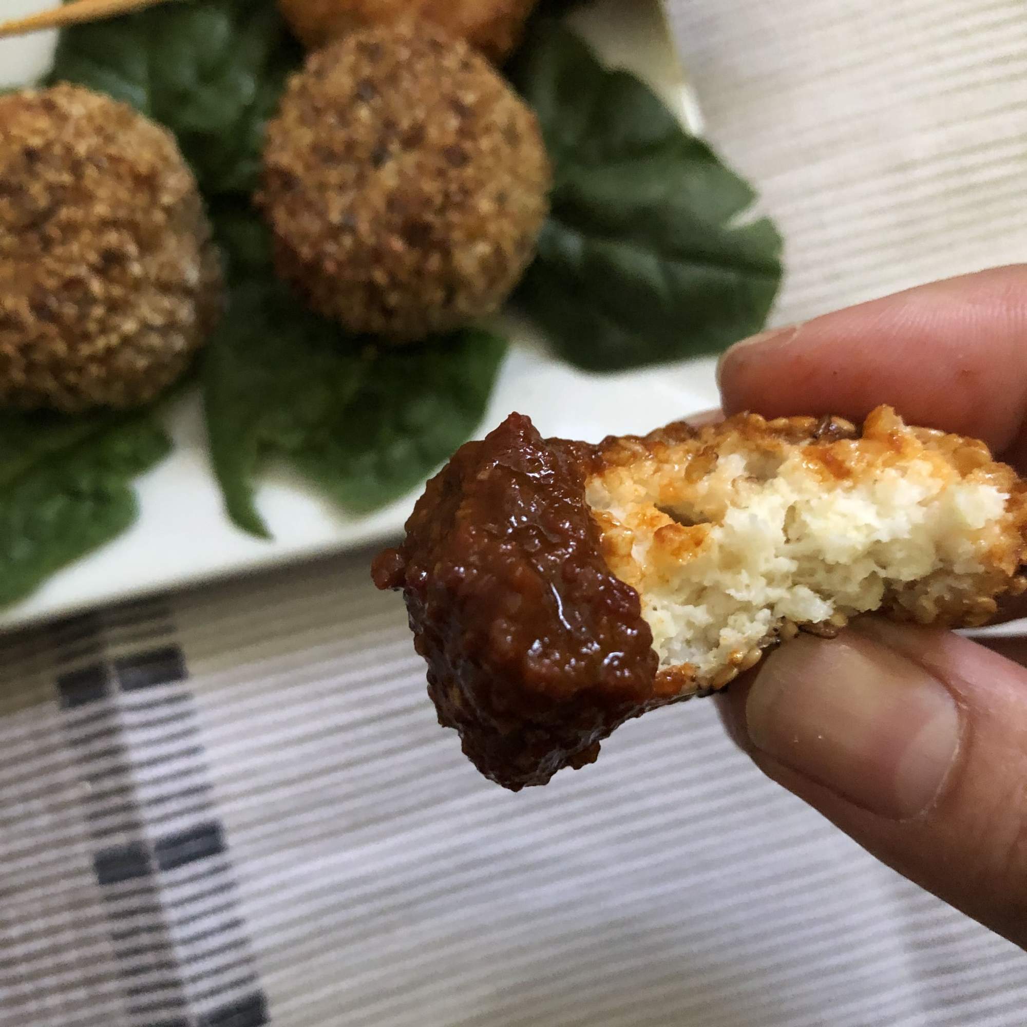 Puedes rebozar las bolitas en sésamo o dejarlas sin rebozar. Están riquísimas igualmente.