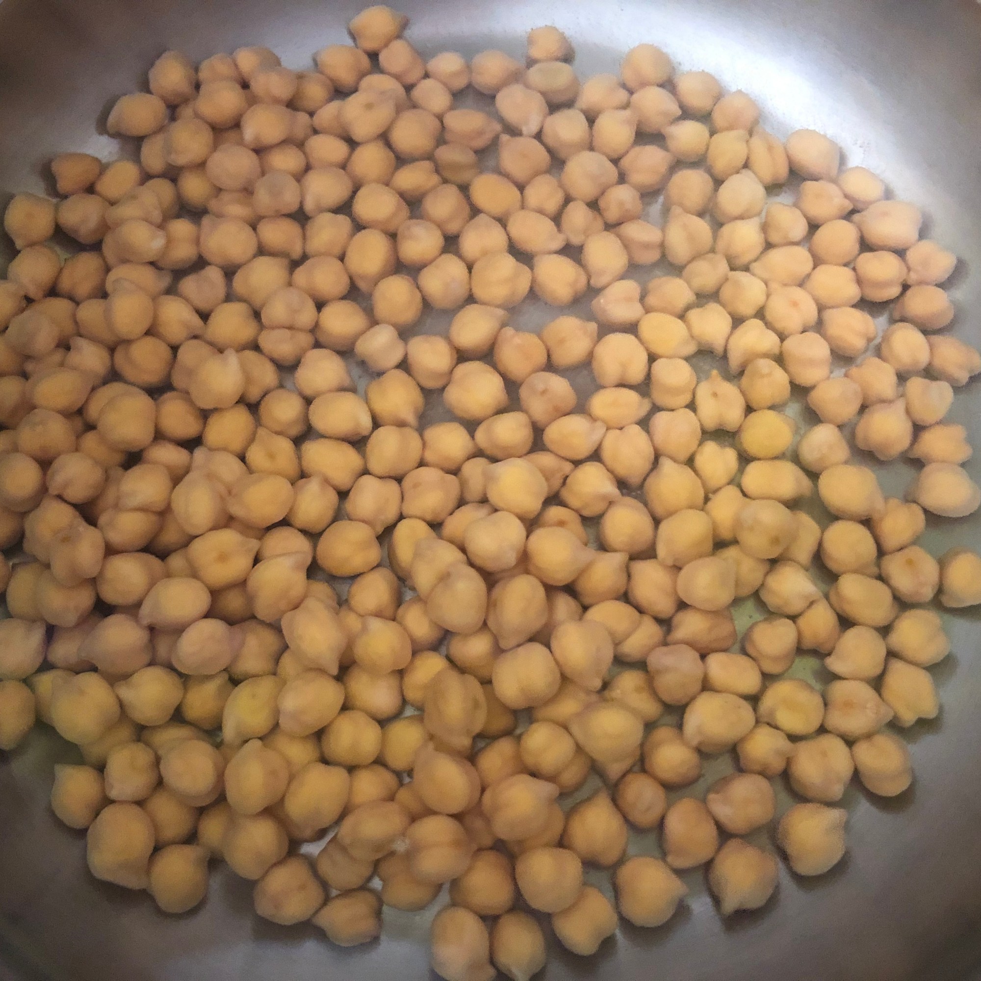 Lo primero que haremos será cocer los garbanzos, en caso de que los utilices secos. Para ello, tendrás que dejarlos en remojo en agua caliente con sal durante la noche. Escurre, aclara y cuece en la olla (unos 30-40 minutos). Escurre el agua de cocción y reserva por si es necesario después. Deja enfriar los garbanzos.