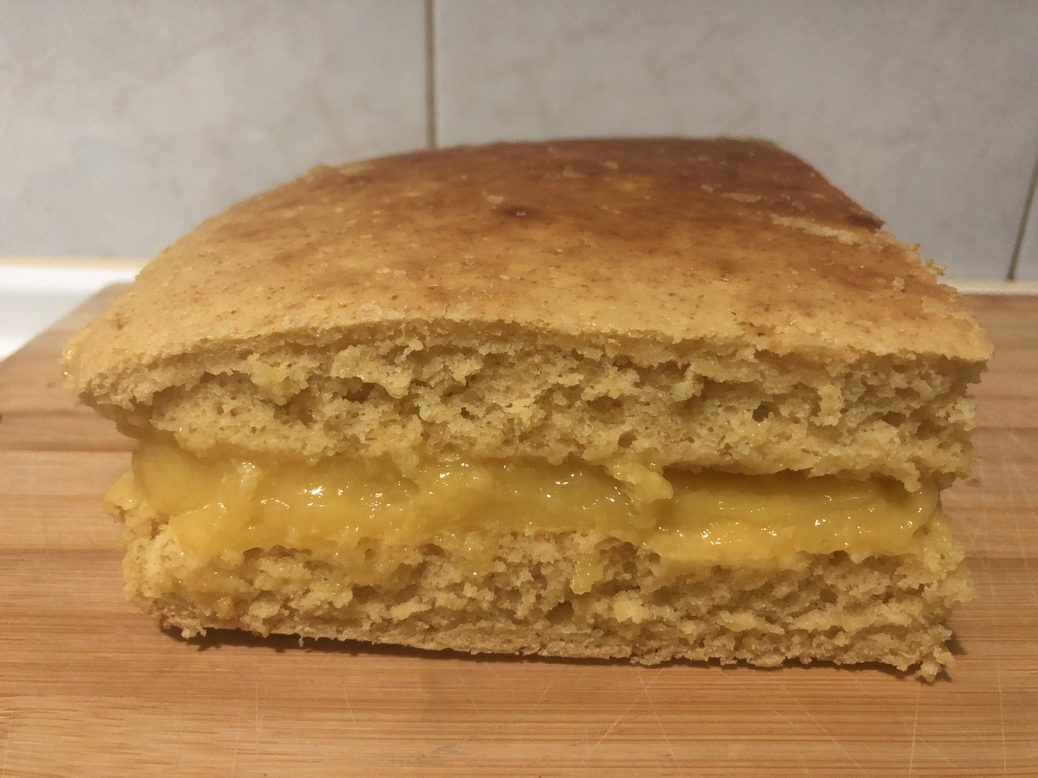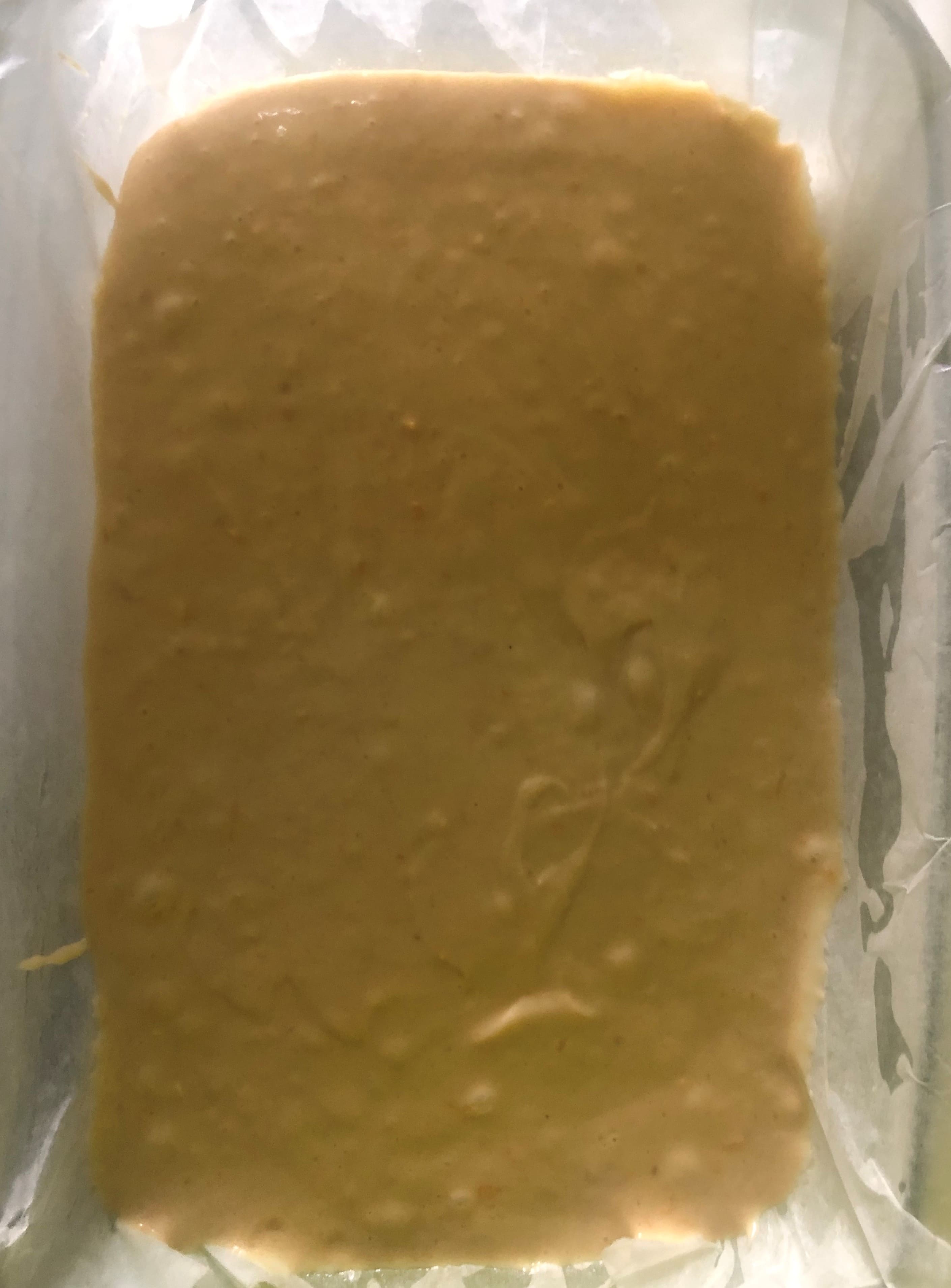 Con las cantidades que os doy podéis obtener dos bizcochos de 20×20 cm y unos 3-4 cm de grosor. Os aconsejo hacer dos masas en molde más grande y rellenar con lo que más os guste. En este caso he hecho una especie de crema pastelera de naranja, siguiendo el mismo proceso que para la crema pastelera vegana (normal y de chocolate). No le he añadido azúcar porque quería darle un toque fresco de sabor que contrastara con el bizcocho. También puedes hacer un relleno de chocolate o crema de queso mascarpone (aunque ya no sería vegana).