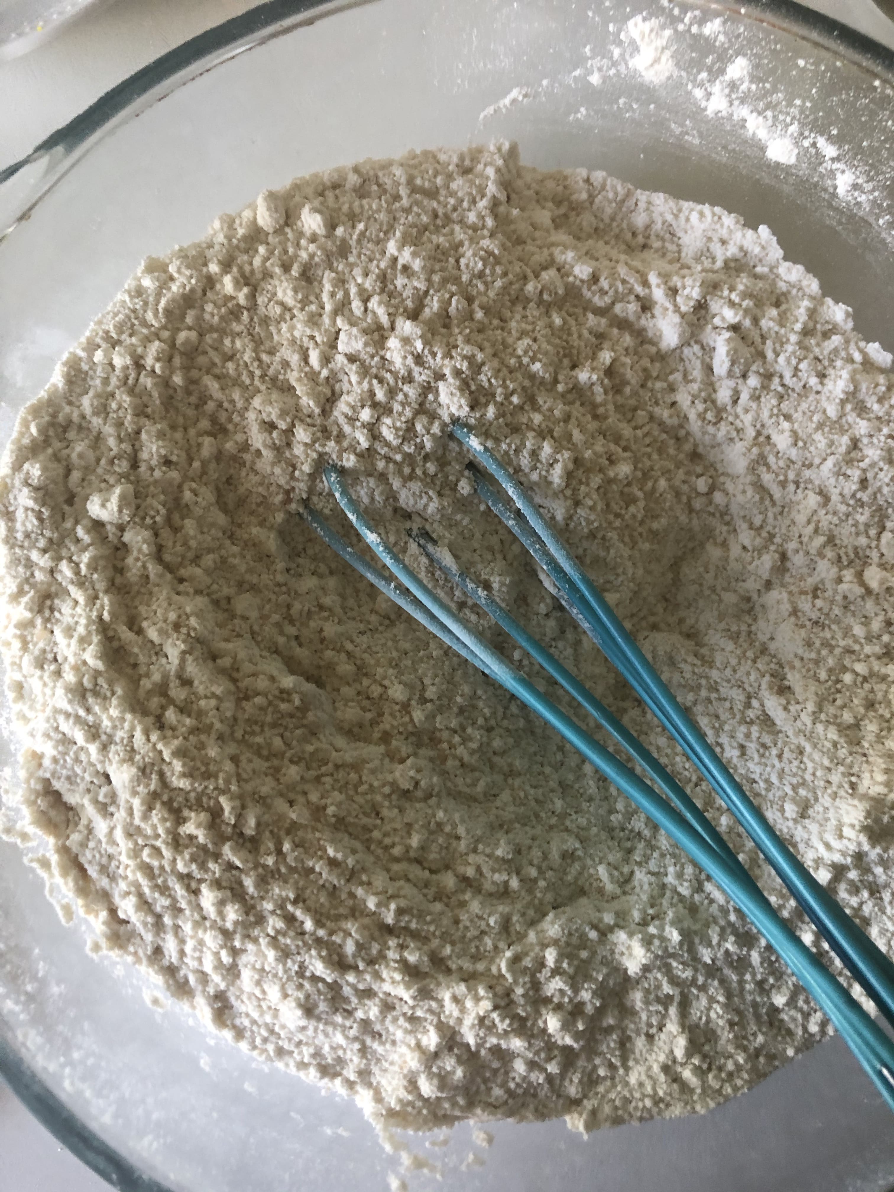 Precalienta el horno a 180ºC mientras preparas la masa. Coloca papel vegetal sobre el molde que vayas a utilizar y engrasa con un poco de aceite. Tamiza la harina, la levadura y el bicarbonato y mezcla bien con unas varillas.