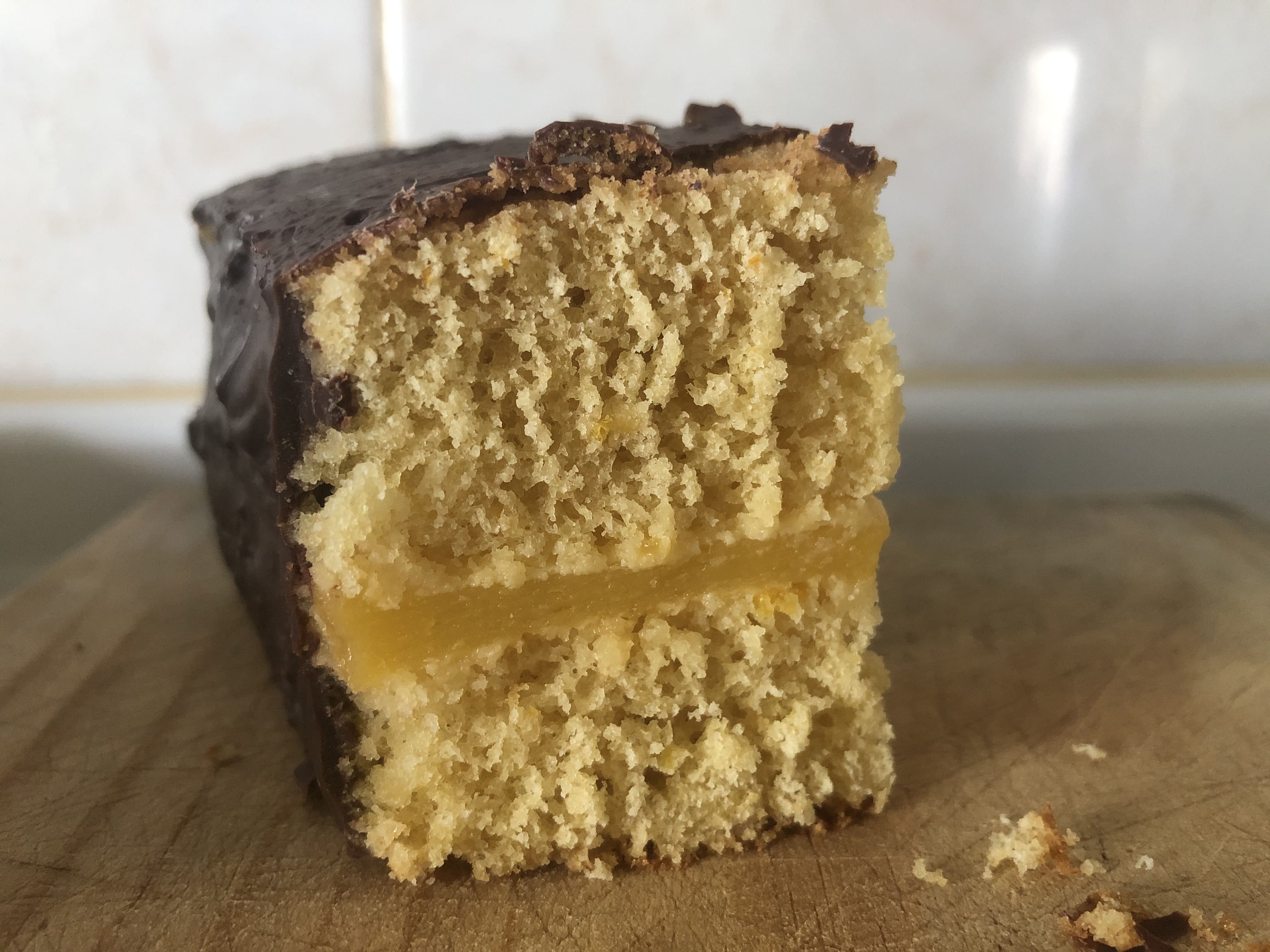 O bien, funde chocolate negro para cobertura y baña todo el bizcocho…