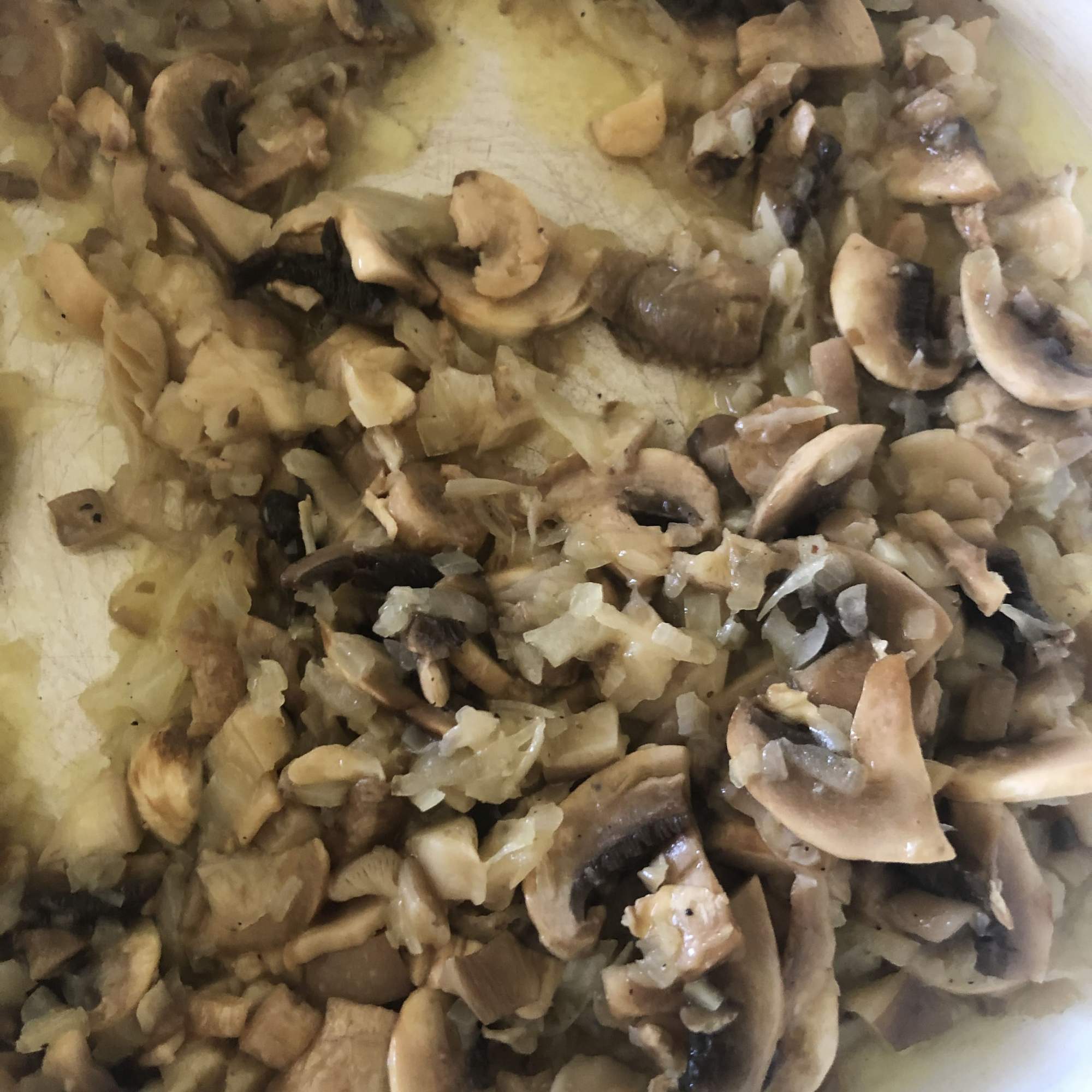 En una sartén con un poco de aceite saltea las setas reservadas y añade por encima al risotto a la hora de servir.