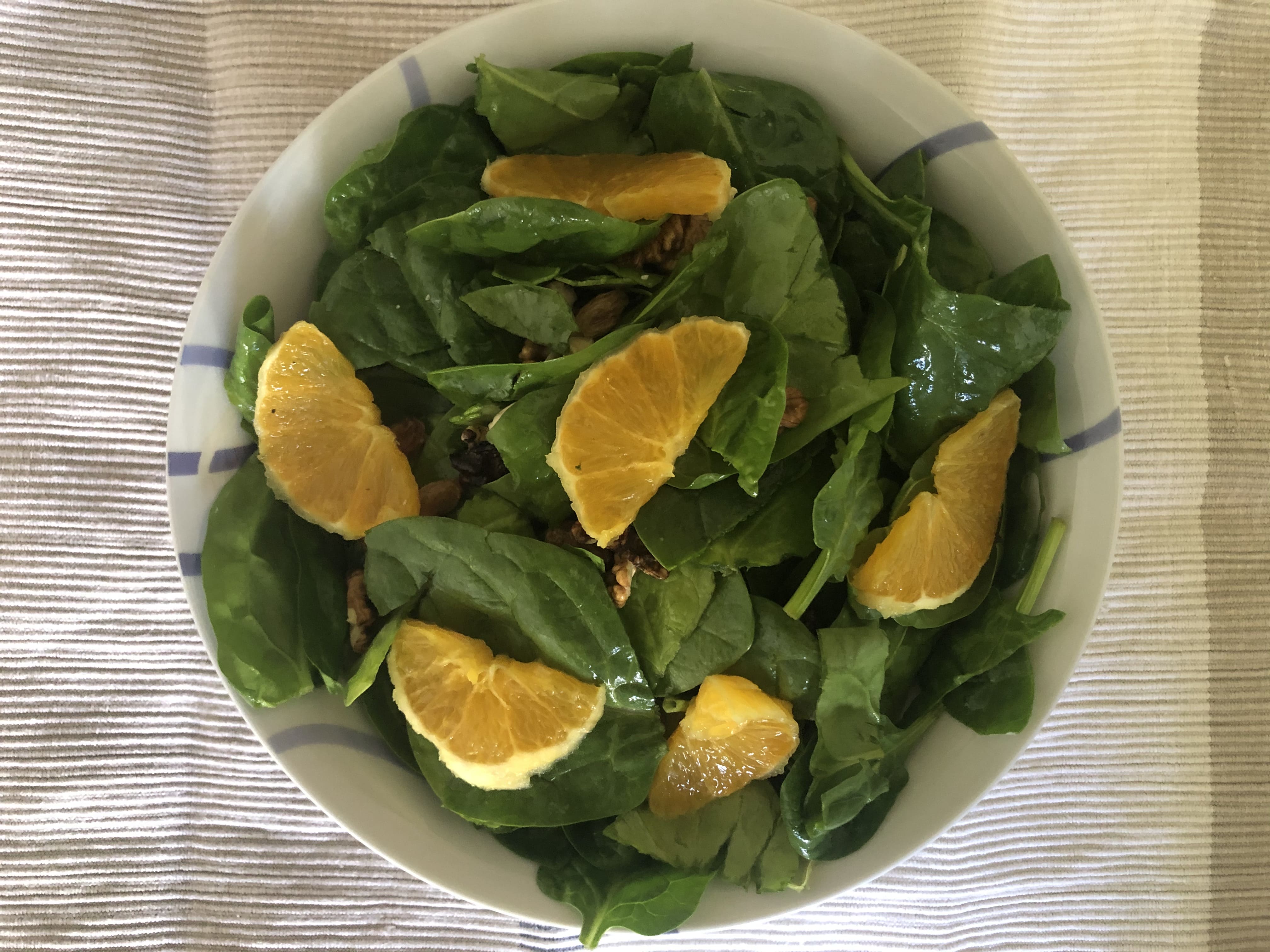 Hacía mucho que no compartía una receta de ensalada y ya tenía ganas. Estamos en plena temporada de hojas verdes: lechugas, escarolas, acelgas, espinacas y repollos y hoy os traigo una receta de espinacas. Confieso que me encantan de cualquier manera pero, sobre todo, frescas. Las espinacas combinan genial con los cítricos, que también están de temporada y las frutas secas. Así que si también os gustan y queréis algo diferente, ésta es vuestra receta.