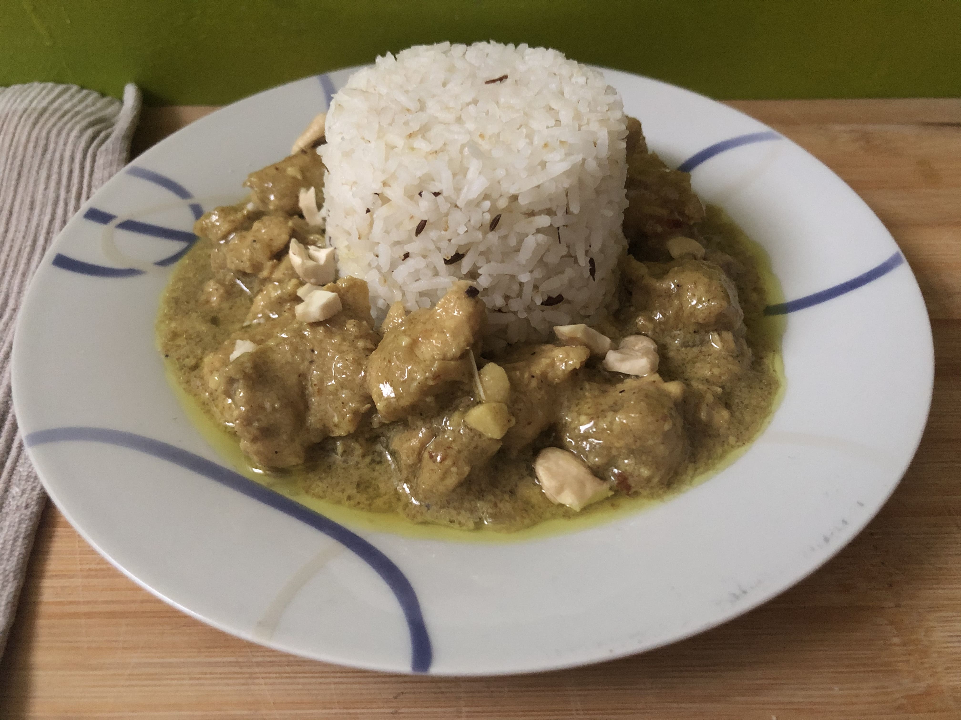 Hoy os traigo una receta de pollo korma, con un sabor especiado y suave y una textura muy cremosa debido a los anacardos y la leche de coco. Esta receta la hice en mi cumpleaños y fue todo un éxito (en general toda la comida, que giró en torno a la gastronomía india).