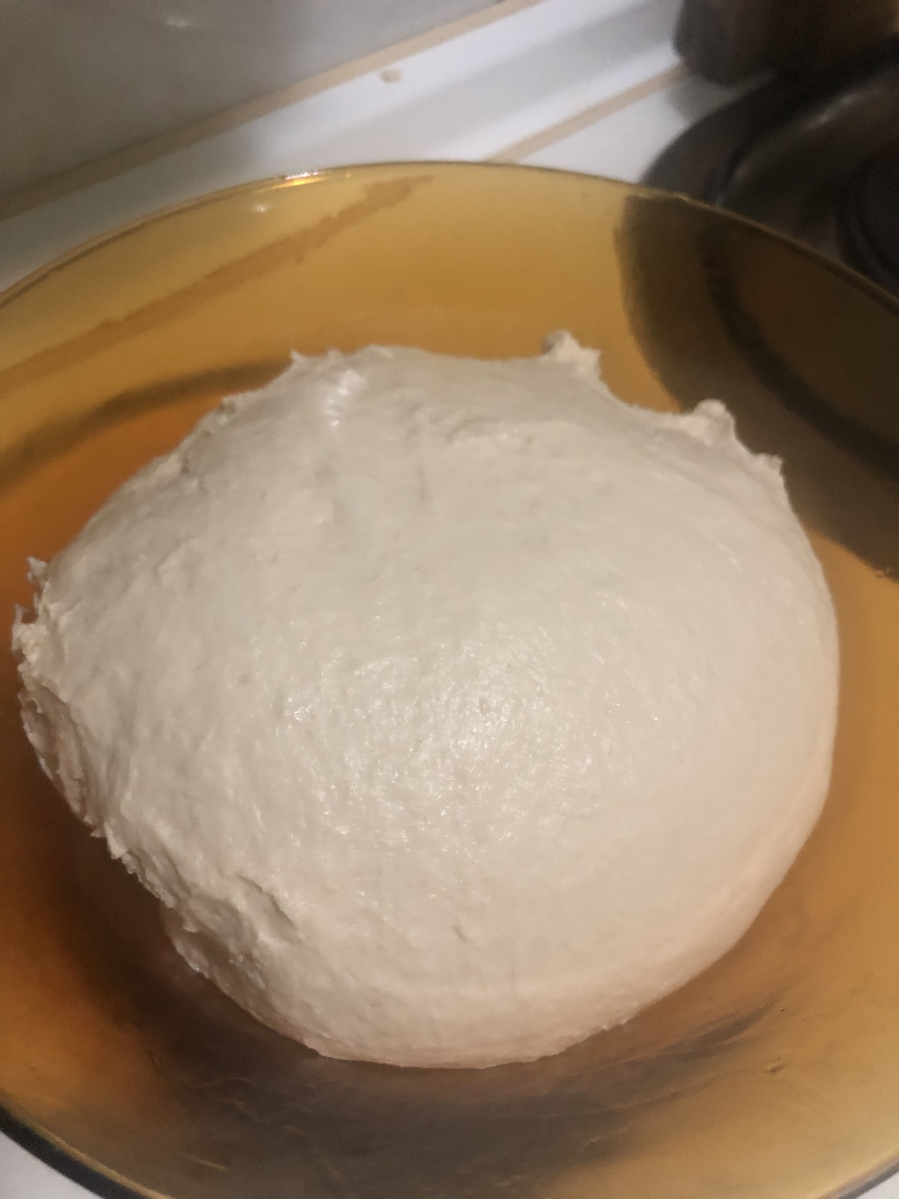 Engrasa un recipiente con aceite y coloca la masa. Cubre con un papel film y reposa hasta que doble el volumen. (yo dejé que creciera 1/3 del volumen y la dejé en la nevera cubierta con papel film toda la noche).