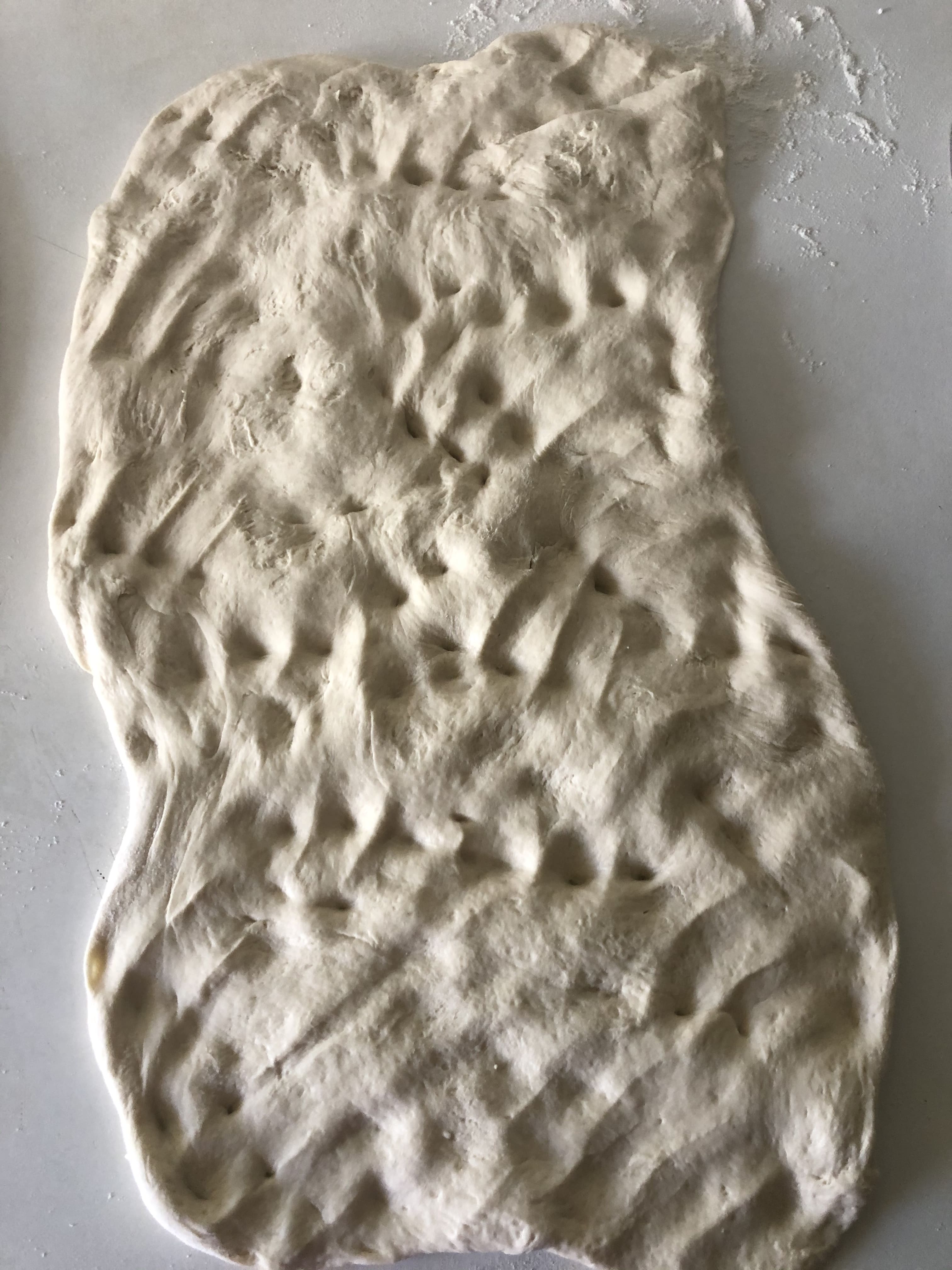 Tamiza la harina, haz un hueco en el centro y agrega los demás ingredientes: agua, leche, yogur, sal, azúcar, aceite y levadura. Integra con una cuchara de madera hasta que no puedas seguir trabajando. Vuelca sobre la superficie de trabajo y amasa hasta conseguir una masa lisa y elástica. (es una masa pegajosa, te recomiendo alternar períodos de amasado y reposo de 5 minutos cada uno).