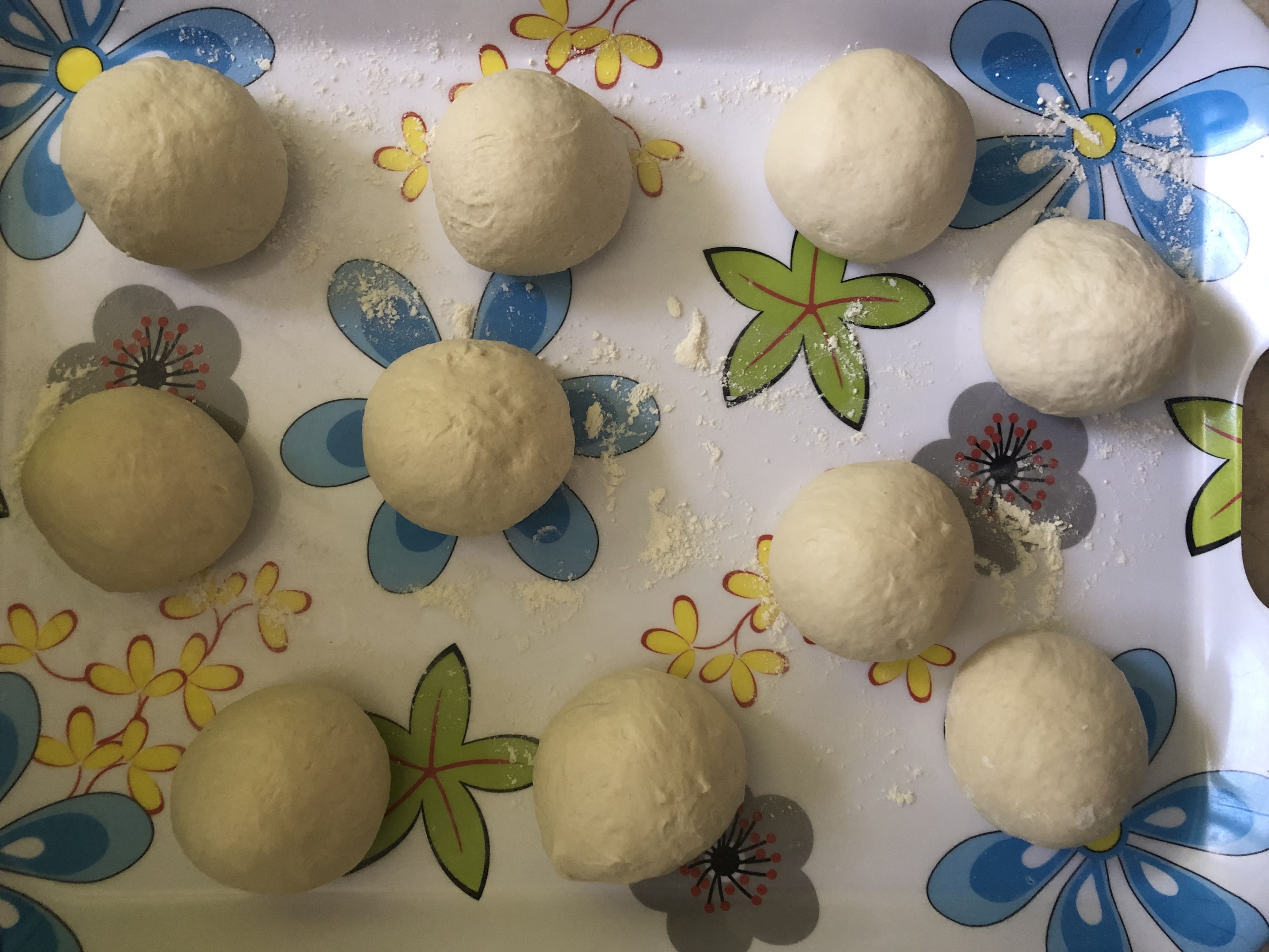 Enharina la superficie de trabajo, desgasifica la masa presionando con los nudillos. Divide en porciones iguales, bolea y estira con el rodillo (forma redonda o alargada), con un grosor de 1 cm.