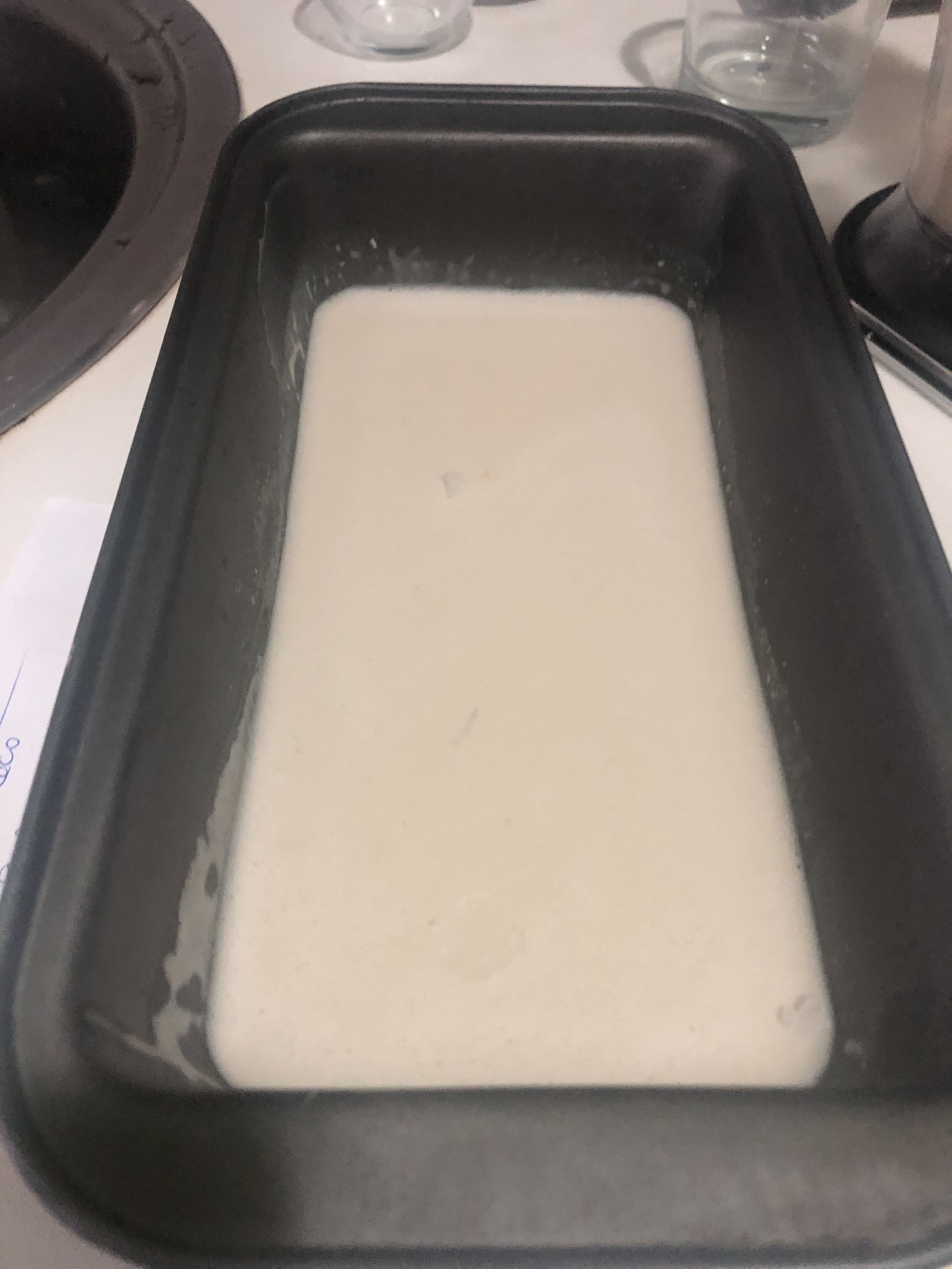 Pasa esta mezcla a un recipiente de metal y enfría en el congelador durante unos 40-50 minutos, sin cubrir.