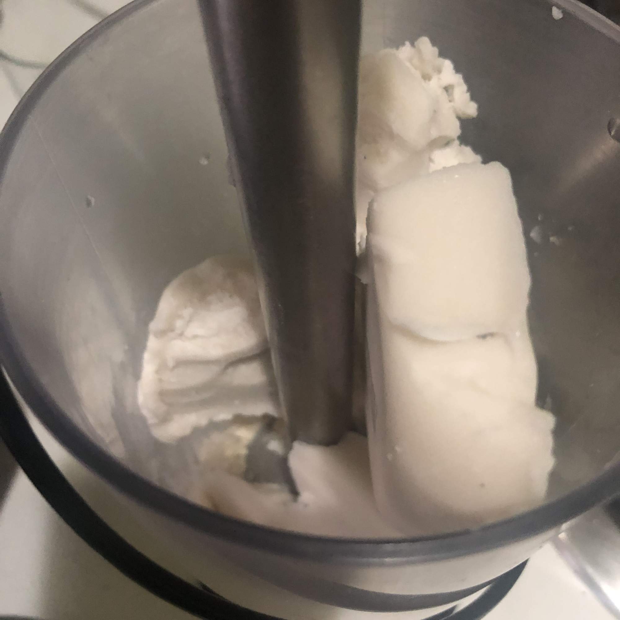 Tritura los anacardos junto con la esencia de vainilla. Añade la crema de coco y tritura todo bien hasta conseguir una textura suave. Vuelve a verter la mezcla en el recipiente de metal y reposa en el frigo durante unas 3 horas para que coja consistencia.