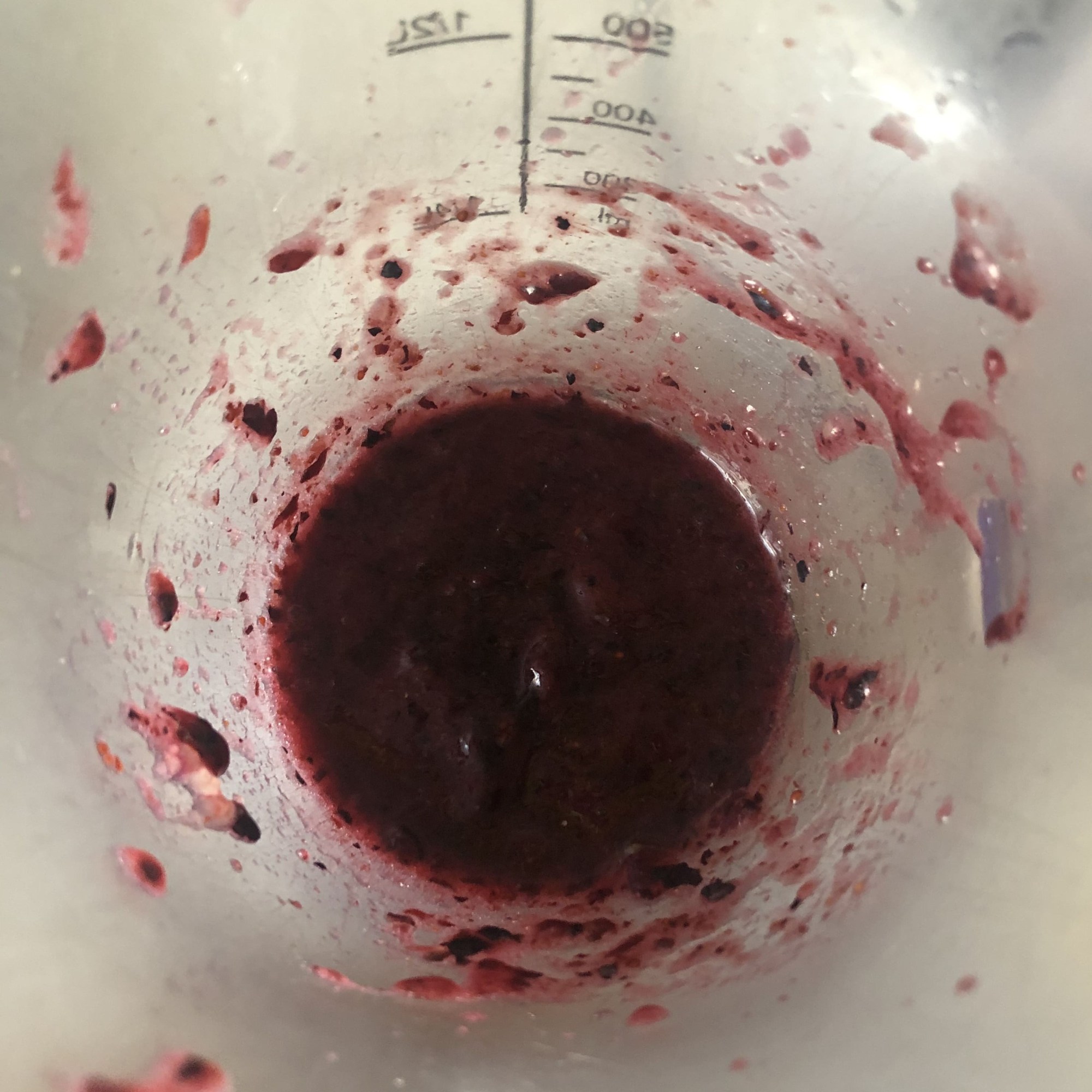Tritura los arándanos. Añade esta crema a lo anterior y bate con varillas hasta que se integren los ingredientes.