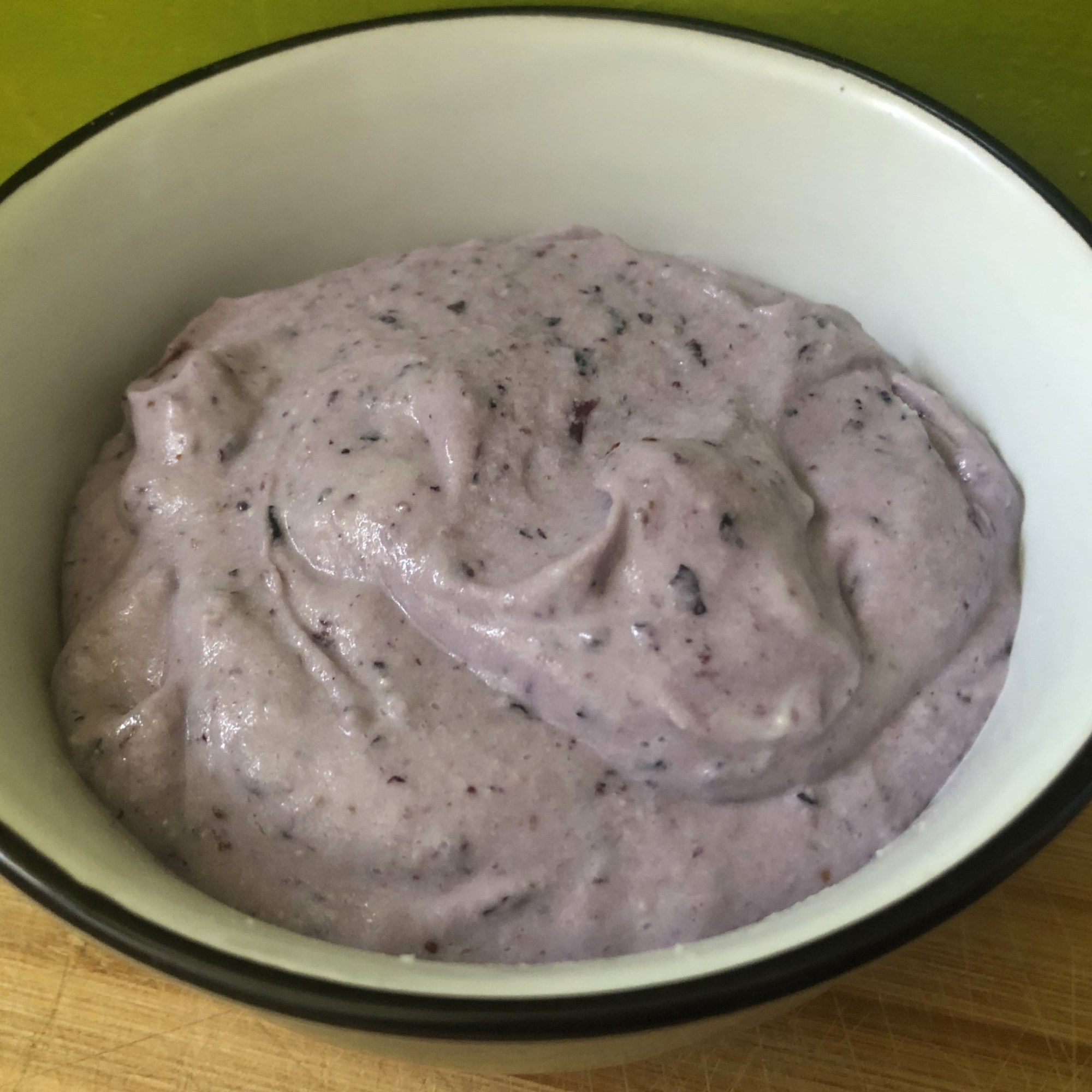 Prácticamente he seguido las instrucciones al pie de la letra, aunque he hecho algunas modificaciones (como siempre hago). El resultado ha sido una crema suave y firme, con un sabor delicioso a coco y arándanos y un color precioso.