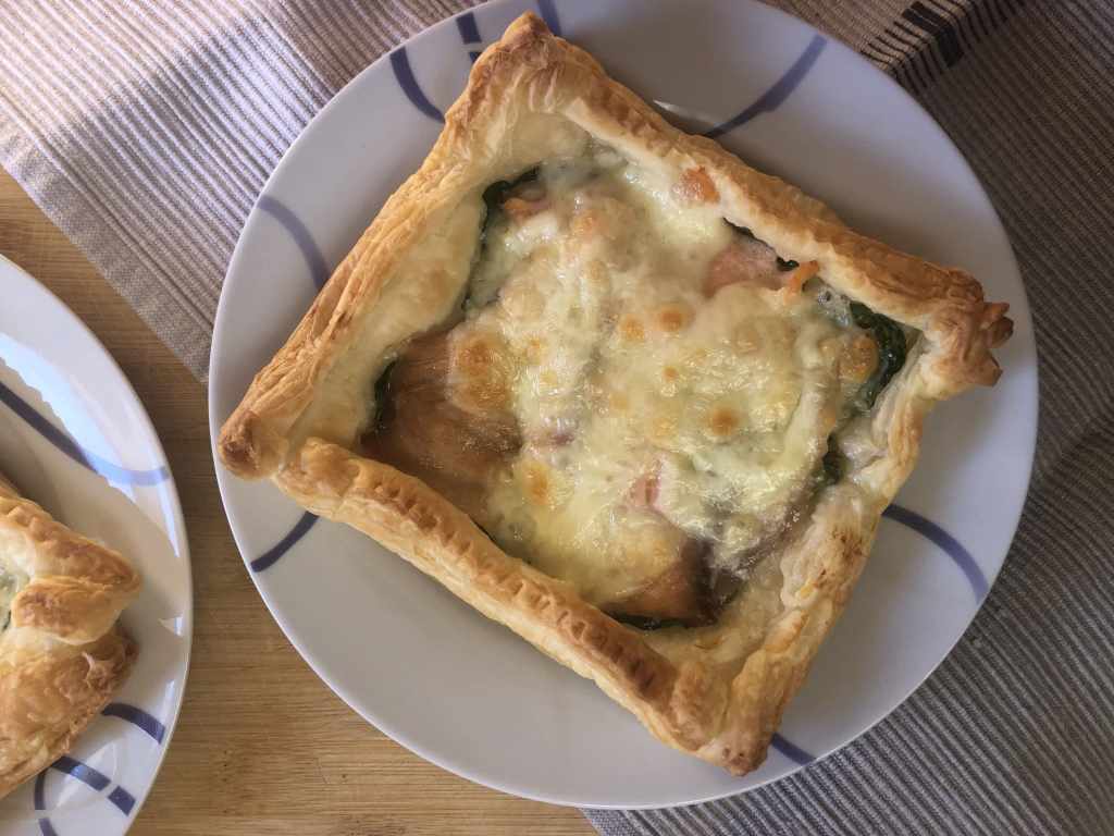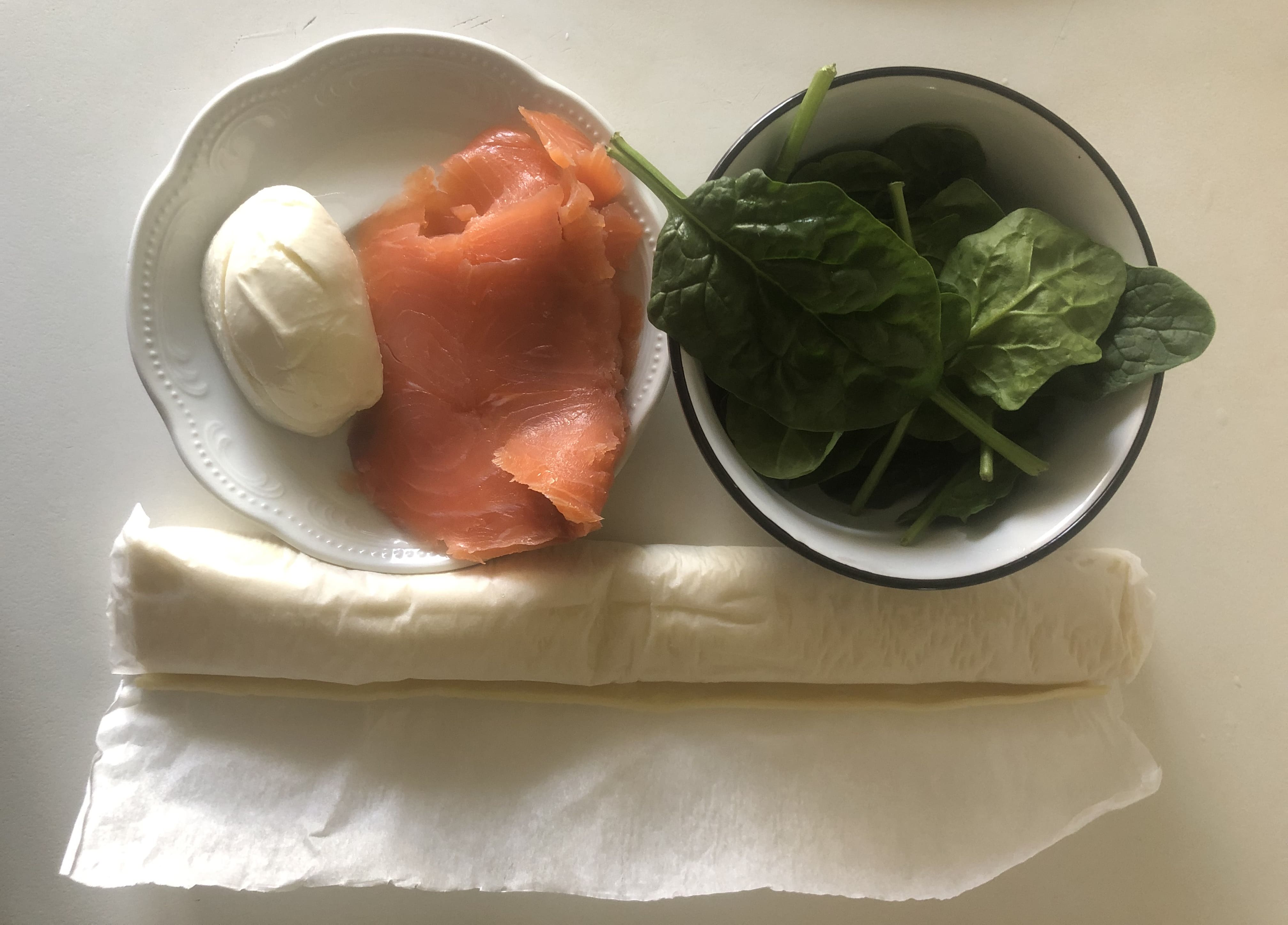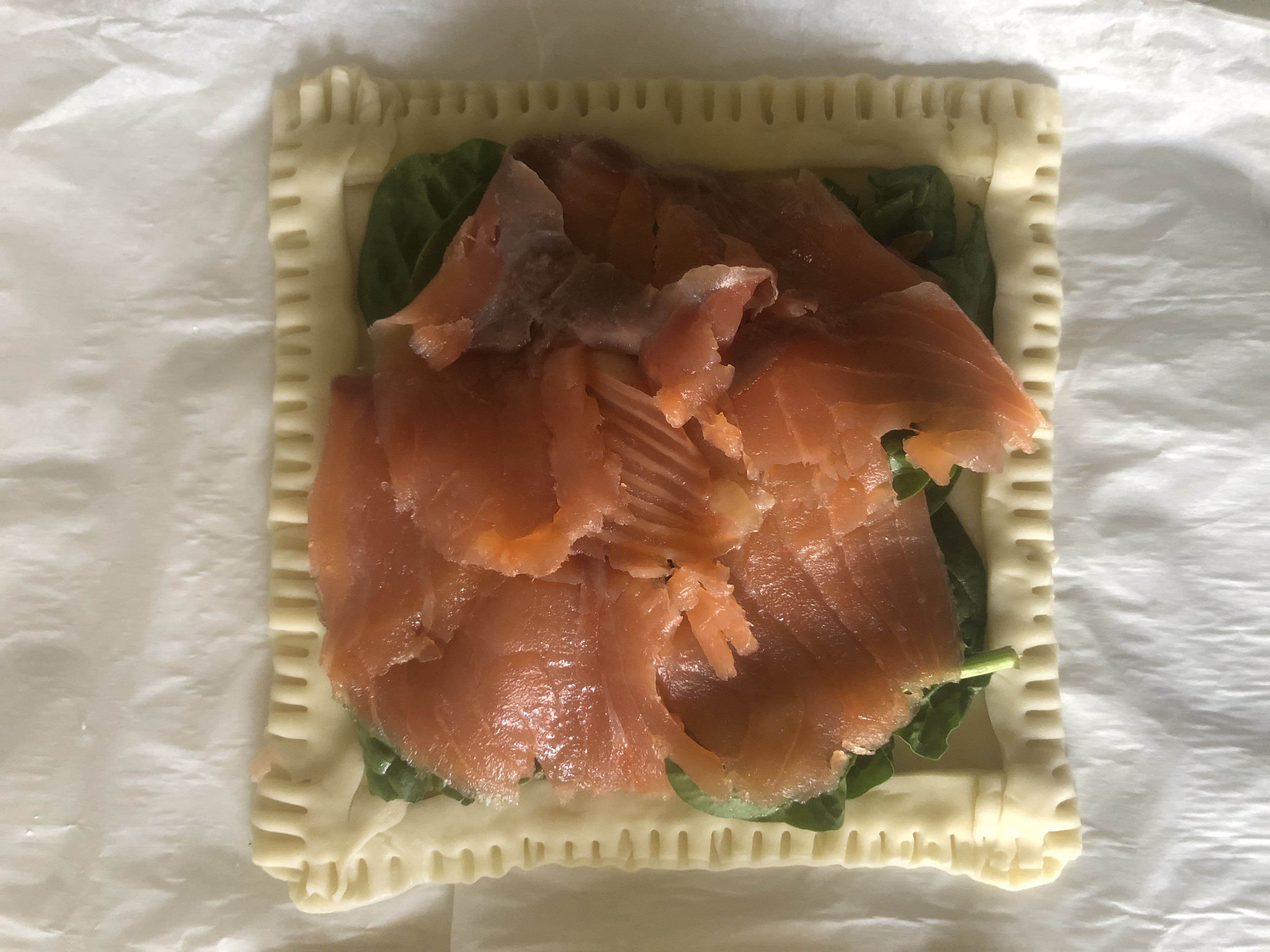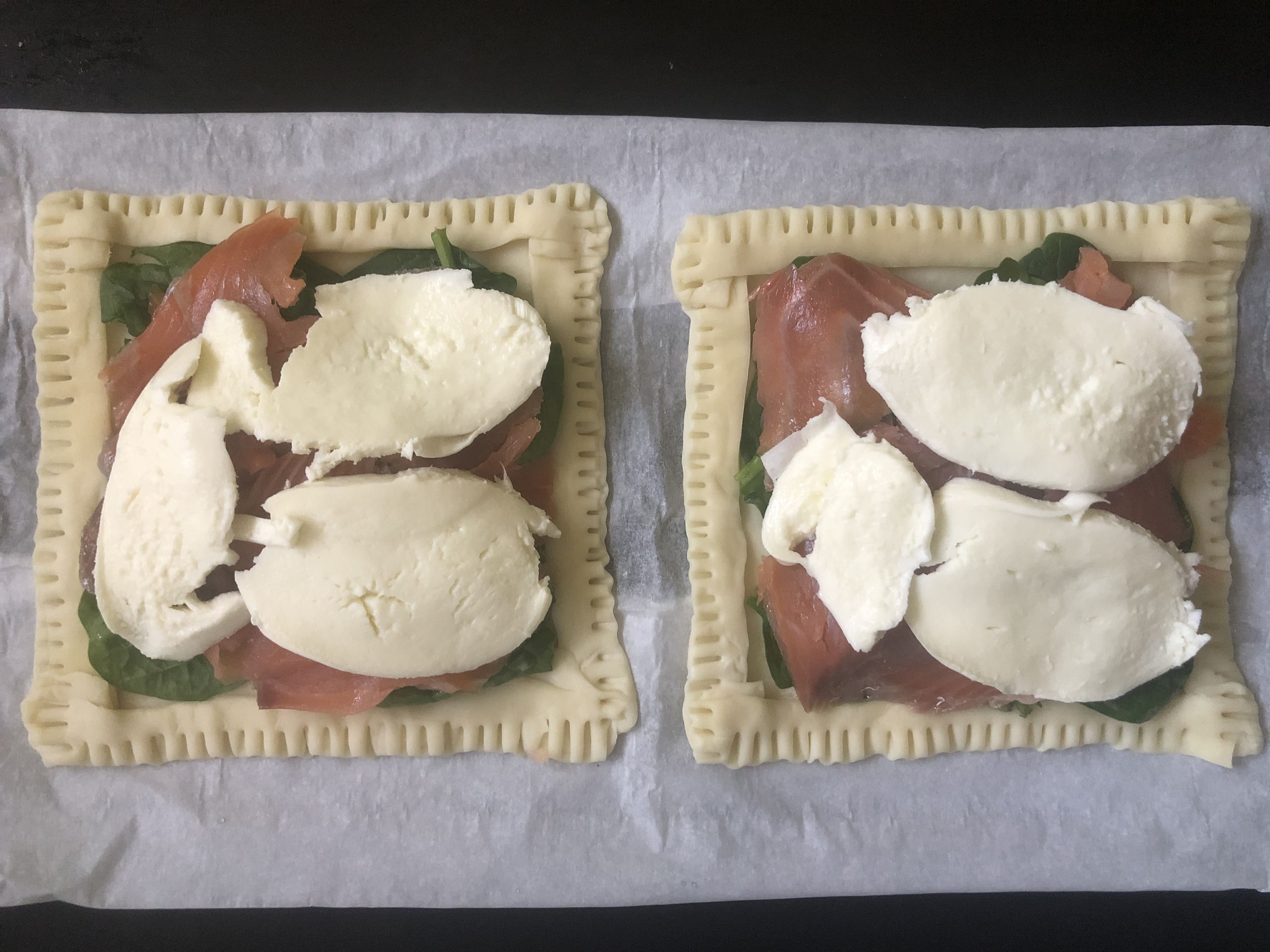 HOJALDRE DE ESPINACAS, SALMÓN Y MOZZARELLA