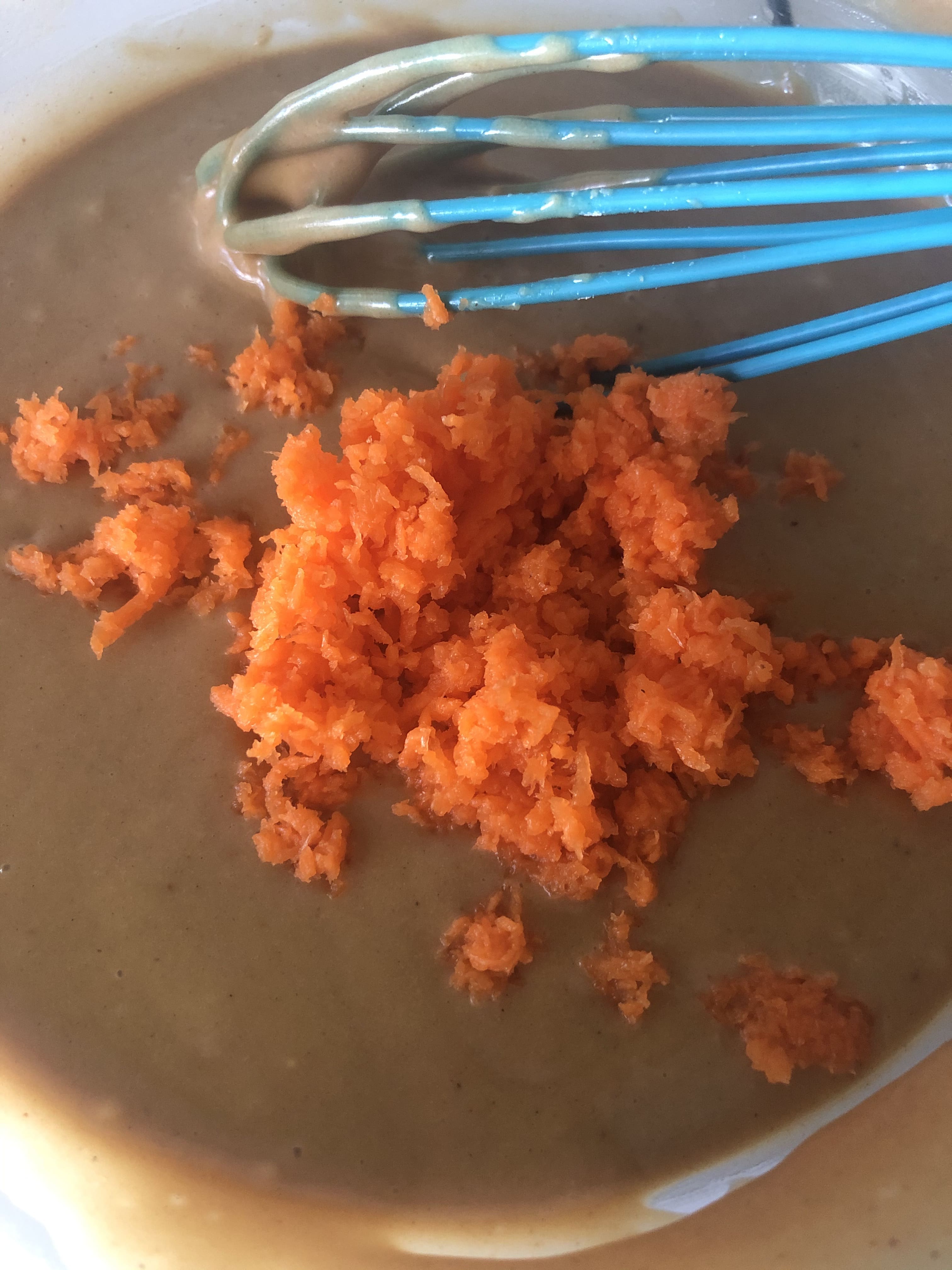 Puedes utilizar puré de zanahoria en lugar de rallarla, pero si la rallas pesará menos y tendrás una masa más ligera y esponjosa.