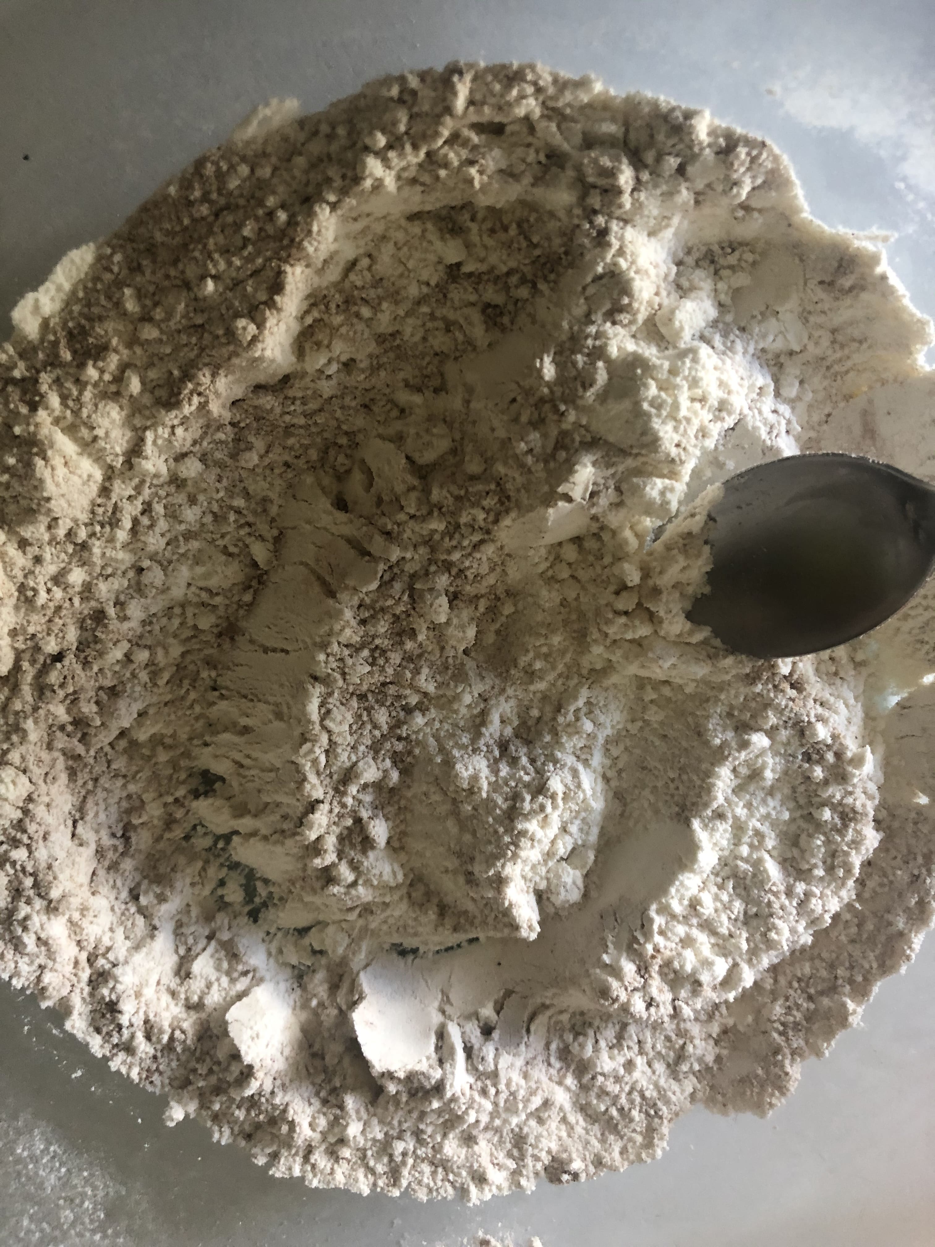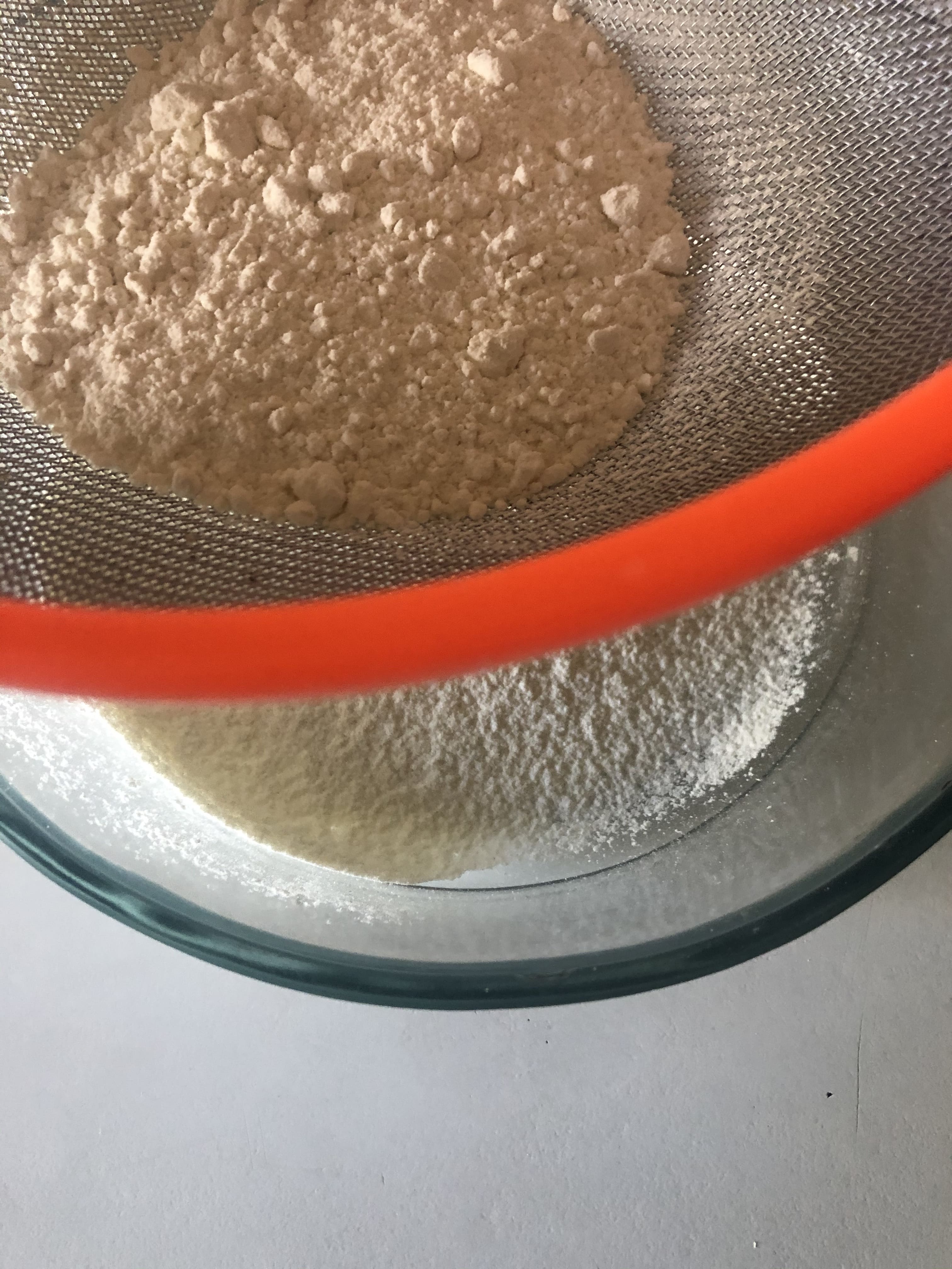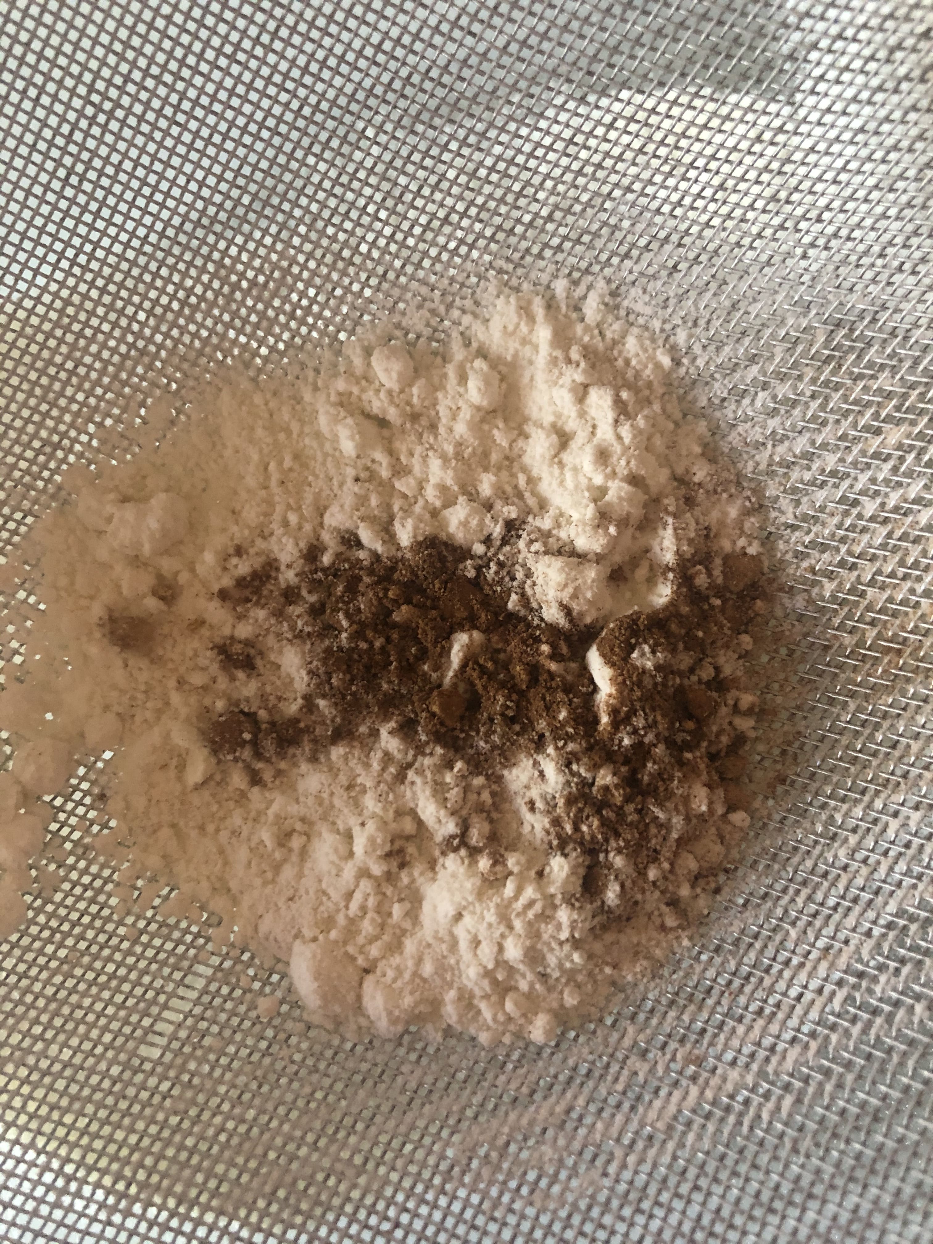 Tamiza la harina, los polvos de hornear y las especias y mezcla bien.