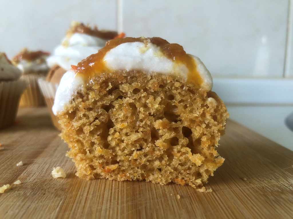 Hoy os traigo una versión de carrot cake en formato magdalena y completamente vegano. Tiene un bizcocho muy jugoso, que no húmedo, y la «nata» está hecha con leche de coco (aunque esta receta la publicaré más adelante mejorada). Os dejo un adelanto de esta delicia que, sí o sí, tenéis que probar.
