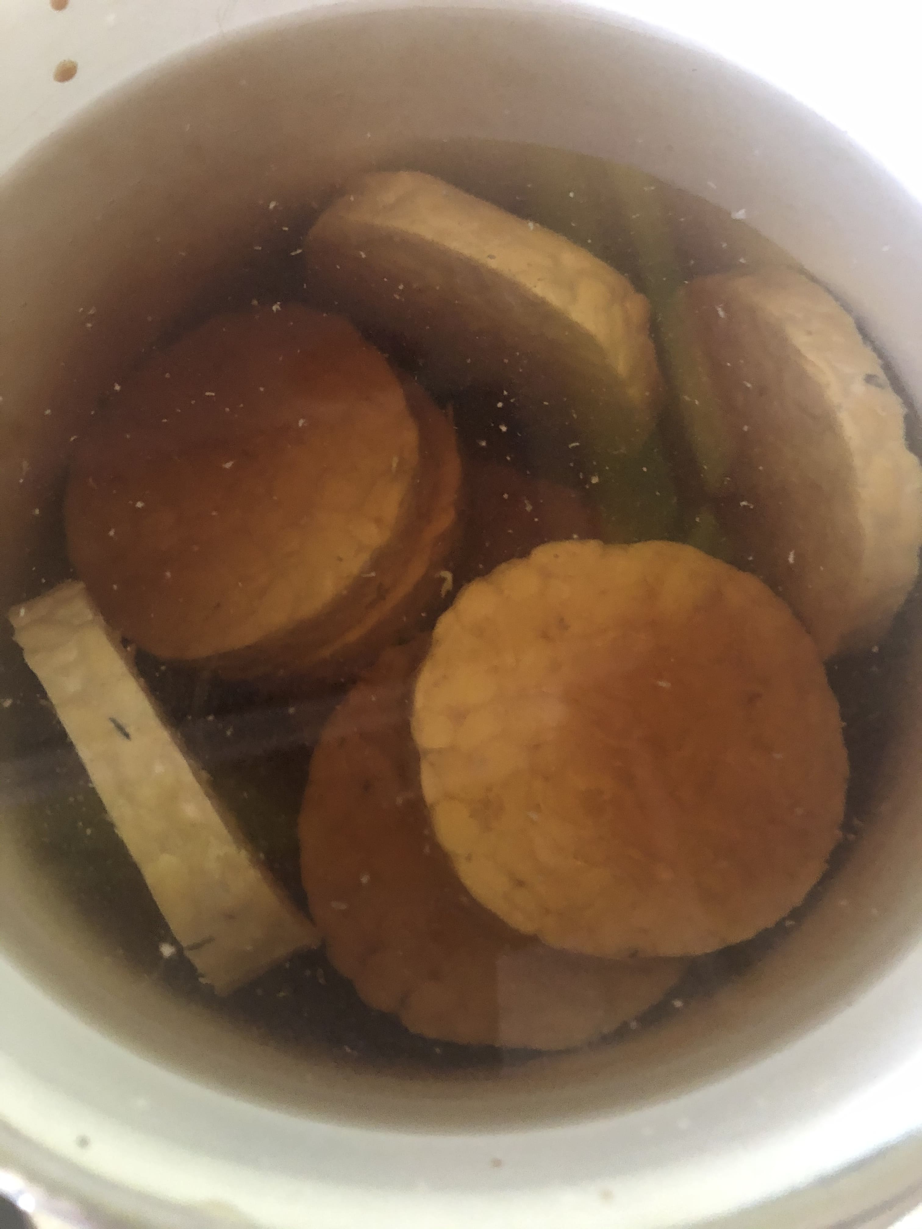 Corta el tempeh en rodajas de 1 cm de grosor. En una cazuela, hierve el tempeh con un chorrito de vinagre de arroz y un chorrito de salsa de soja durante 15 minutos. Deja enfriar y elimina el exceso de agua apretando con las manos.