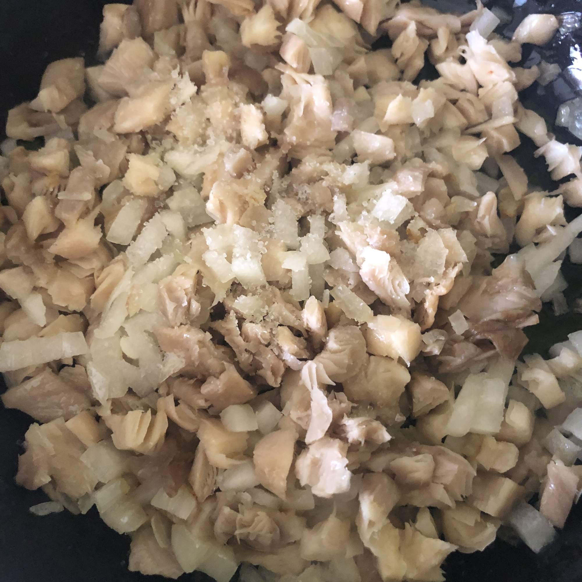 Corta la cebolla y las setas finamente y sofríe a fuego lento con un poco de aceite. Agrega al tempeh, mezcla y deja reposar unos 30 minutos.