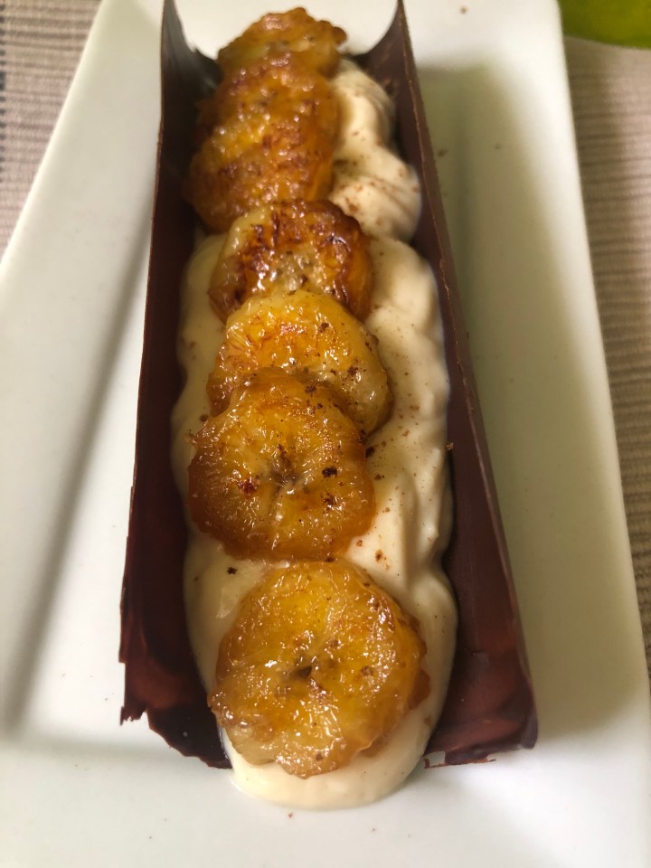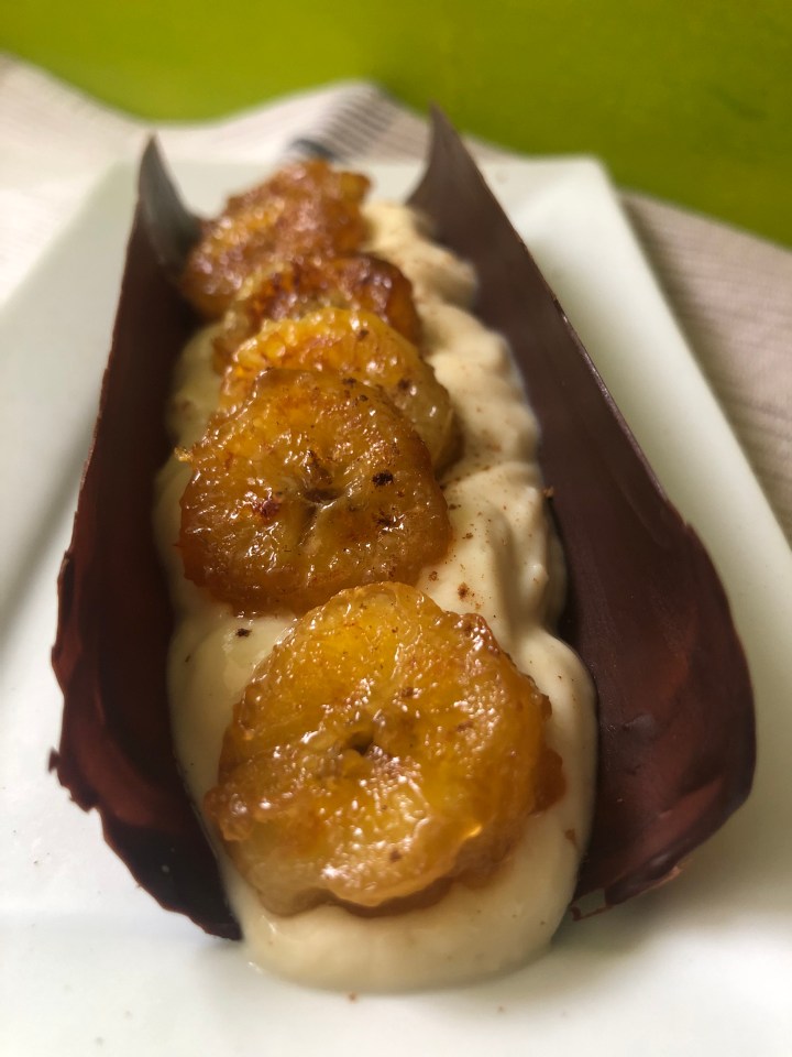 PLÁTANO FLAMBEADO CON CHOCOLATE Y YOGUR