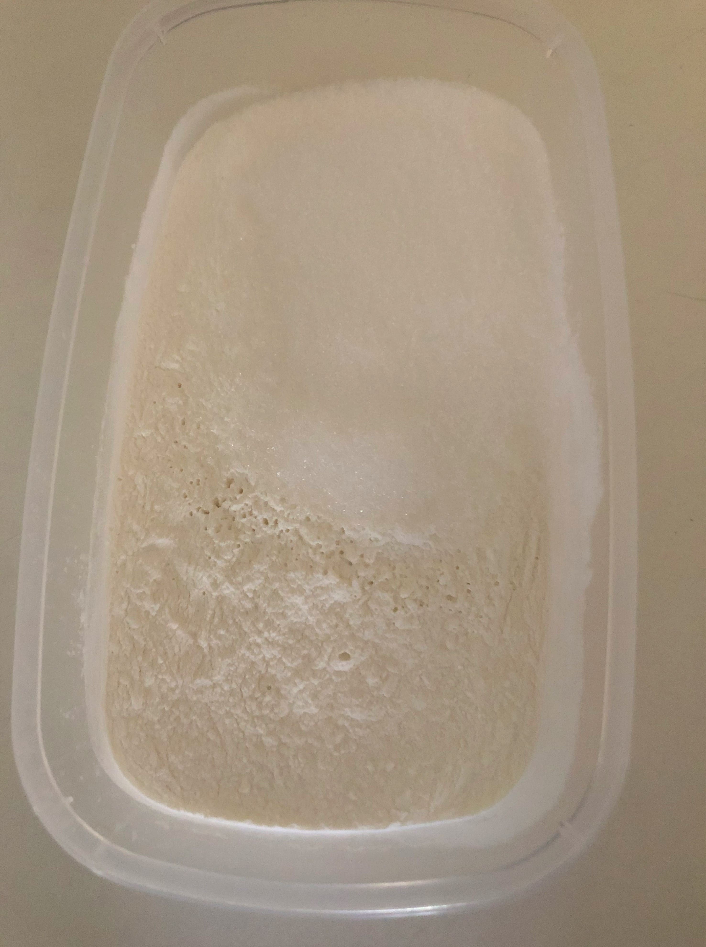 Prepara la masa de mochis. En un recipiente amplio mezcla la harina con el azúcar. Agrega el agua y mezcla todo bien con unas varillas, hasta conseguir una textura sin grumos.