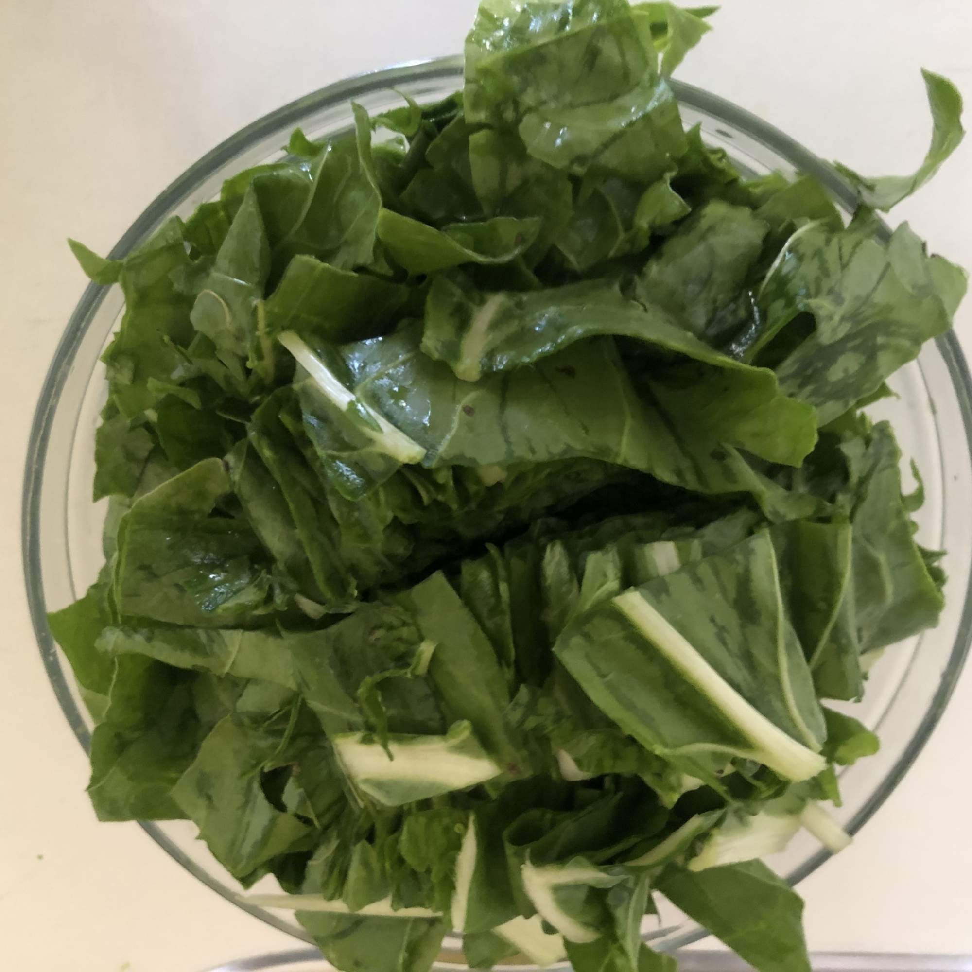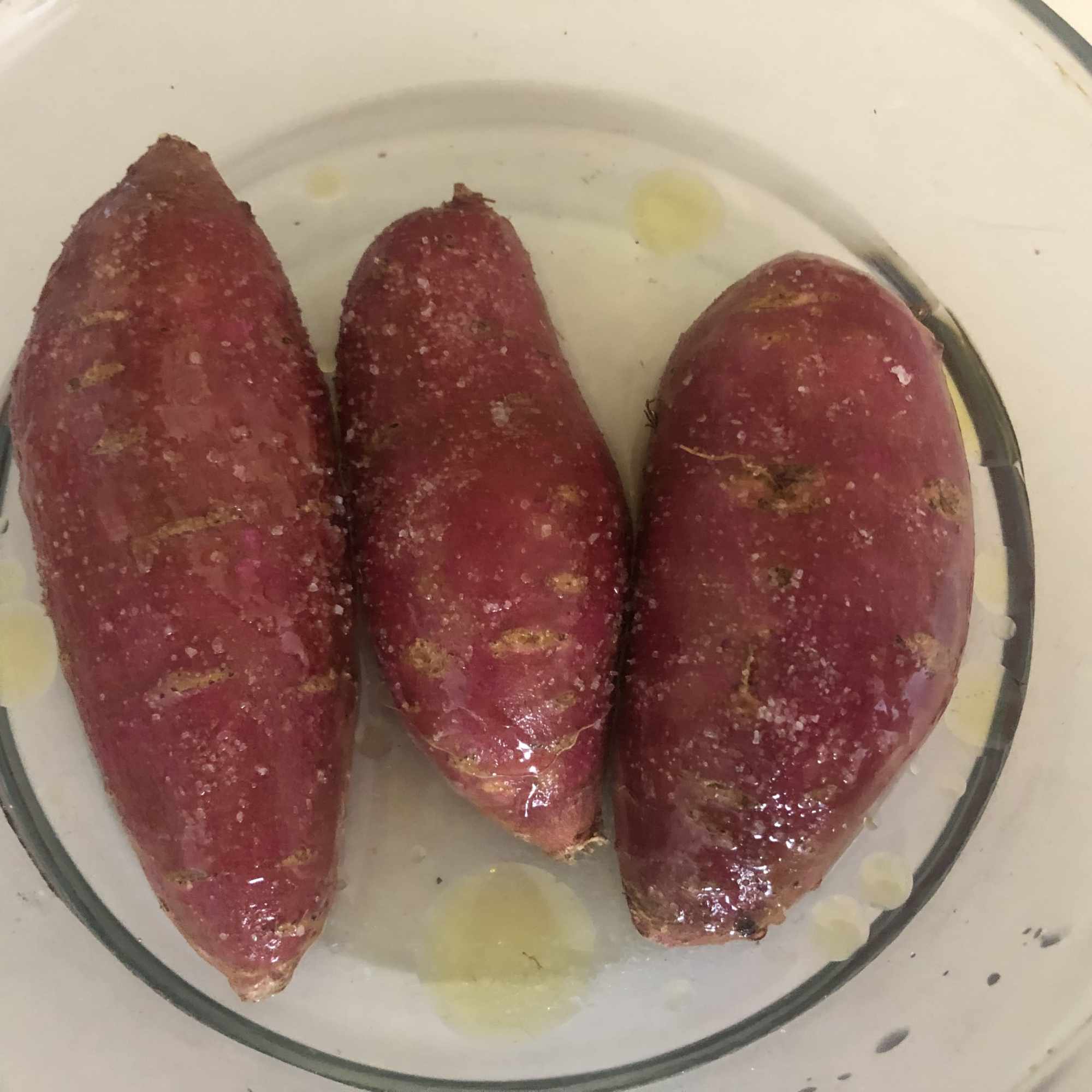 Lava las acelgas y retira las pencas. Pica en trozos medianos y cuece en una olla con abundante agua y sal. Escurre y reserva. Lava las batatas y cocina en microondas. Para ello pínchalas con un cuchillo y colócalas en un recipiente con un poco de agua para que no se sequen. Cocina durante 20 minutos o hasta que estén tiernas (cuando al clavarles un tenedor se salen sin dificultad).