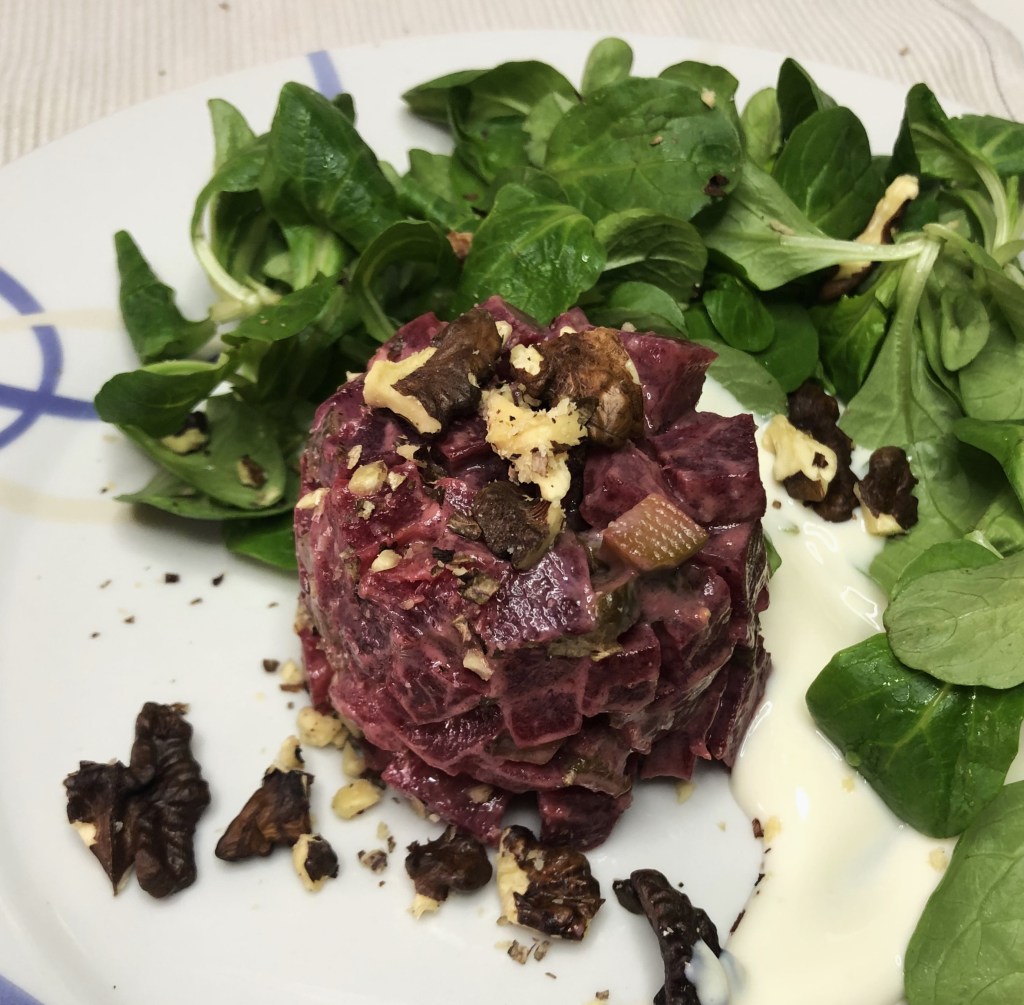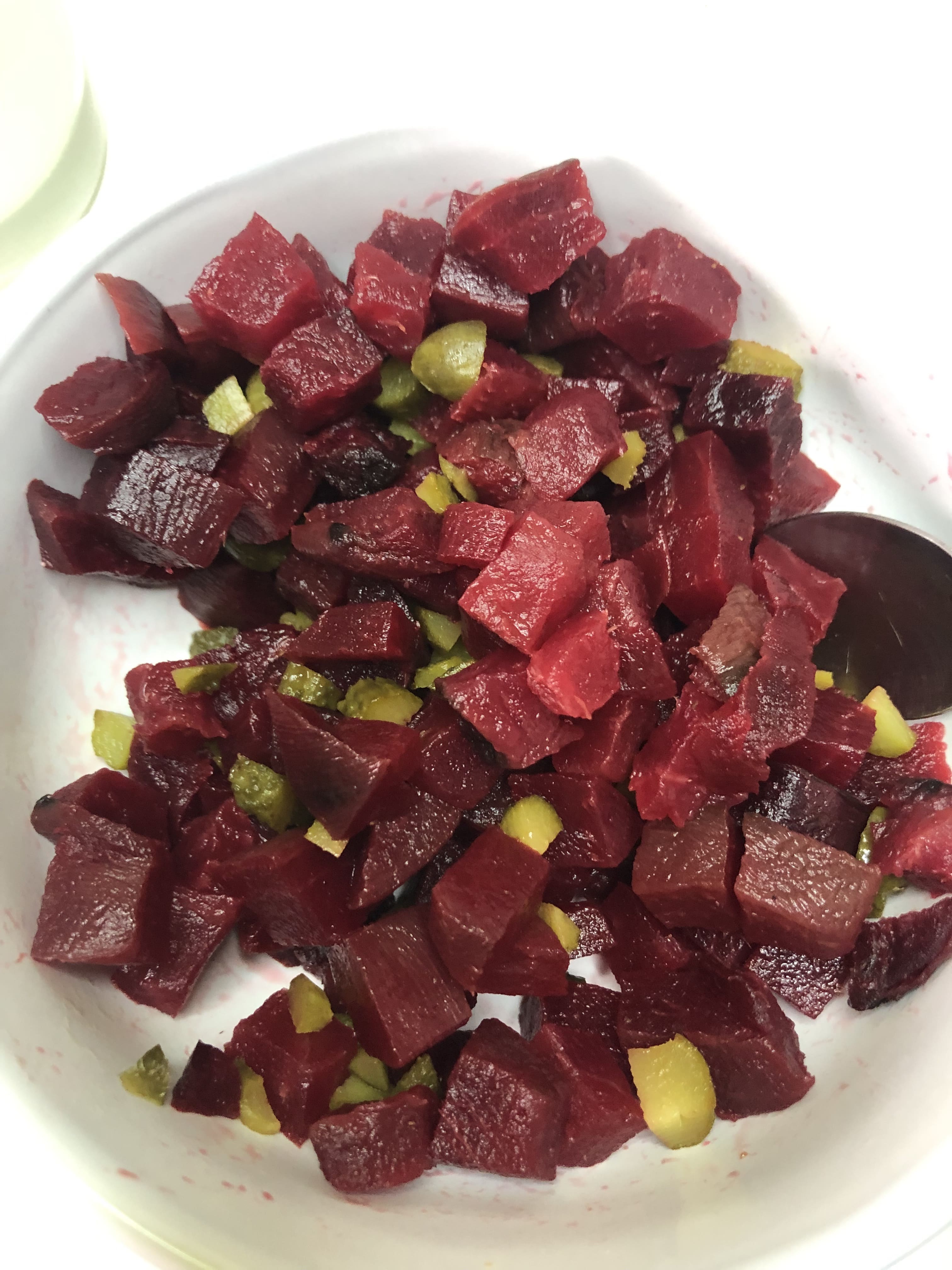 La remolacha combina genial con sabores ácidos y picantes, como los pepinillos en vinagre, el ajo, el limón o la mostaza. También con la manzana, aunque ésta potencia su sabor dulzón y yo prefiero un sabor más fuerte.