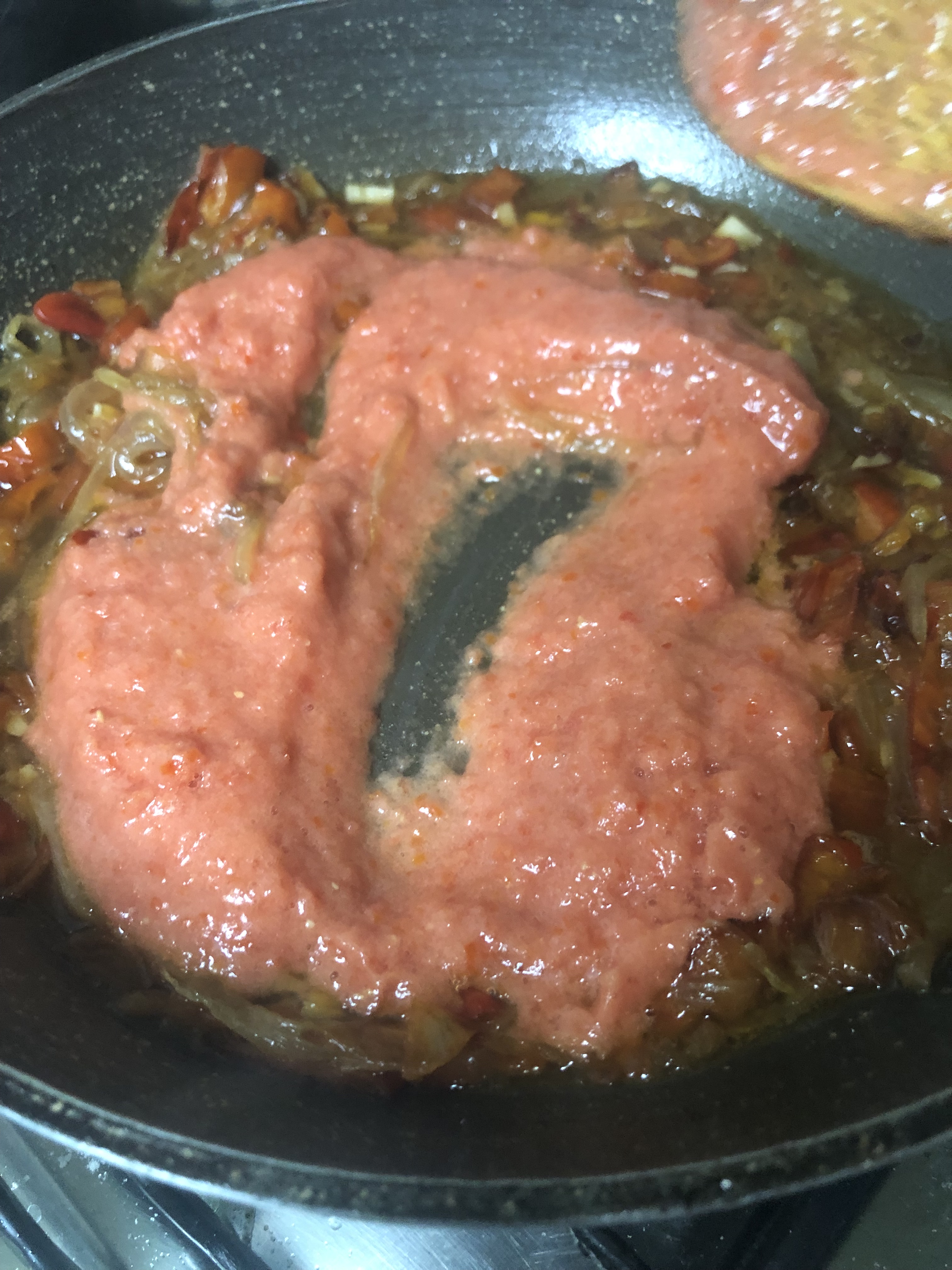 - 2 tomates grande (= 1 vaso de tomate triturado)