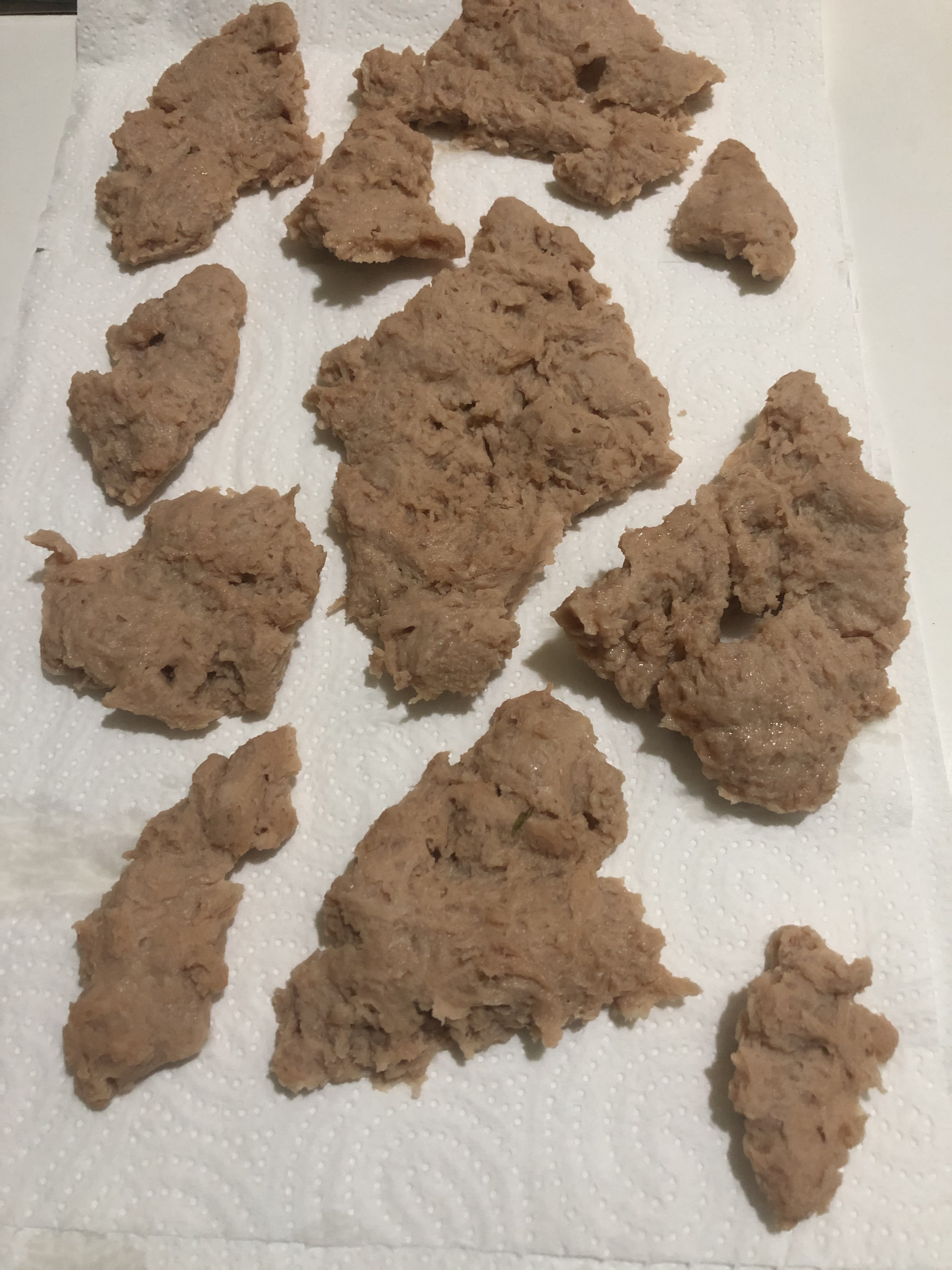 Hierve agua en una cazuela e hidrata la legumbreta (10—15 minutos). Escurre y elimina el exceso de agua con las manos. Coloca entre papel absorbente y presiona un poco con la palma para retirar más la humedad.