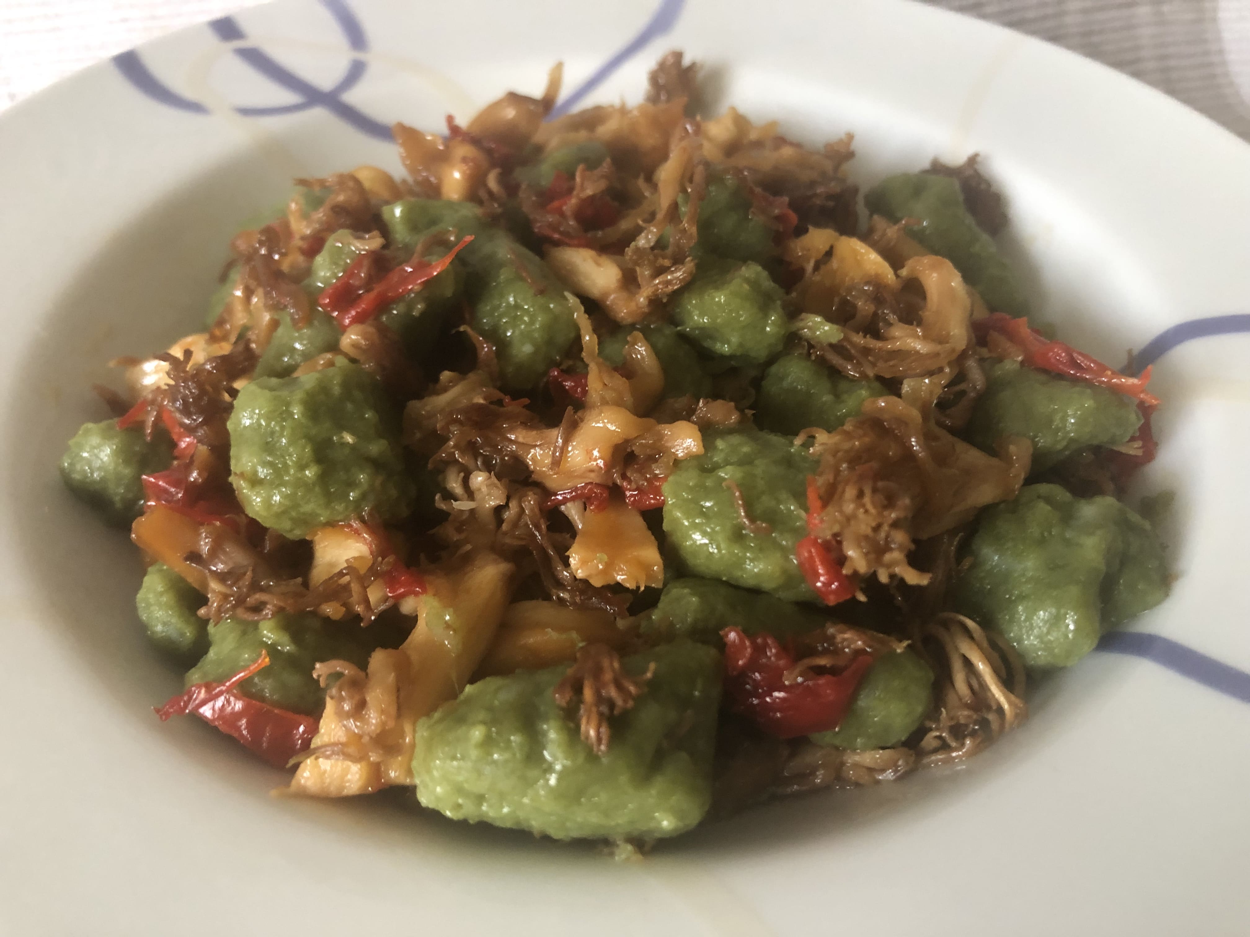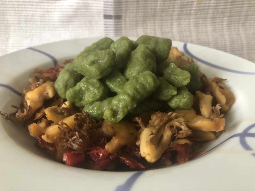 ÑOQUIS DE ESPINACA CON SETAS CORAL