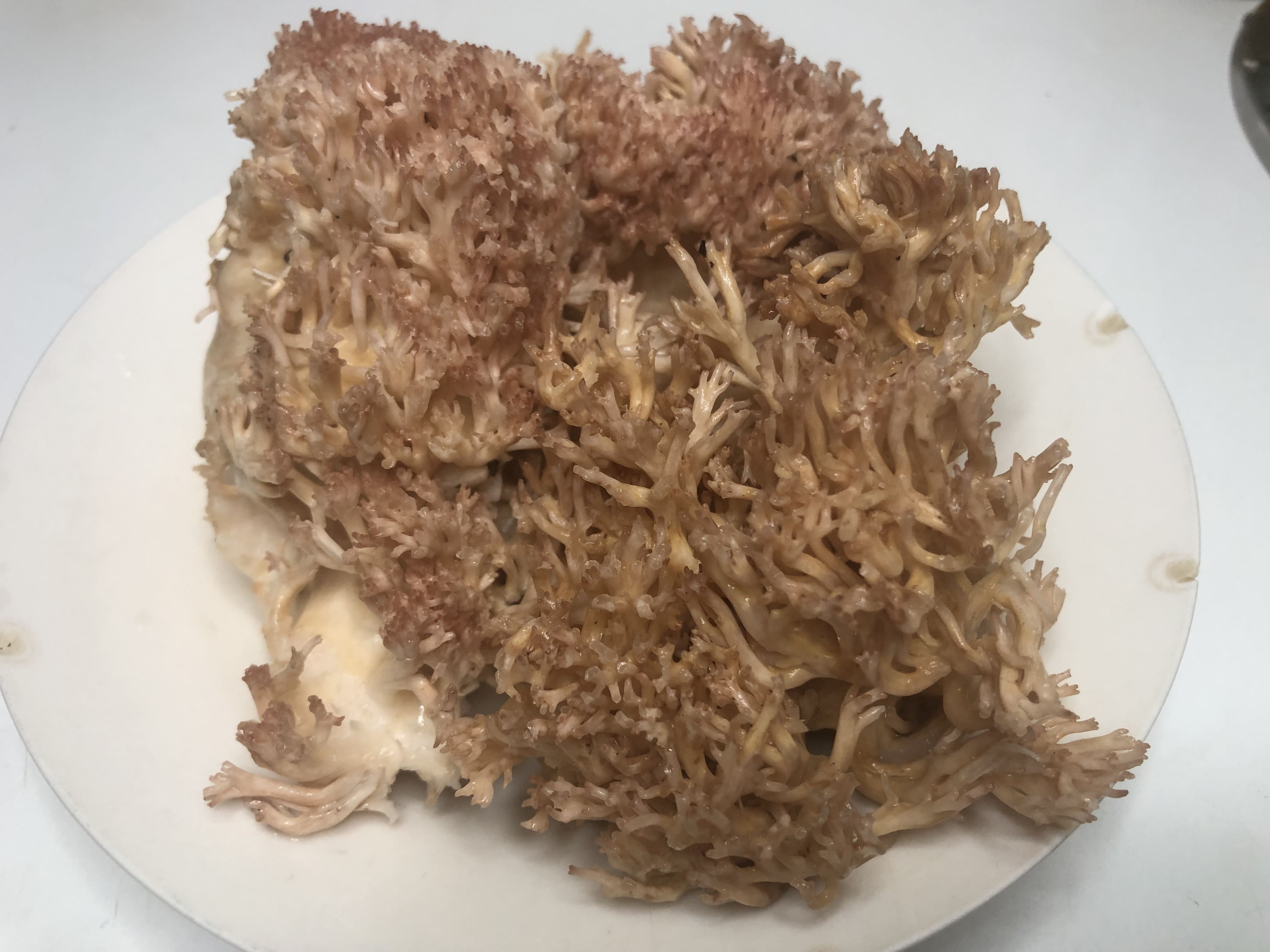 El otro día la «mamma» me trajo unas setas coral que había encontrado en el monte. Hacía muchos años que no las veía por la zona y la verdad es que me daba mucha pena, porque están deliciosas. No sé si las conocéis y si las habéis probado. Son muy llamativas por la forma de coral que tienen y las podéis encontrar también en color amarillo blanquecino y naranja. Tiene un pie muy carnoso, que contrasta con la textura rizada de la parte superior. Me encantan.