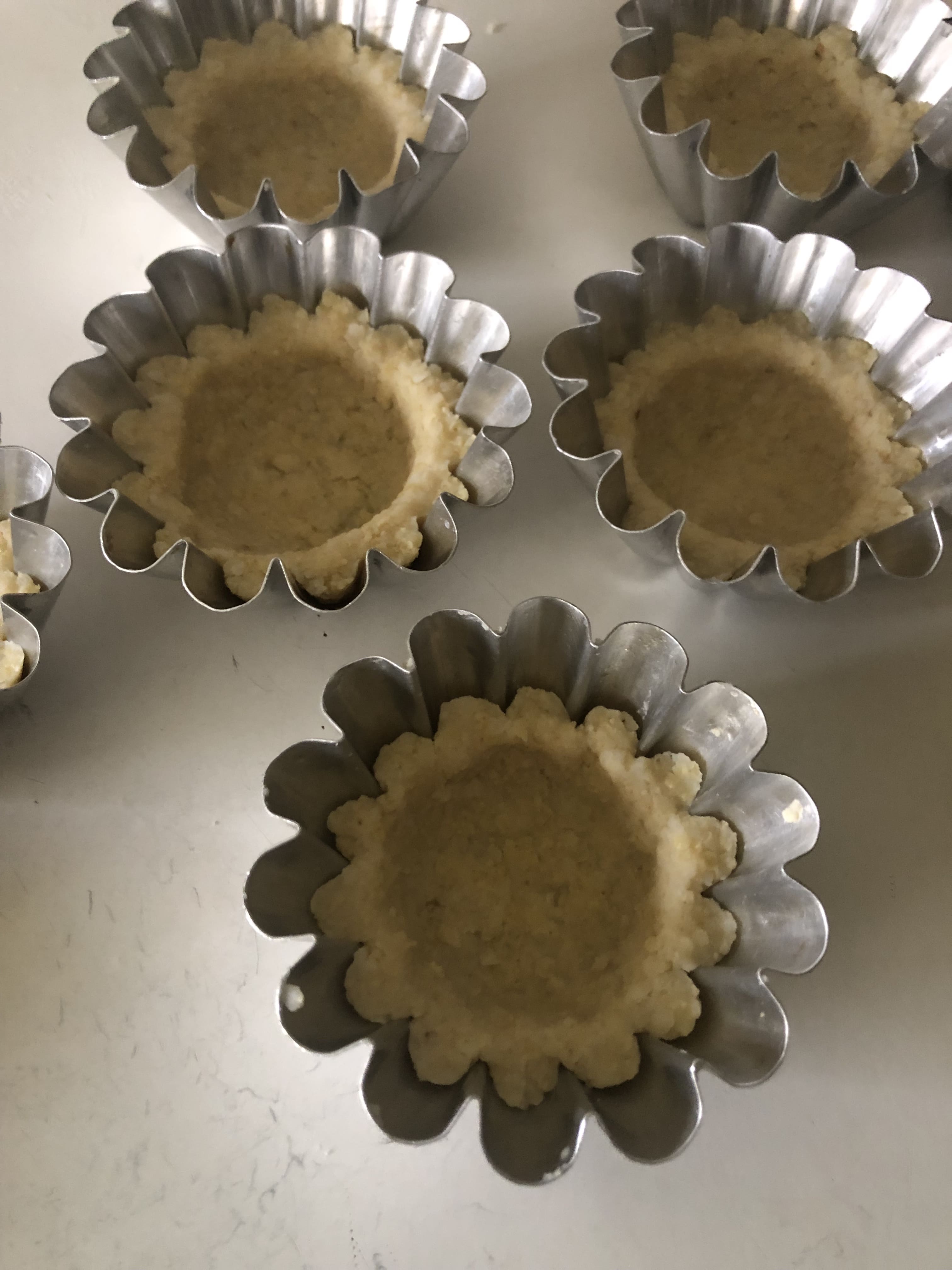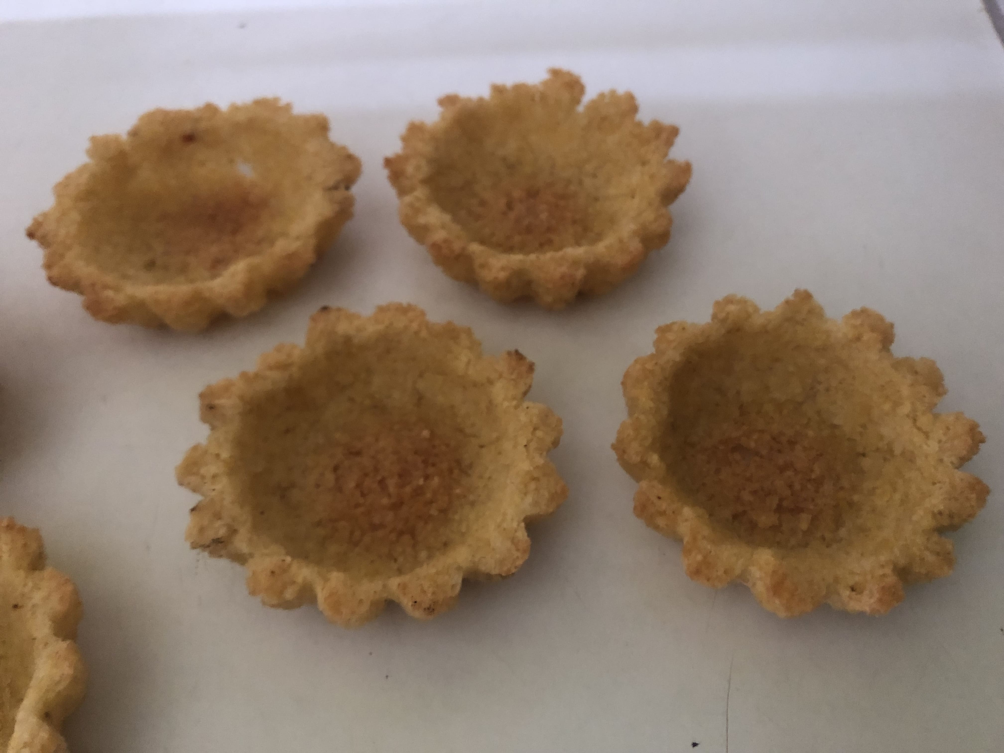 Hornea las cestitas a 180ºC durante unos 30 minutos (o hasta que notes que la masa está seca y un poco dorada). Retira el molde y vuelve a hornear unos 5-10 minutos. Deja enfriar.