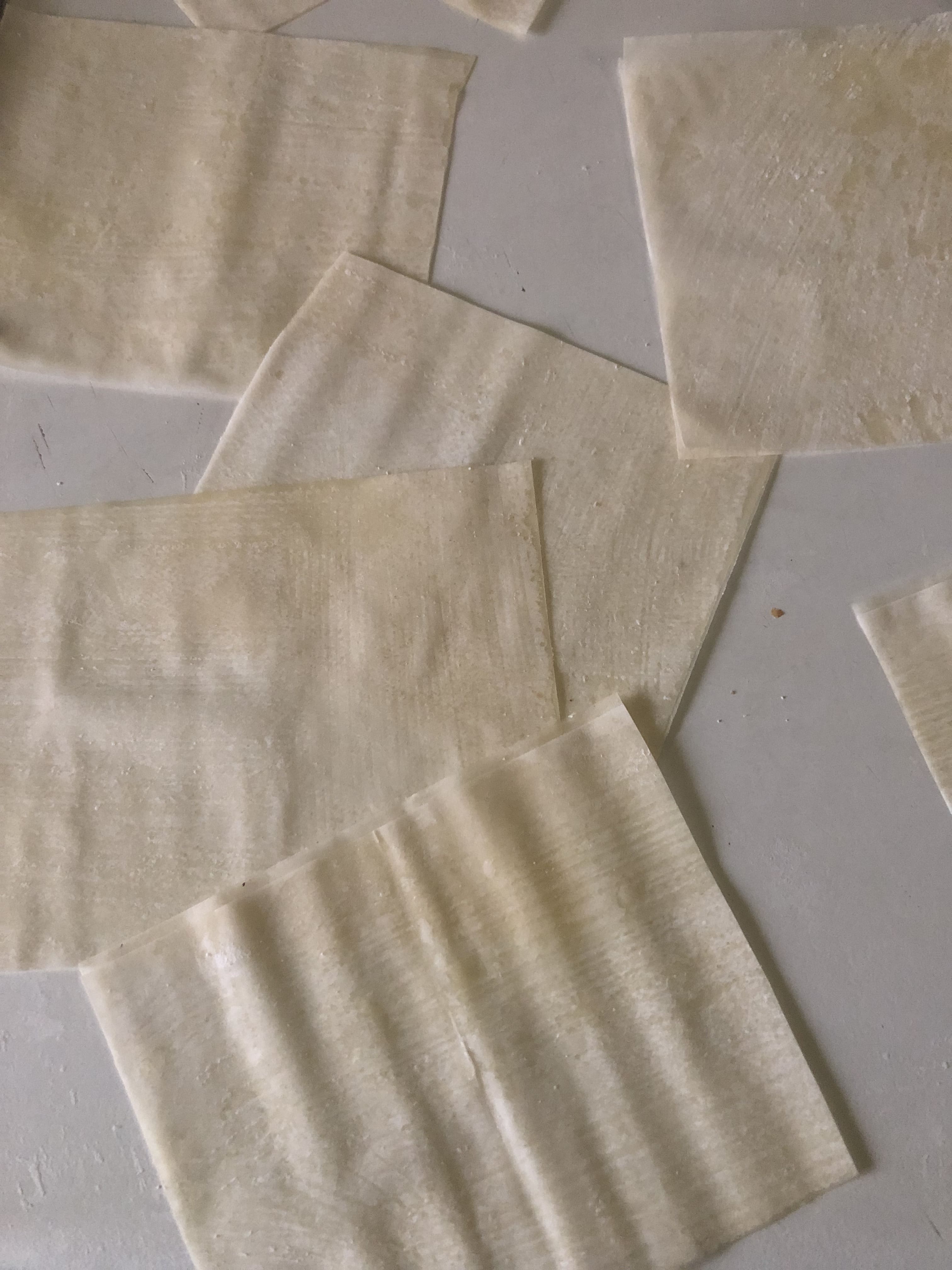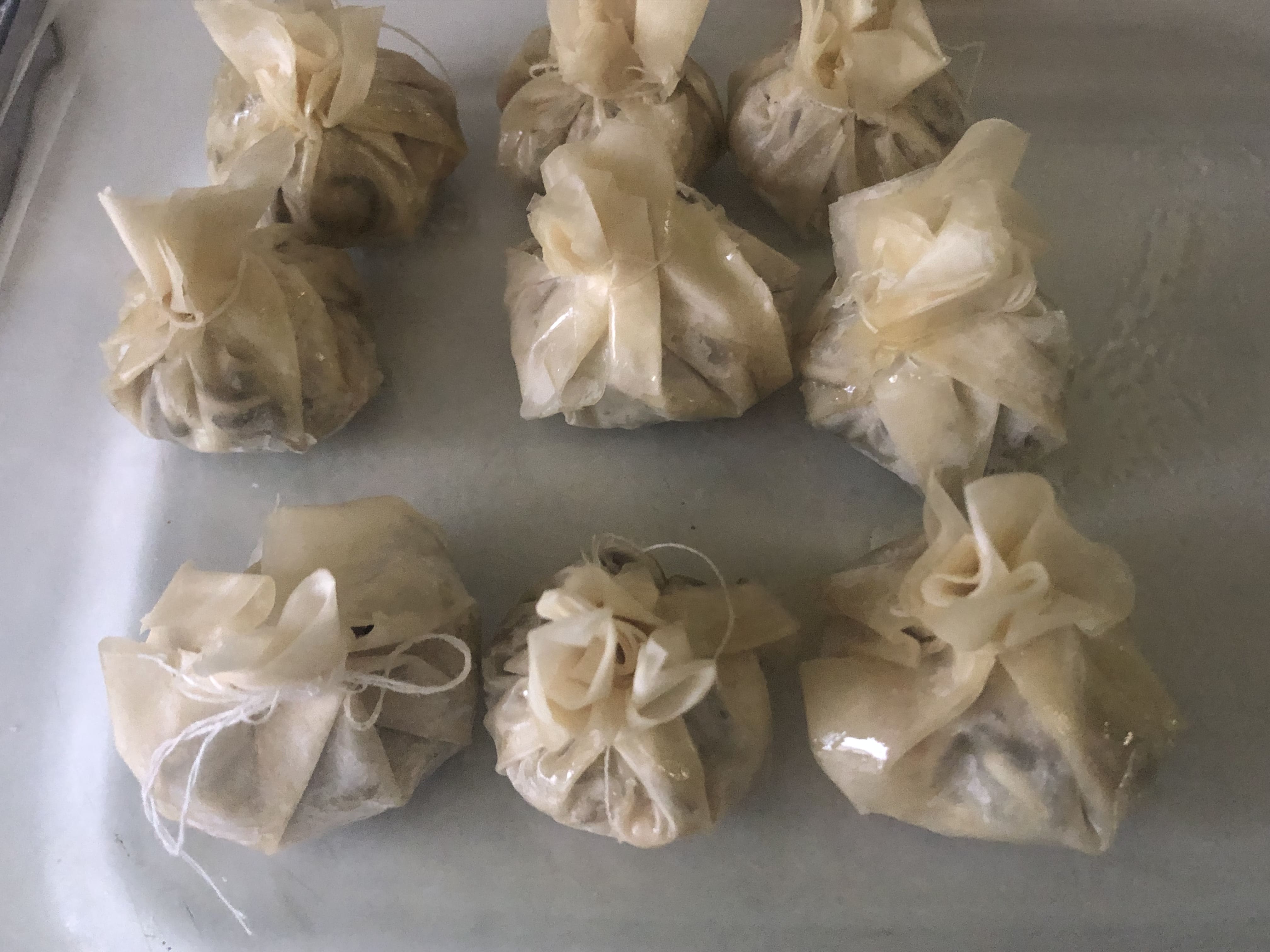 Otro detalle: la elaboración de los saquitos es un poco costosa, ya que tenéis que tener cuidado al manipular la masa para que no se rompa. Una alternativa muy buena es hacer rollitos (como los rollitos de primavera). Es más rápido y os dará menos dolores de cabeza.