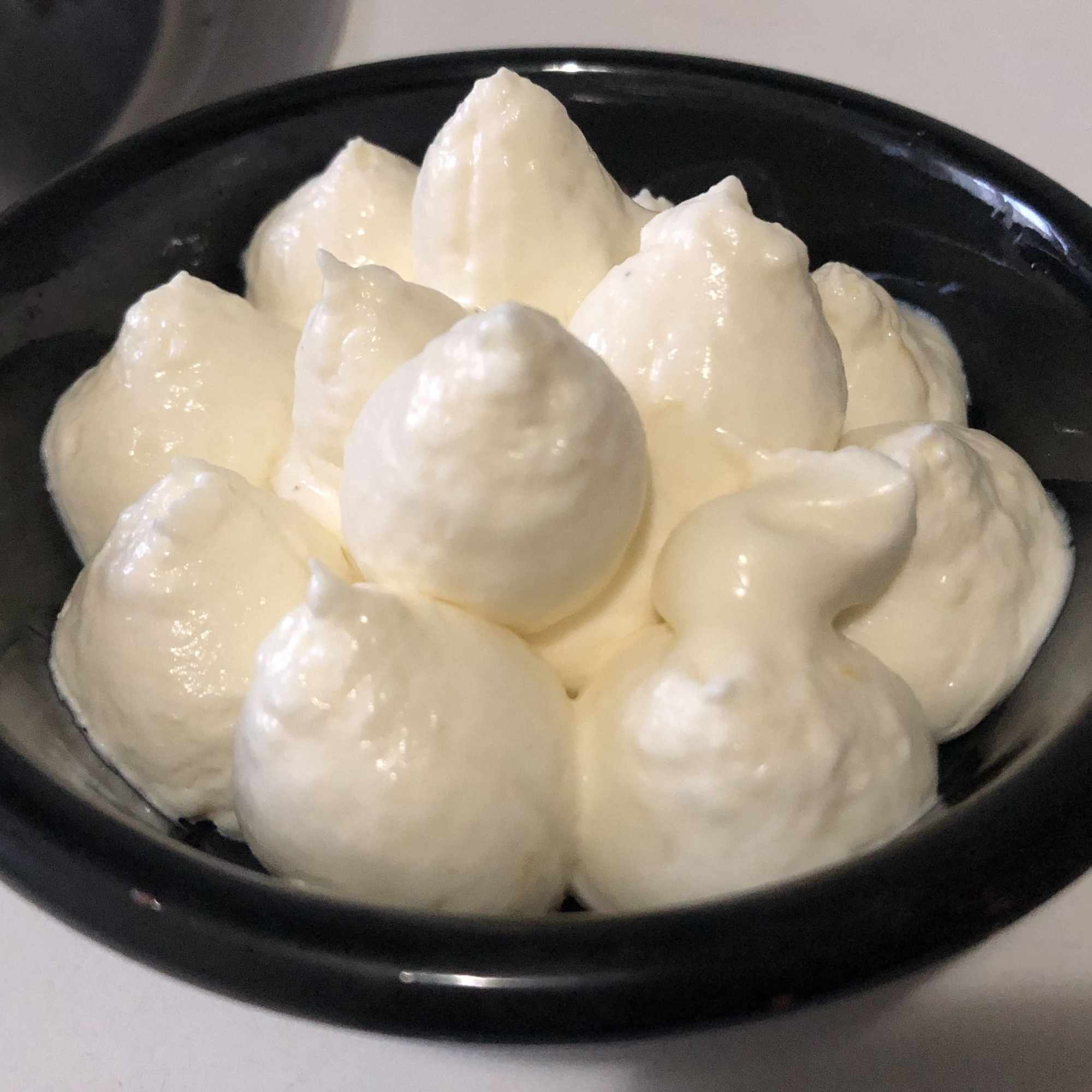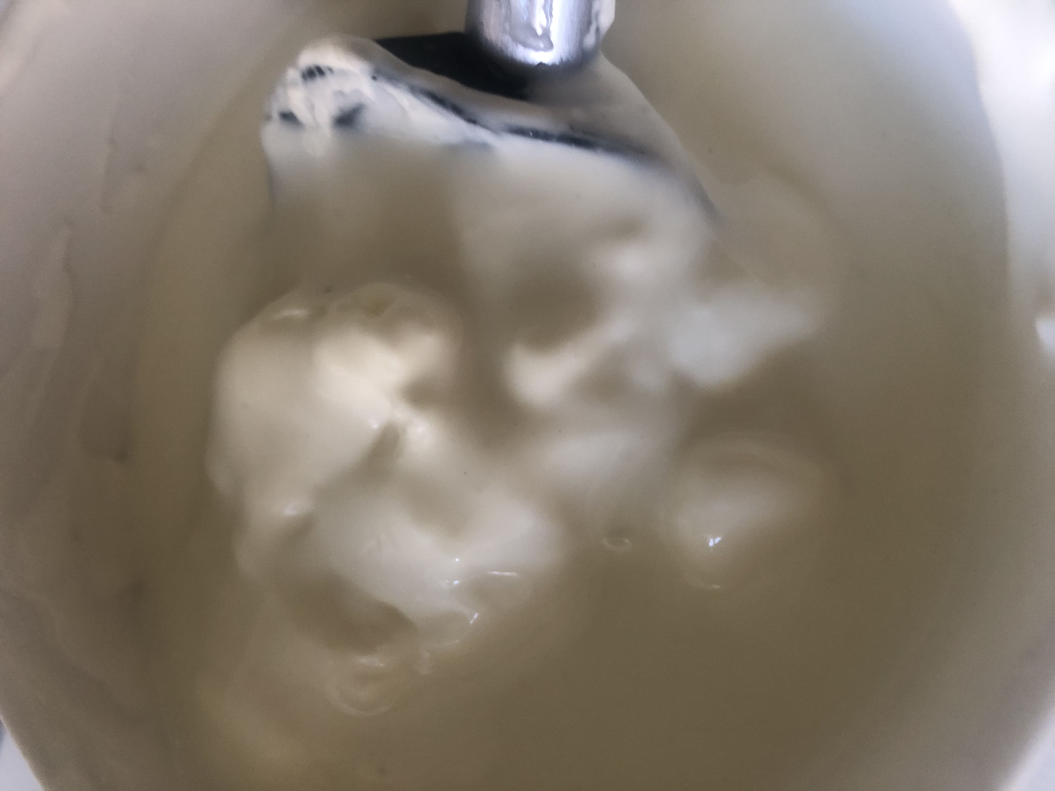 Bate la nata con unas varillas hasta que esté cremosa y añade el azúcar glass. Continúa batiendo hasta que adquiera consistencia (cuando se formen picos y no se caiga al dar la vuelta al vaso). Reserva en la nevera.