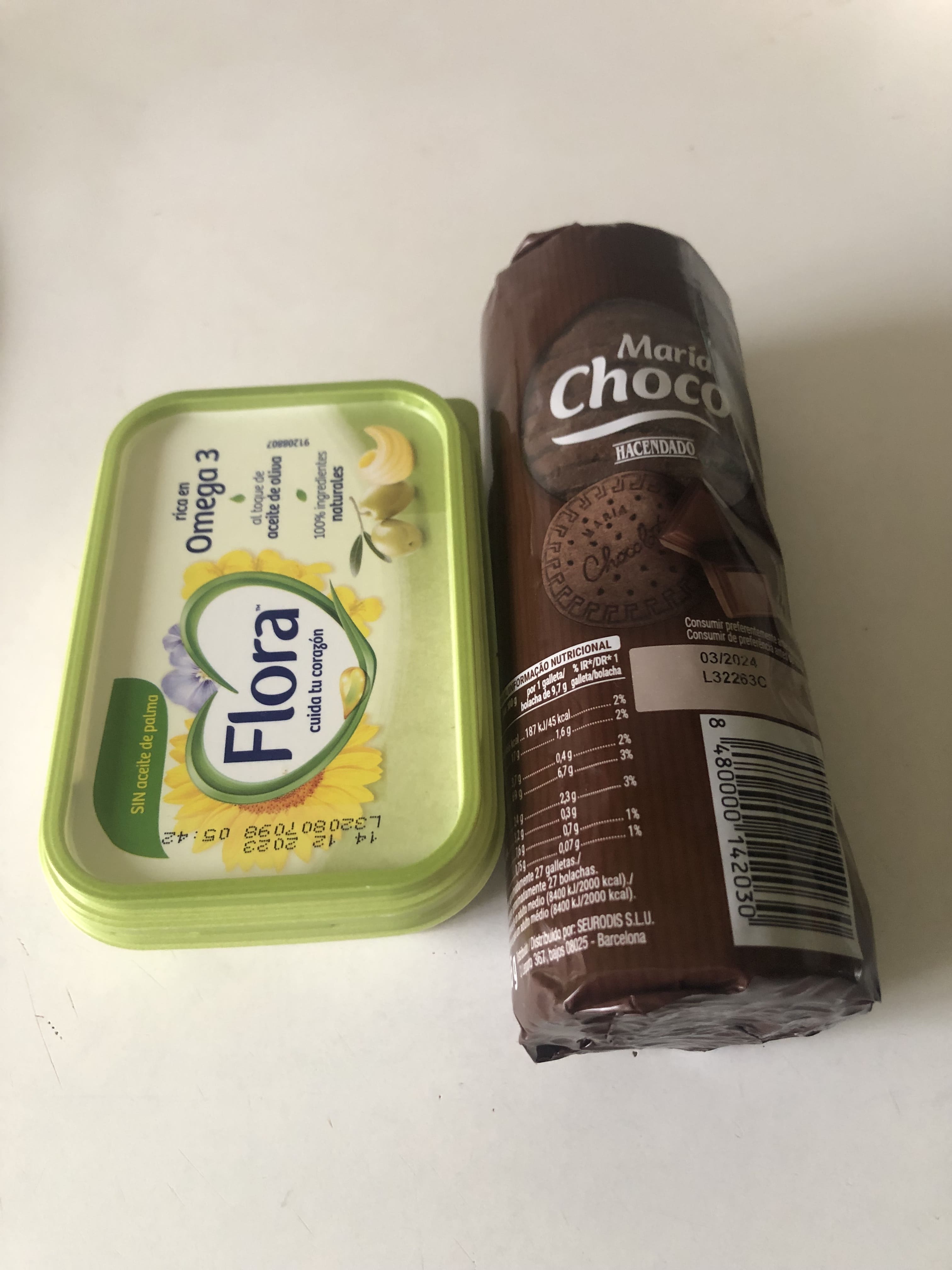 Tritura las galletas hasta hacerlas polvo. Funde la margarina y mezcla con la galleta. Prepara la base, presionando con las manos para que quede compacta.