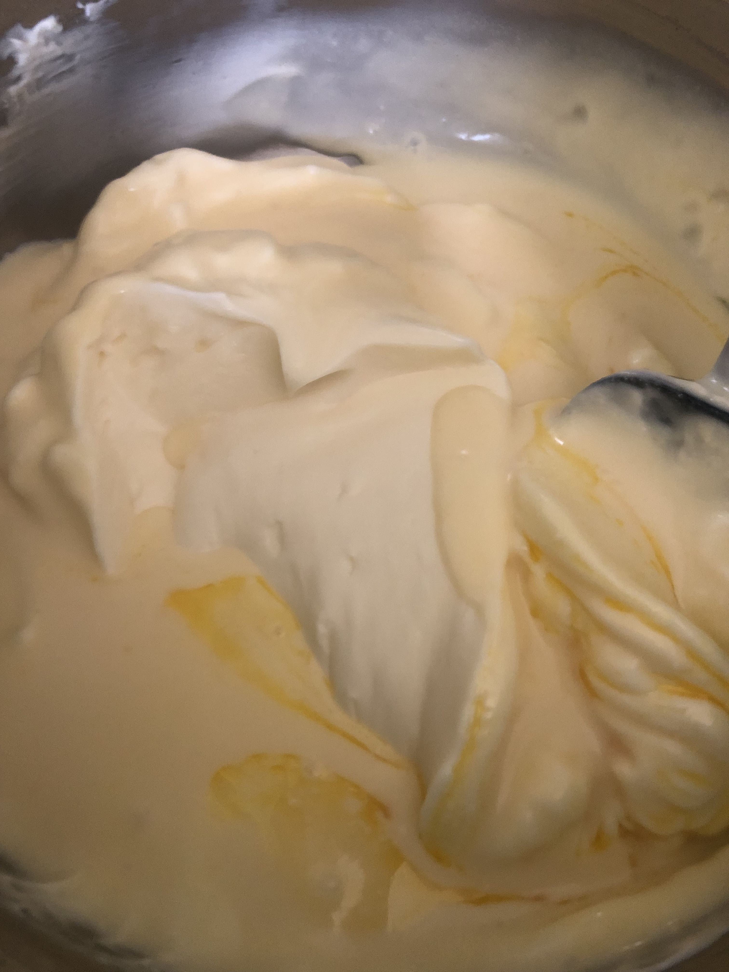 Incorpora la nata poco a poco, la esencia de naranja, y mezcla con movimientos envolventes. Vierte sobre la base de chocolate y deja enfriar 1 hora en el frigo.